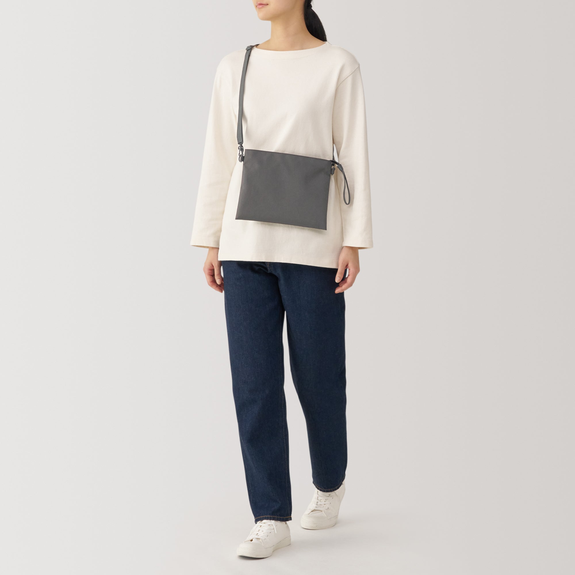 A compact. shoulder-slung pouch for your everyday carry items. The removable shoulder strap allows you also to use it as a clutch pouch. It has a water-repellent coating and is great for short outings.