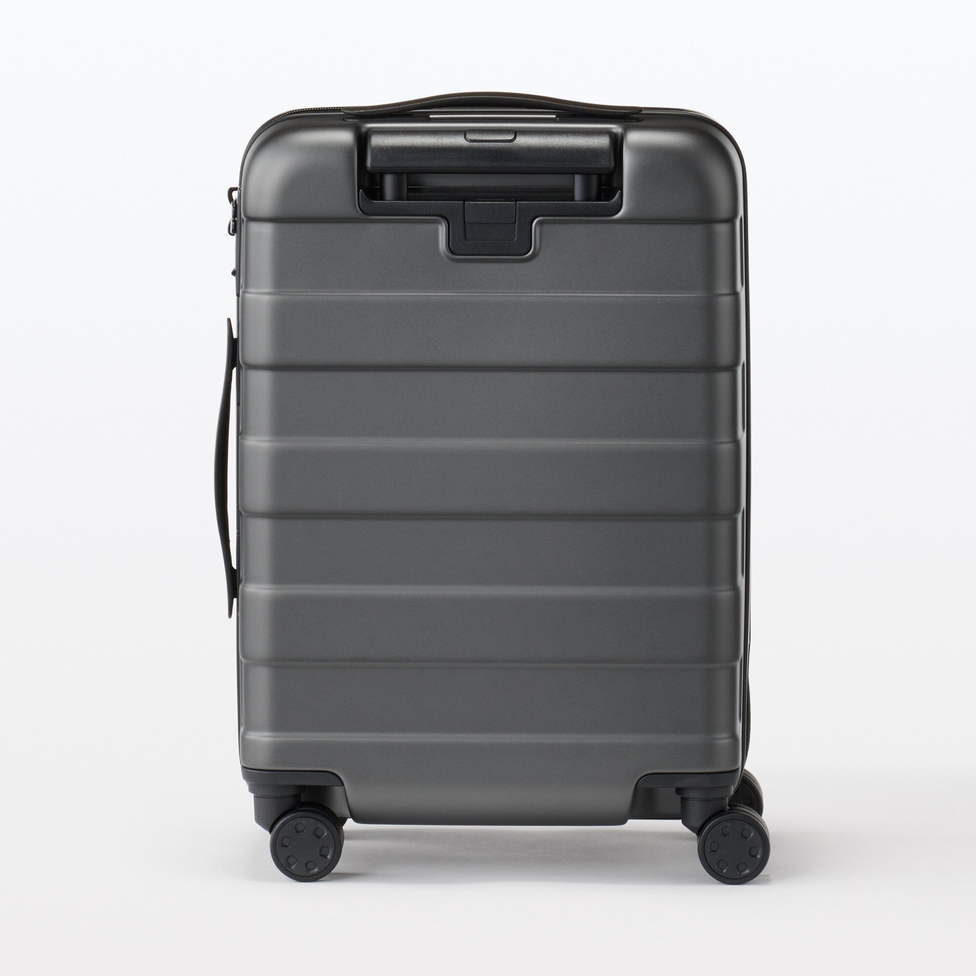 Featuring a wheel stopper button on the back that locks two of the wheels in place. preventing the luggage from rolling away on inclines or transit. The wheels swivel 360° so you can effortlessly switch from pushing or pulling this suitcase without any hassle. It adopts a twin-wheel caster which runs quietly and smoothly.