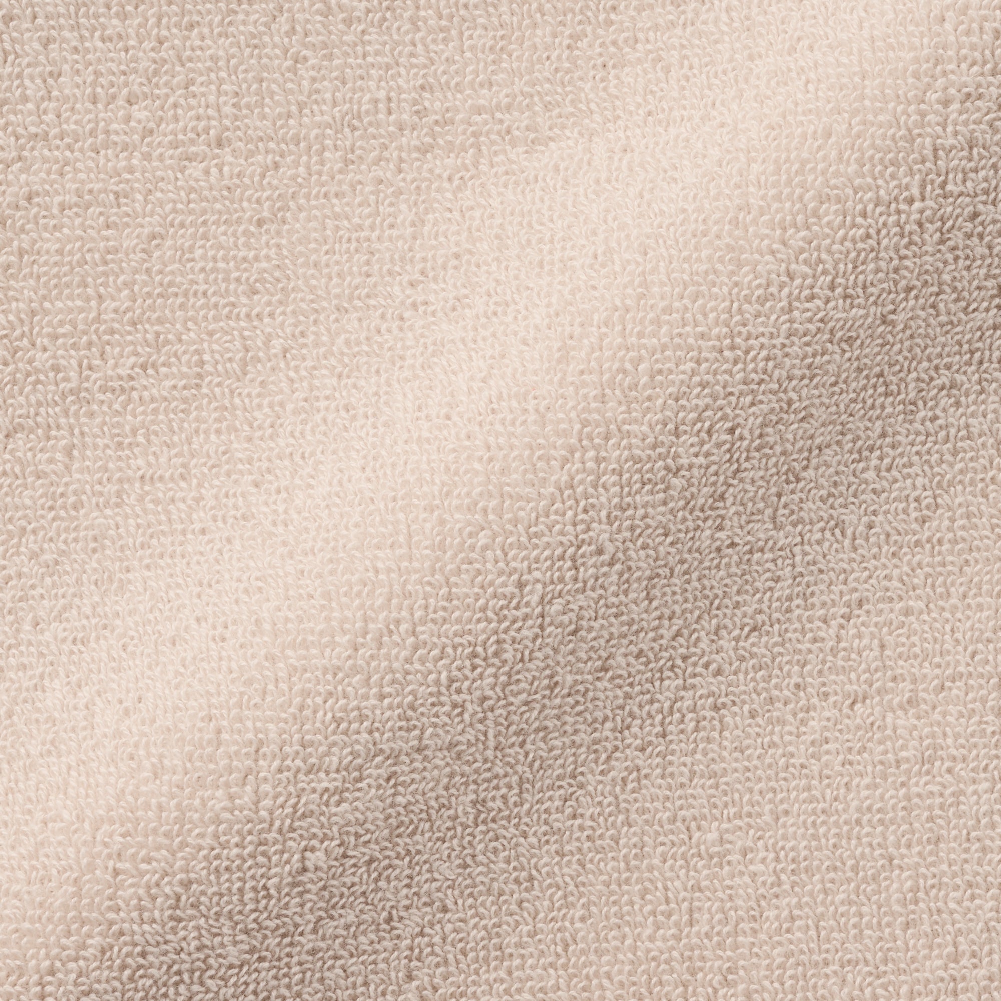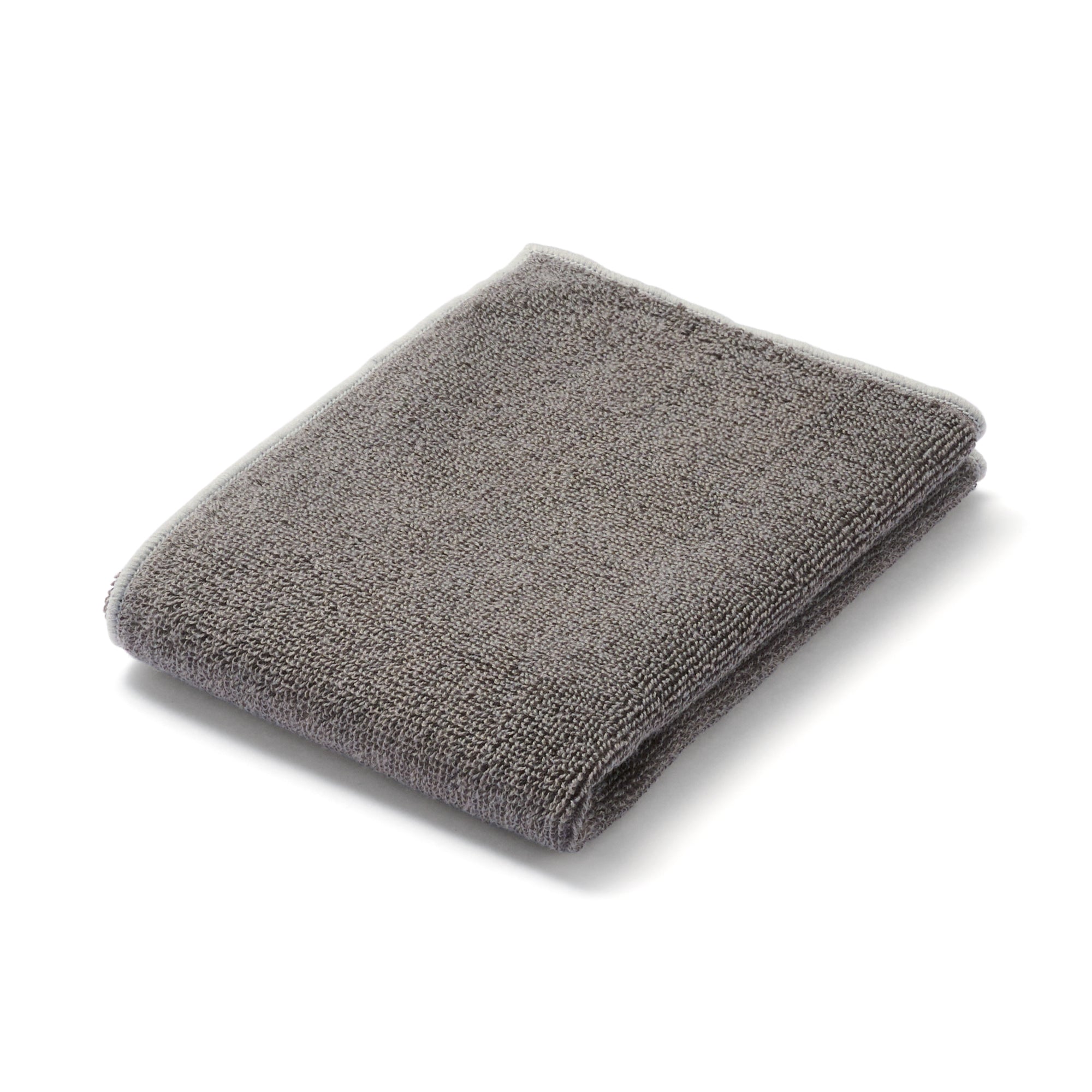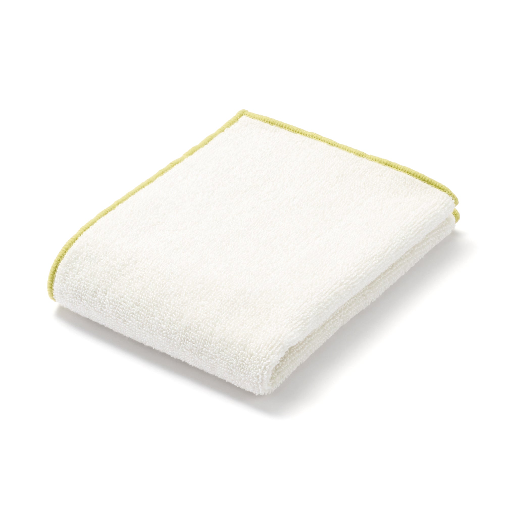 This pile weave hand towel is great for drying wet hands or washing your face. The perimeter is made with narrow stitching and pile all the way to the edge. so it doesn’t take up much space when folded.