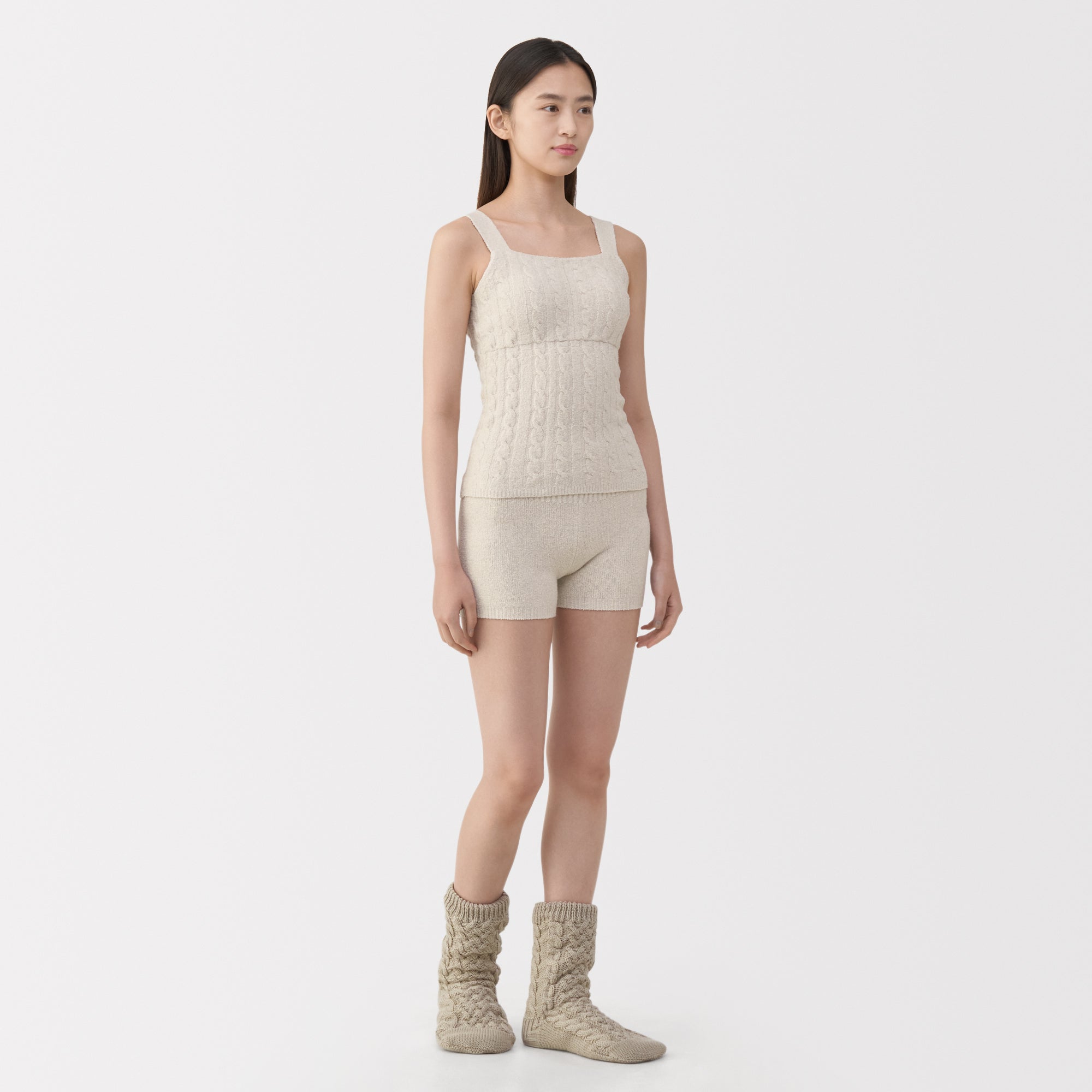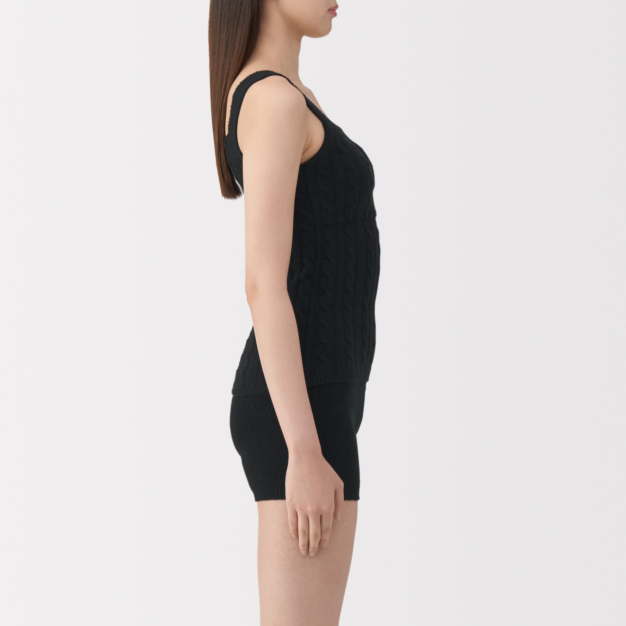 This tank top is designed with removable bra cups for easy washing. It is made from organic cotton-covered threads in a cable knit pattern. offering both elasticity and a luxuriously soft. fluffy feel. The wide straps ensure a comfortable fit without digging into your shoulders.