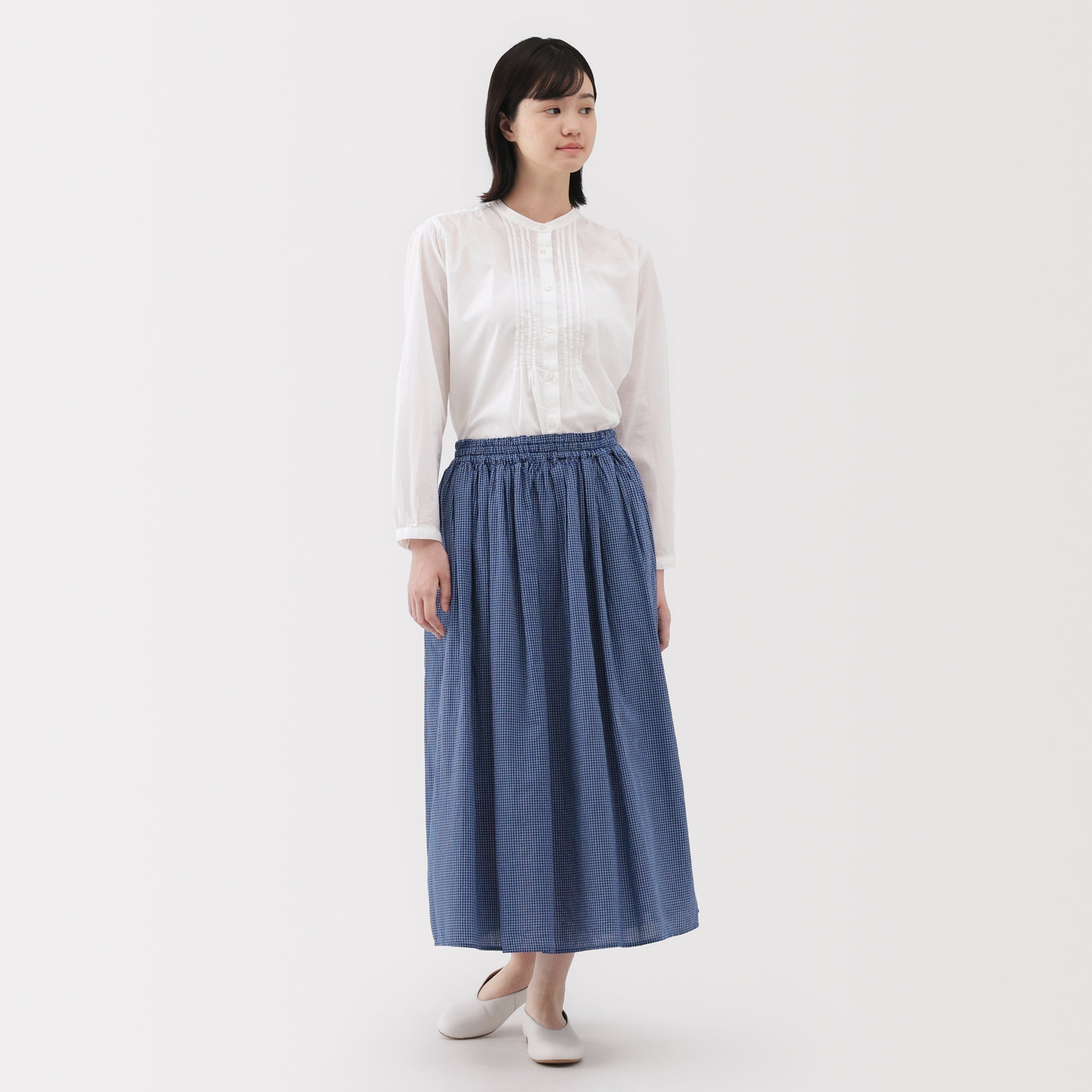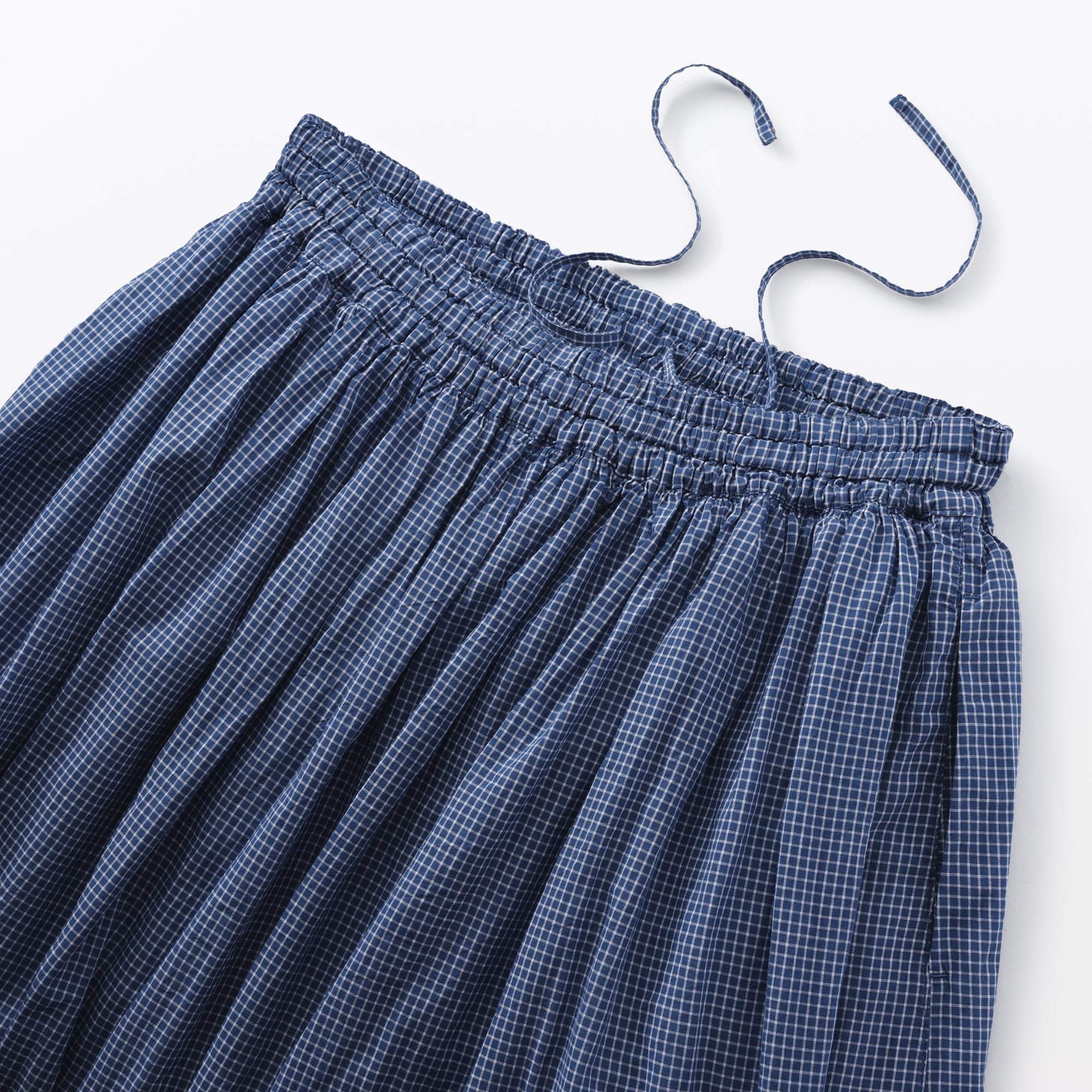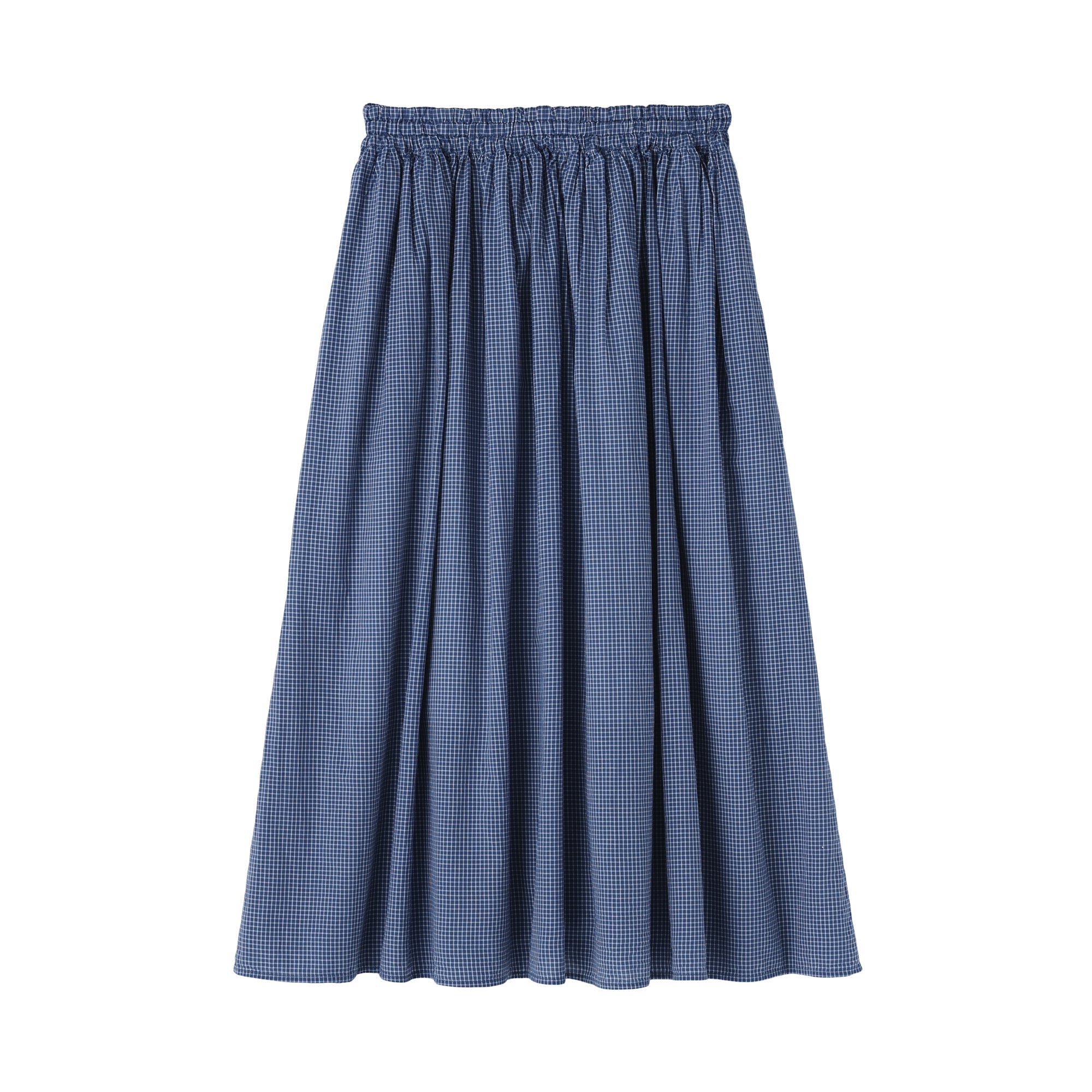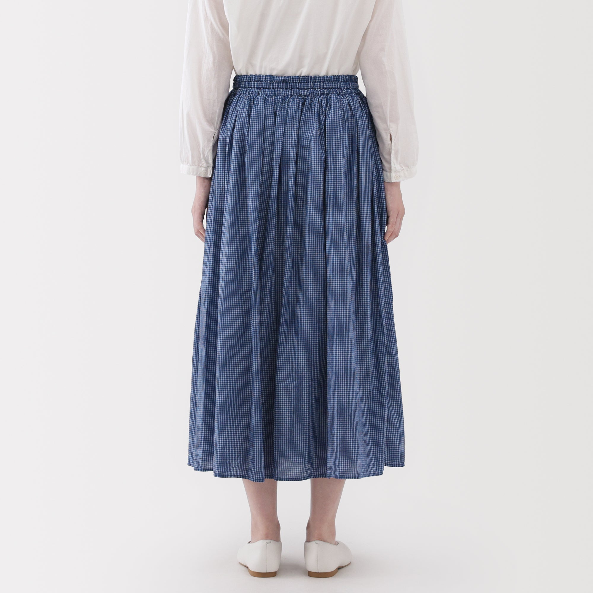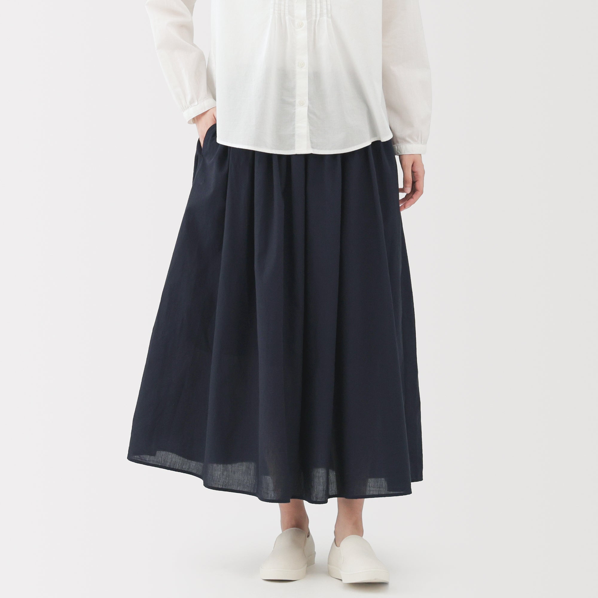 Soft and lightweight. this maxi skirt is made with organic cotton voile.?The skirt is constructed with fine gathers. creating a voluminous appearance with a neat silhouette. It is designed with an elastic waistband that can be adjusted with the inner drawstring for a comfortable fit.