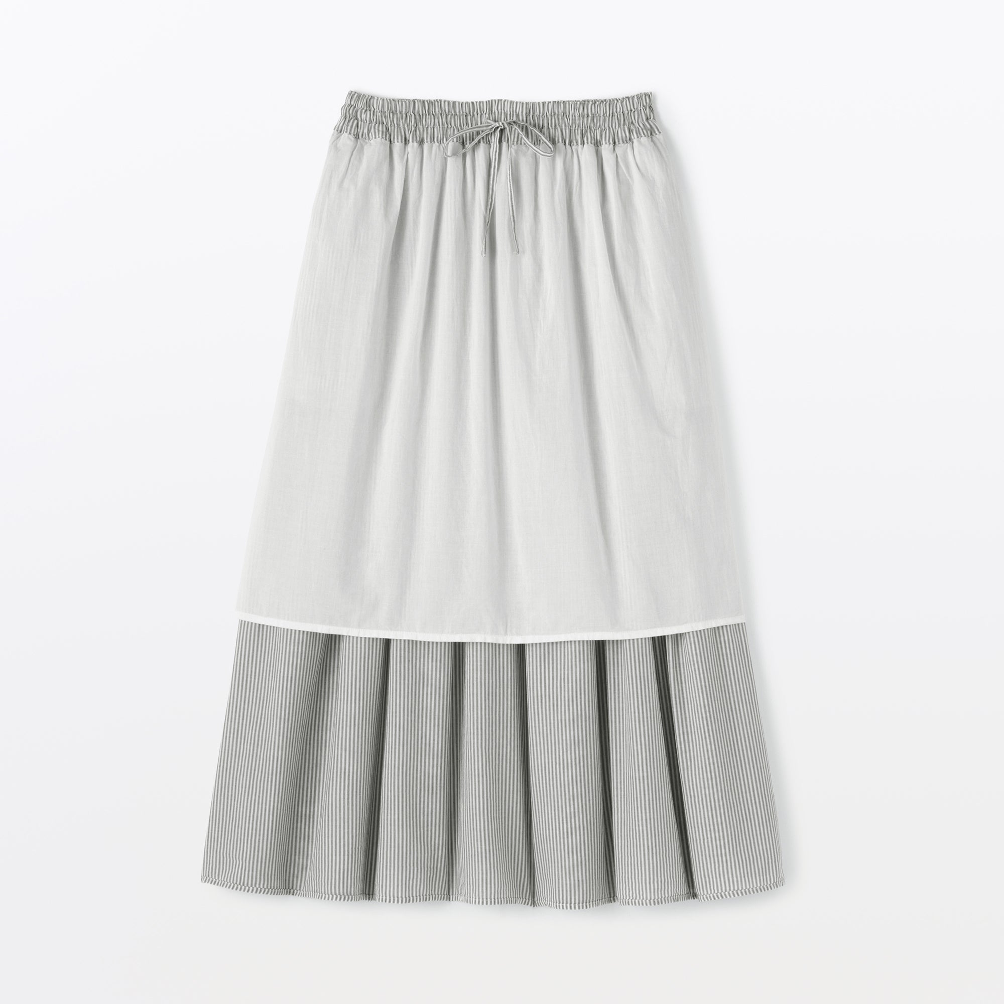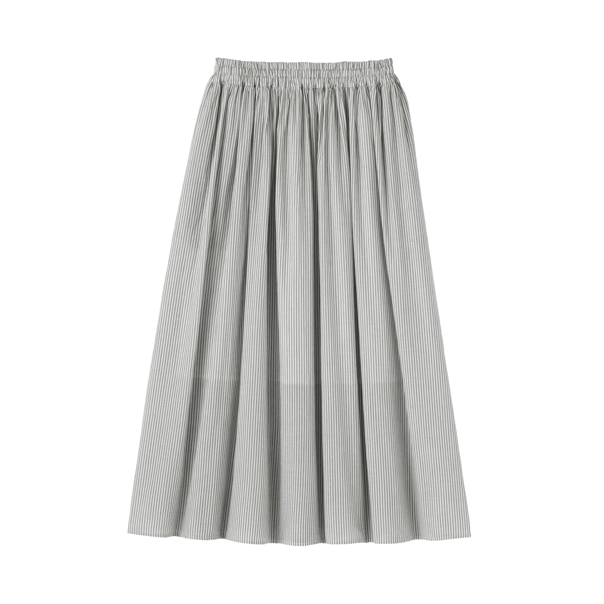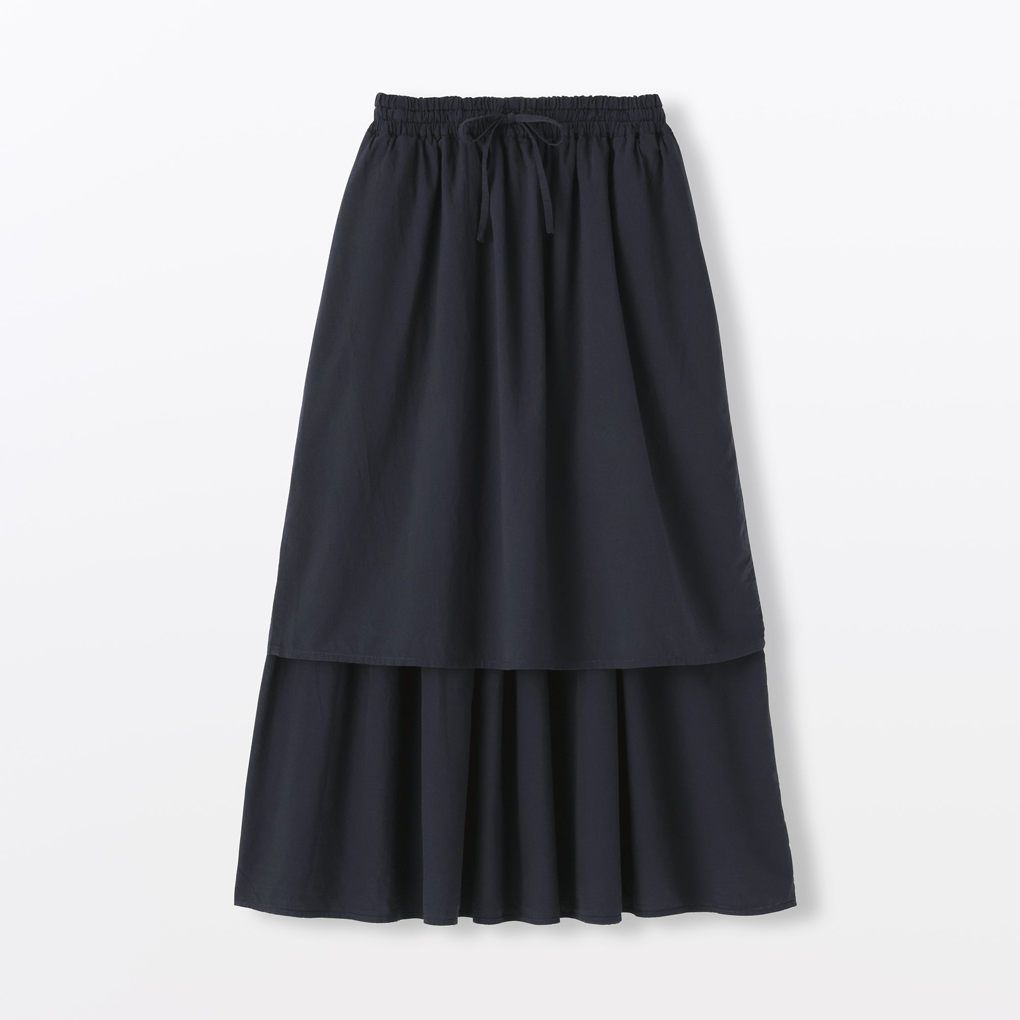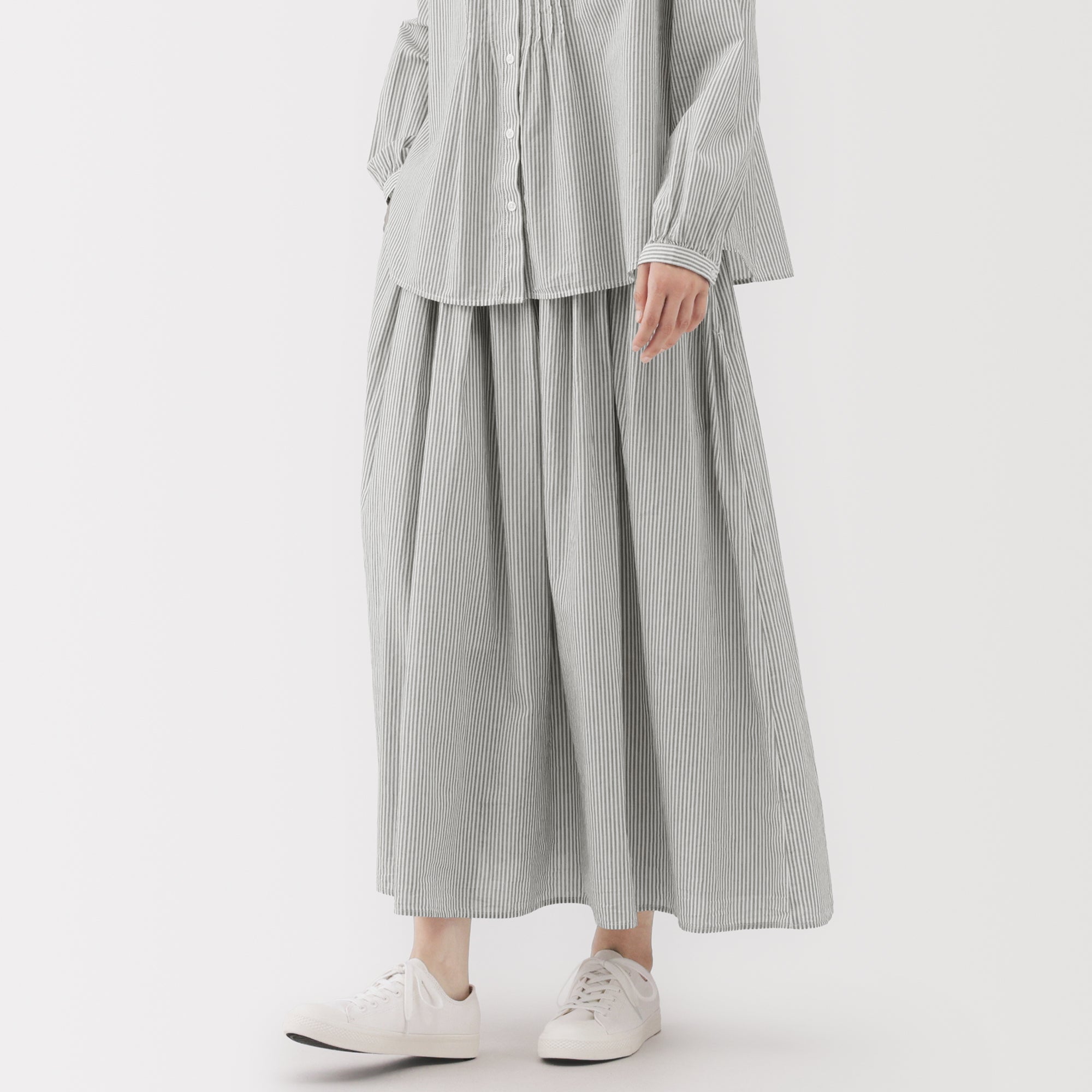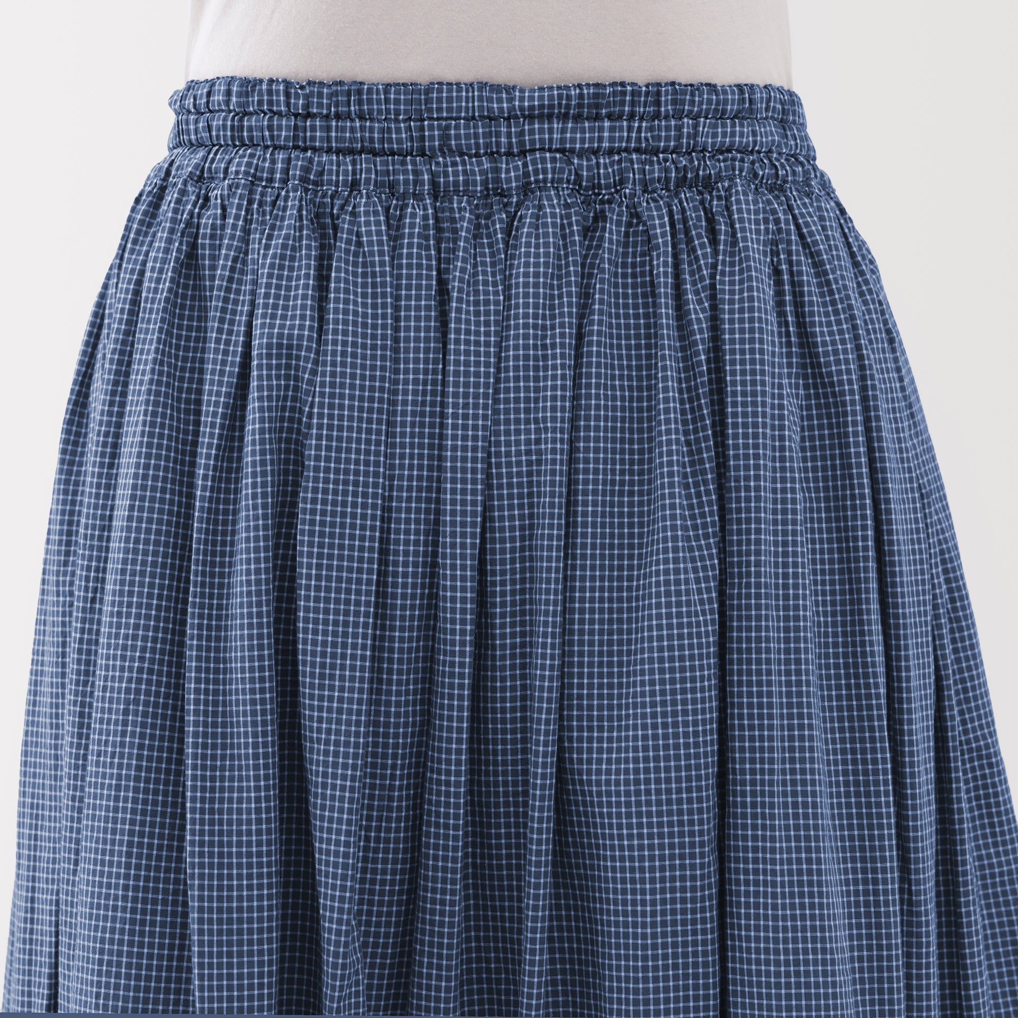Soft and lightweight. this maxi skirt is made with organic cotton voile.?The skirt is constructed with fine gathers. creating a voluminous appearance with a neat silhouette. It is designed with an elastic waistband that can be adjusted with the inner drawstring for a comfortable fit.