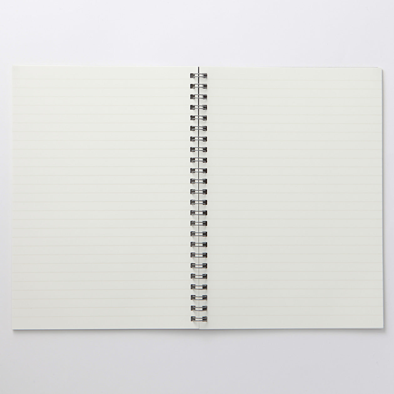A simple. line-ruled double-ring notebook. The rings allow you to flip the cover over completely and write from any orientation. This item is part of the MUJI Afforestation effort. allowing communities to directly choose and benefit from the trees they cultivate.