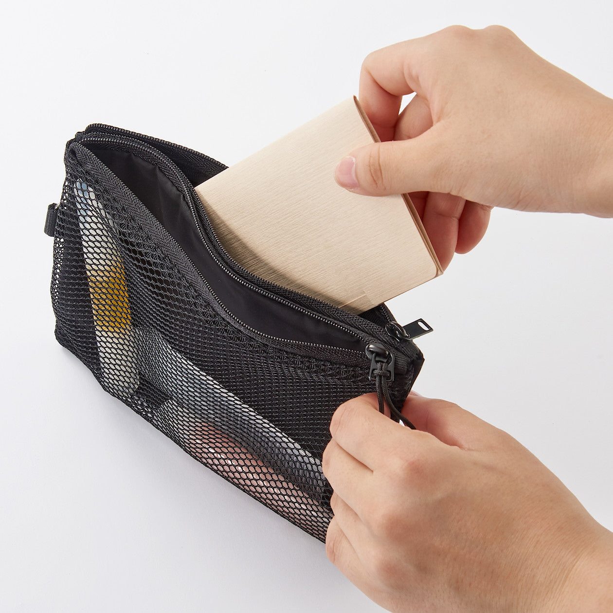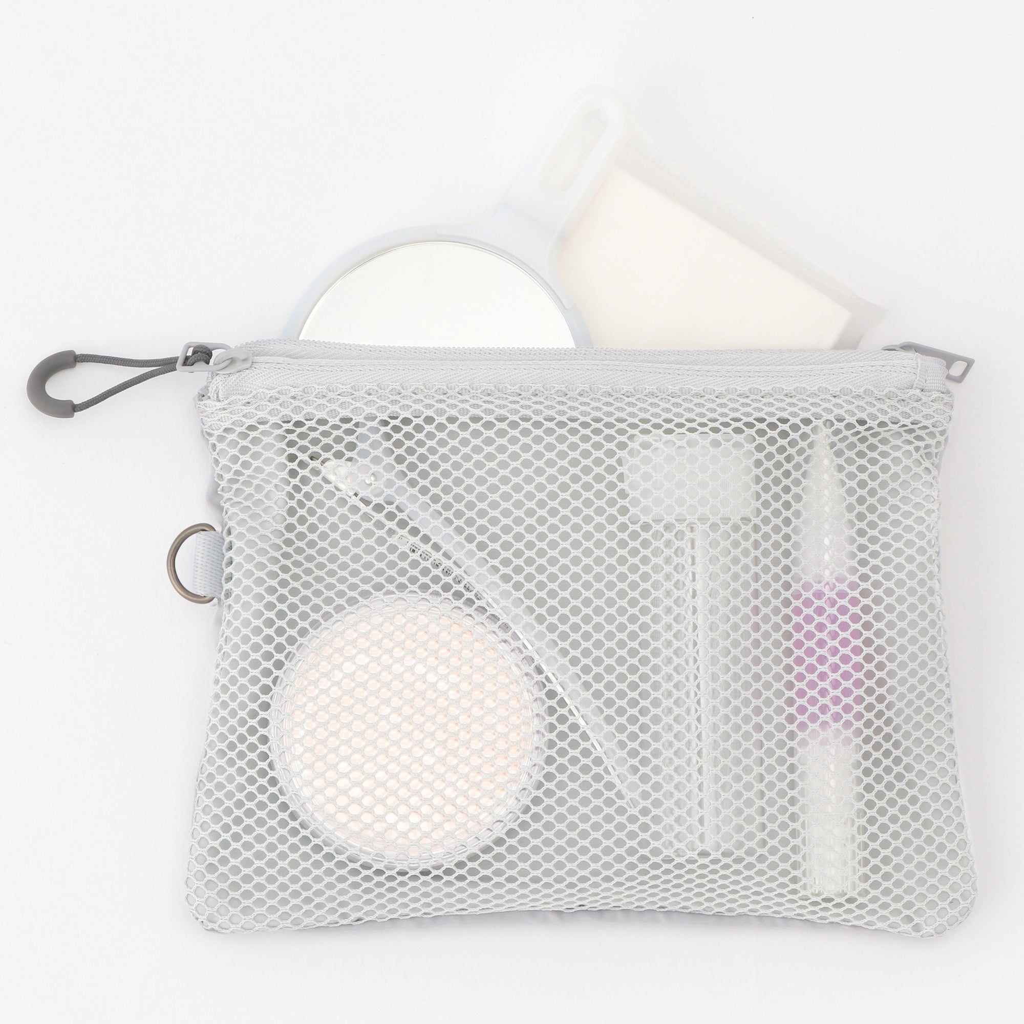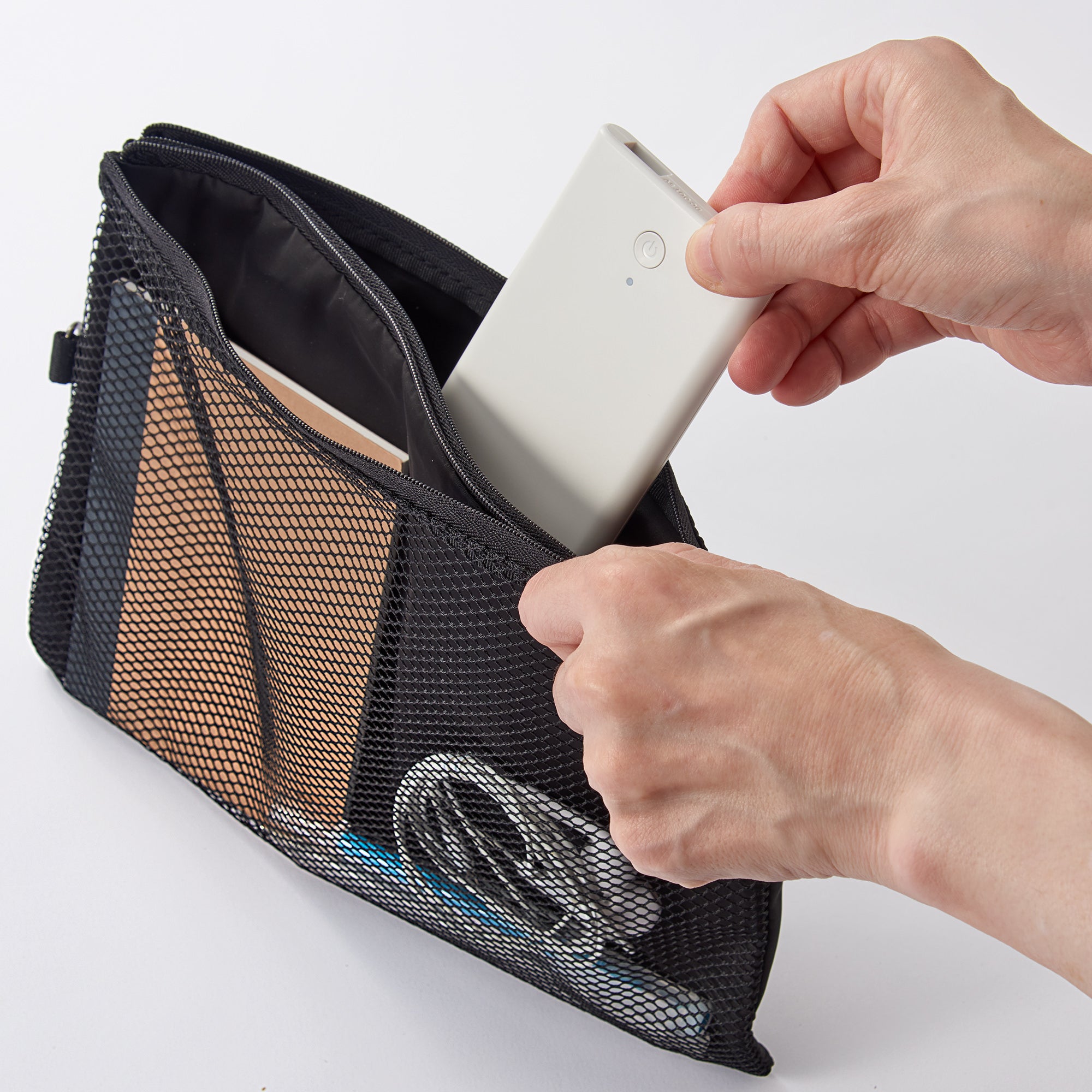 A portable storage pouch that has convenient mesh pockets so you can easily see its contents. perfect for organizing items for travel.