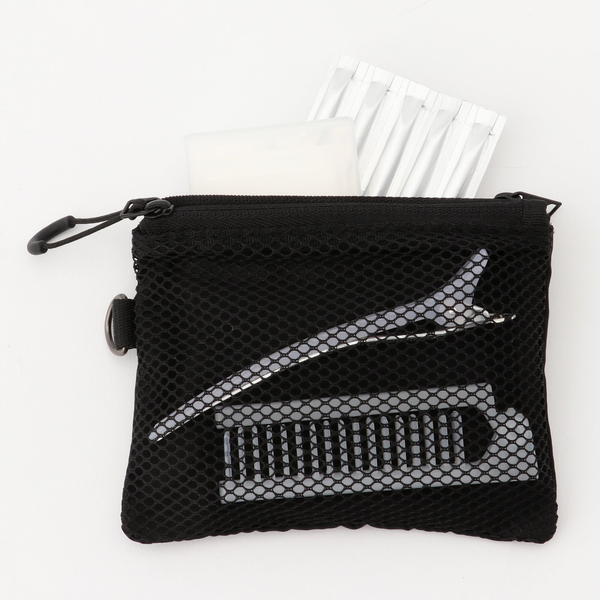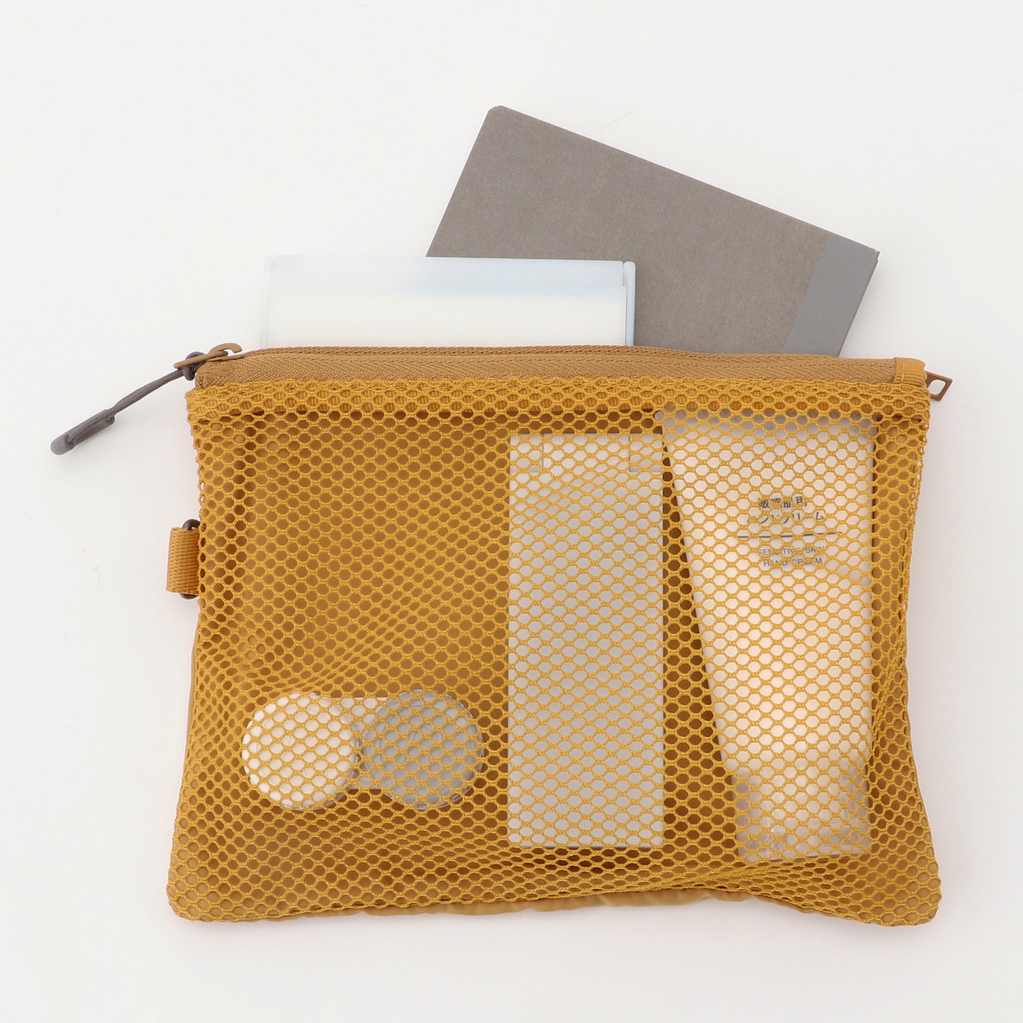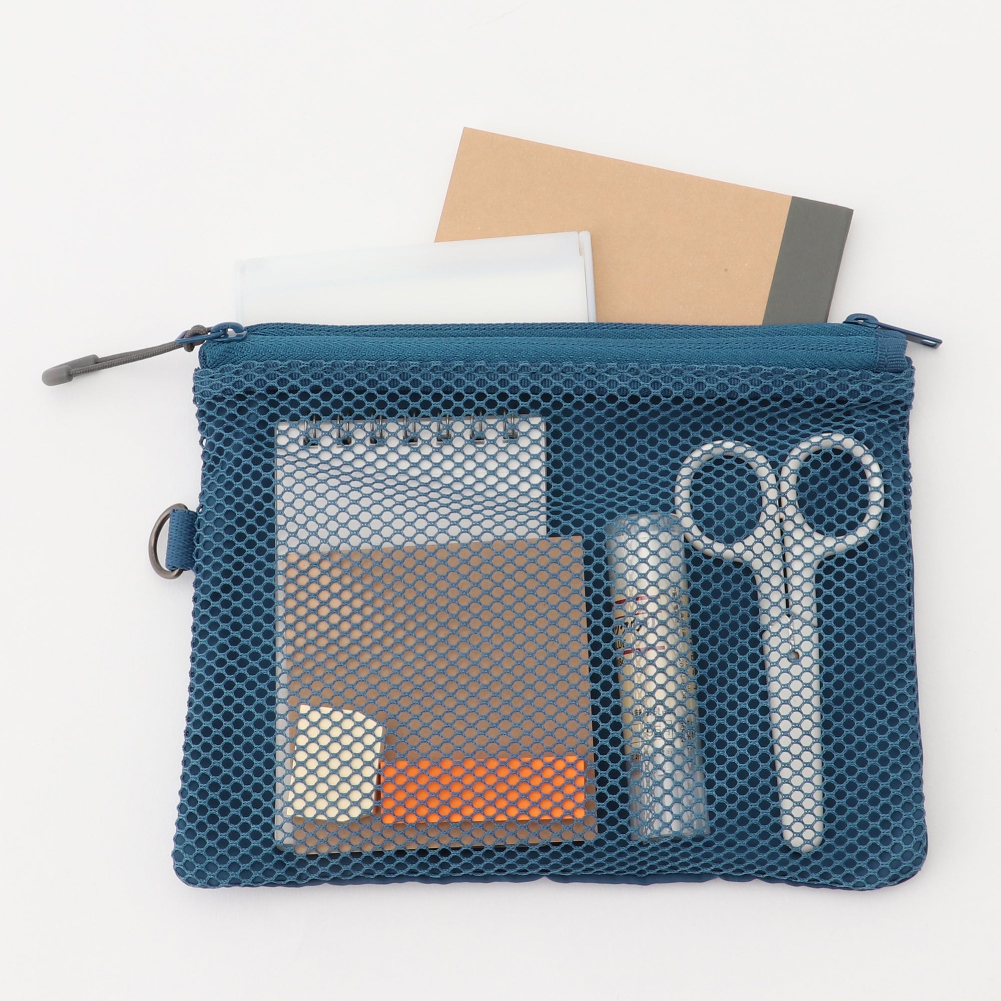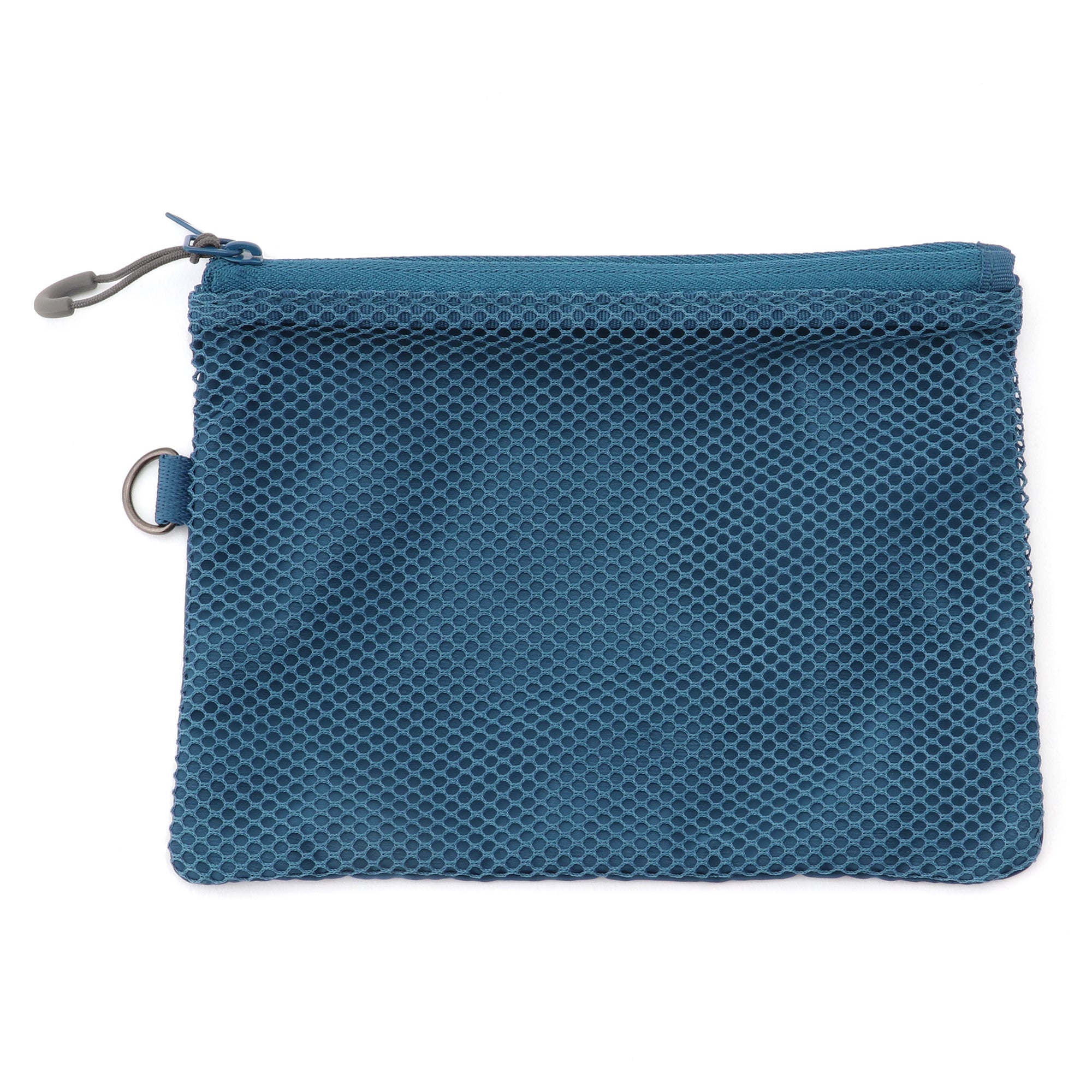 A portable storage pouch that has convenient mesh pockets so you can easily see its contents. perfect for organizing items for travel.