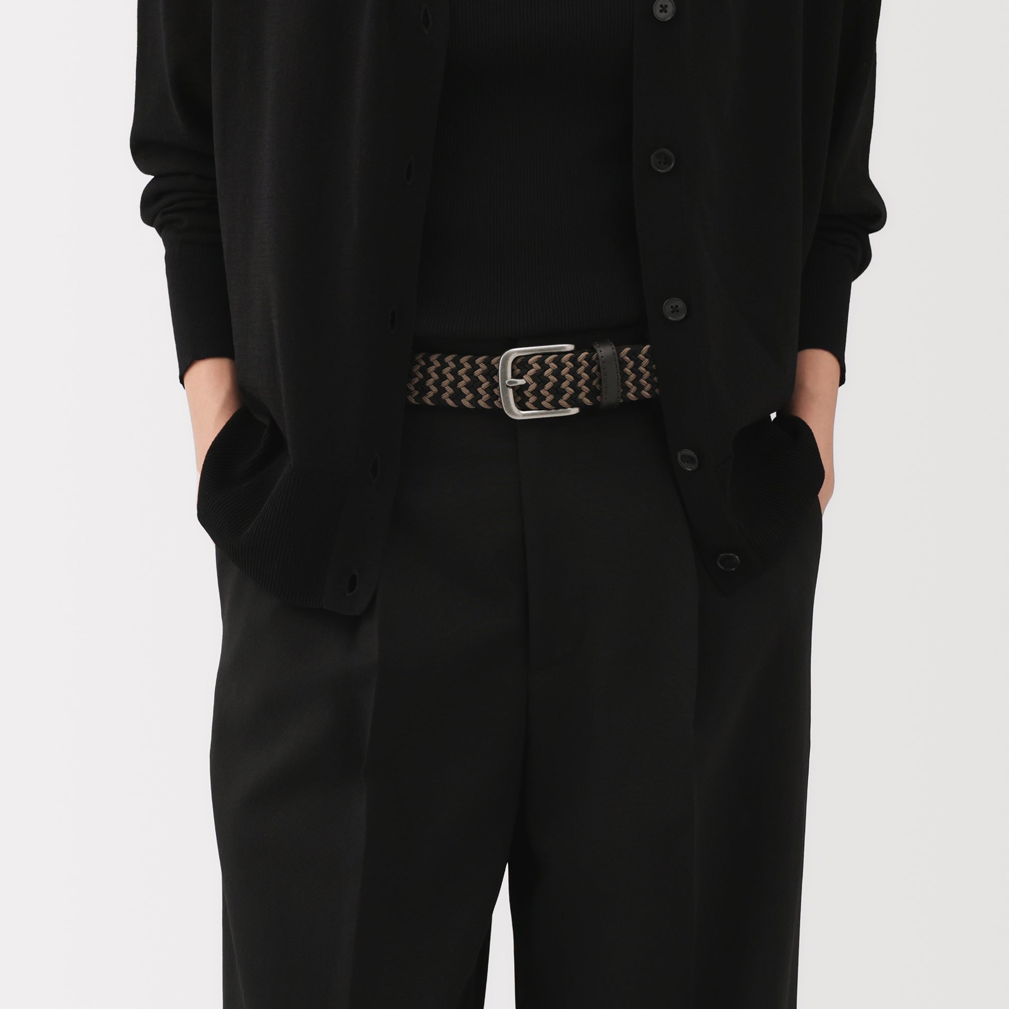 This belt is woven with stretchy elastic thread. allowing for flexibility in movement and adjustable sizing without the need for belt holes.