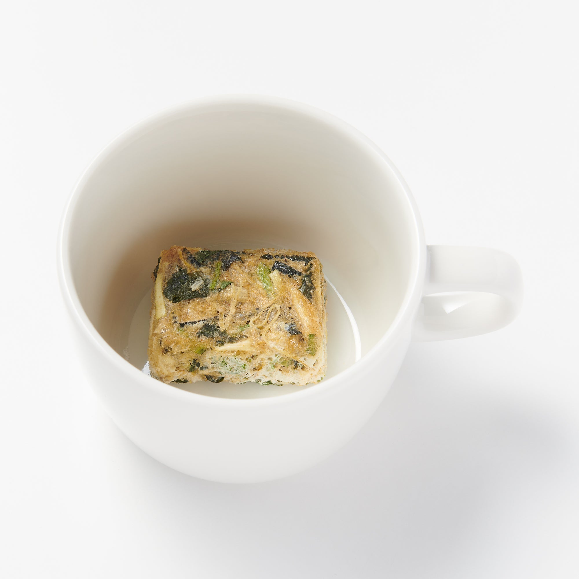 - Put soup cube into a bowl/cup and add 5.4 fl oz hot water.