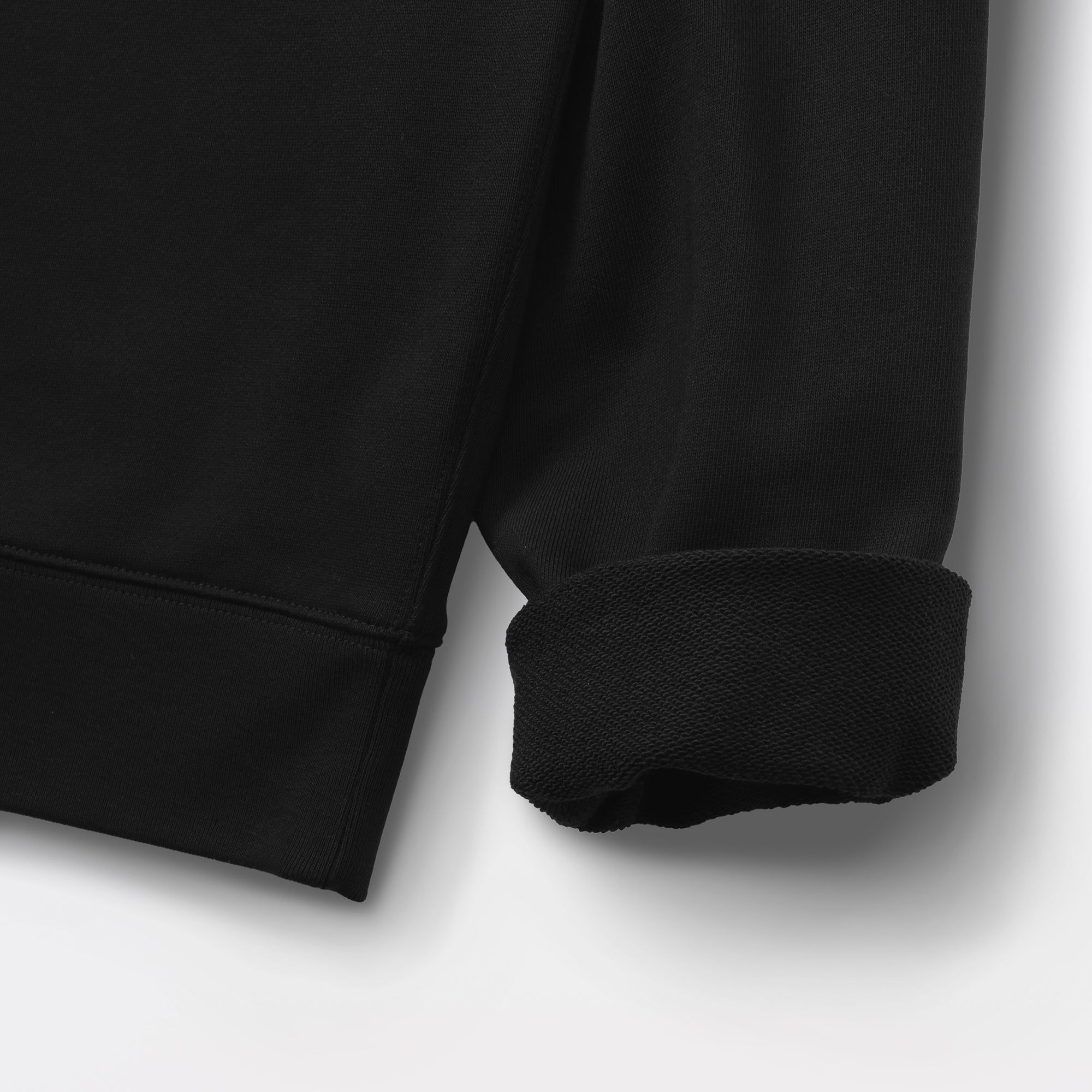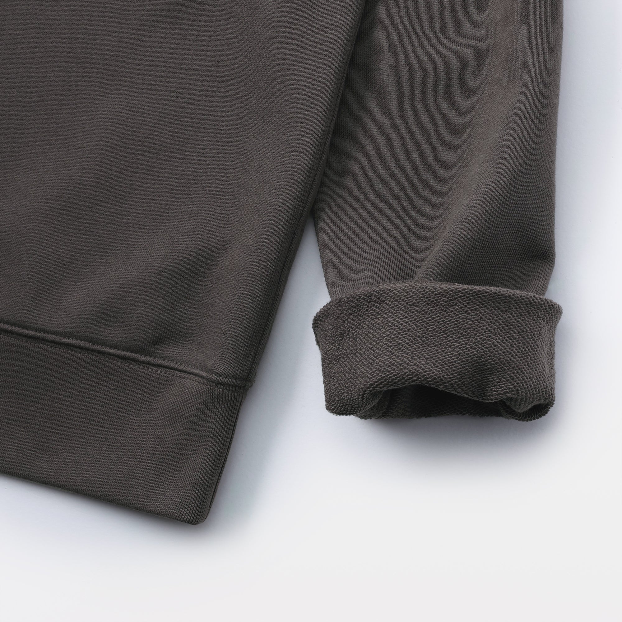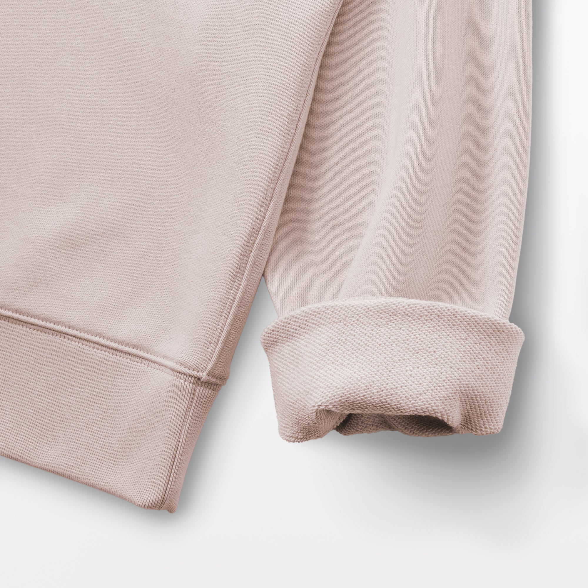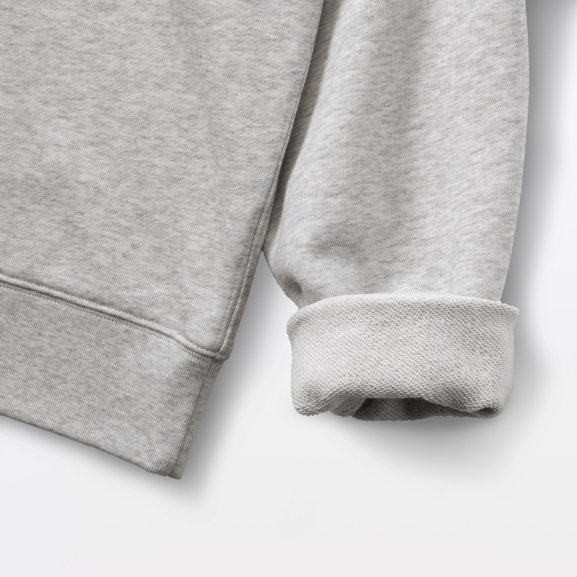 This cozy sweatshirt is made from a blend of organic cotton and polyester for a material that is soft. thick. and comfortable to wear.