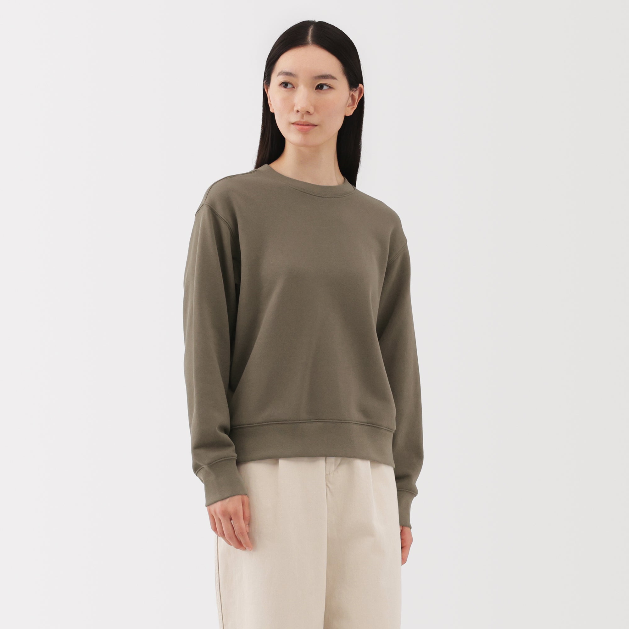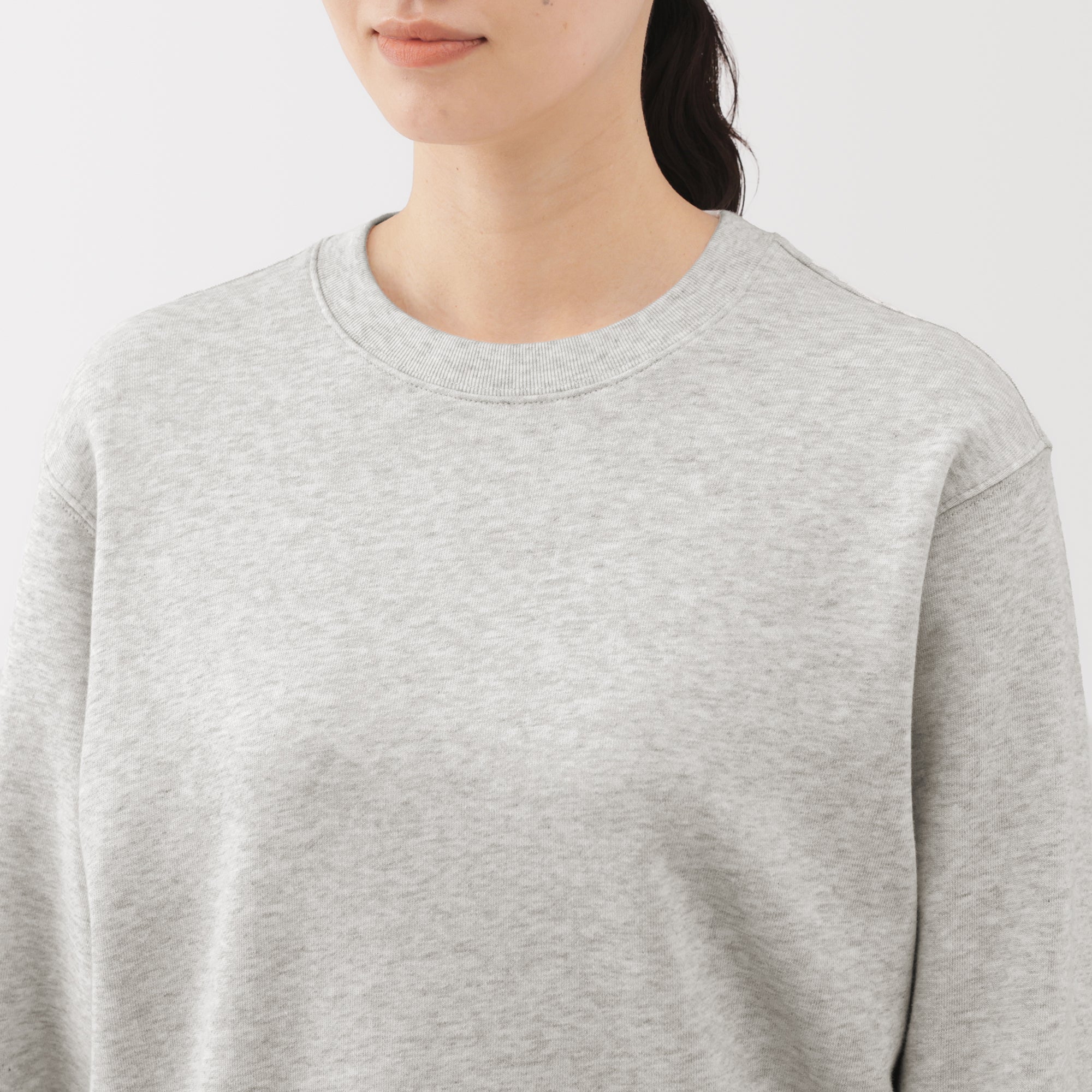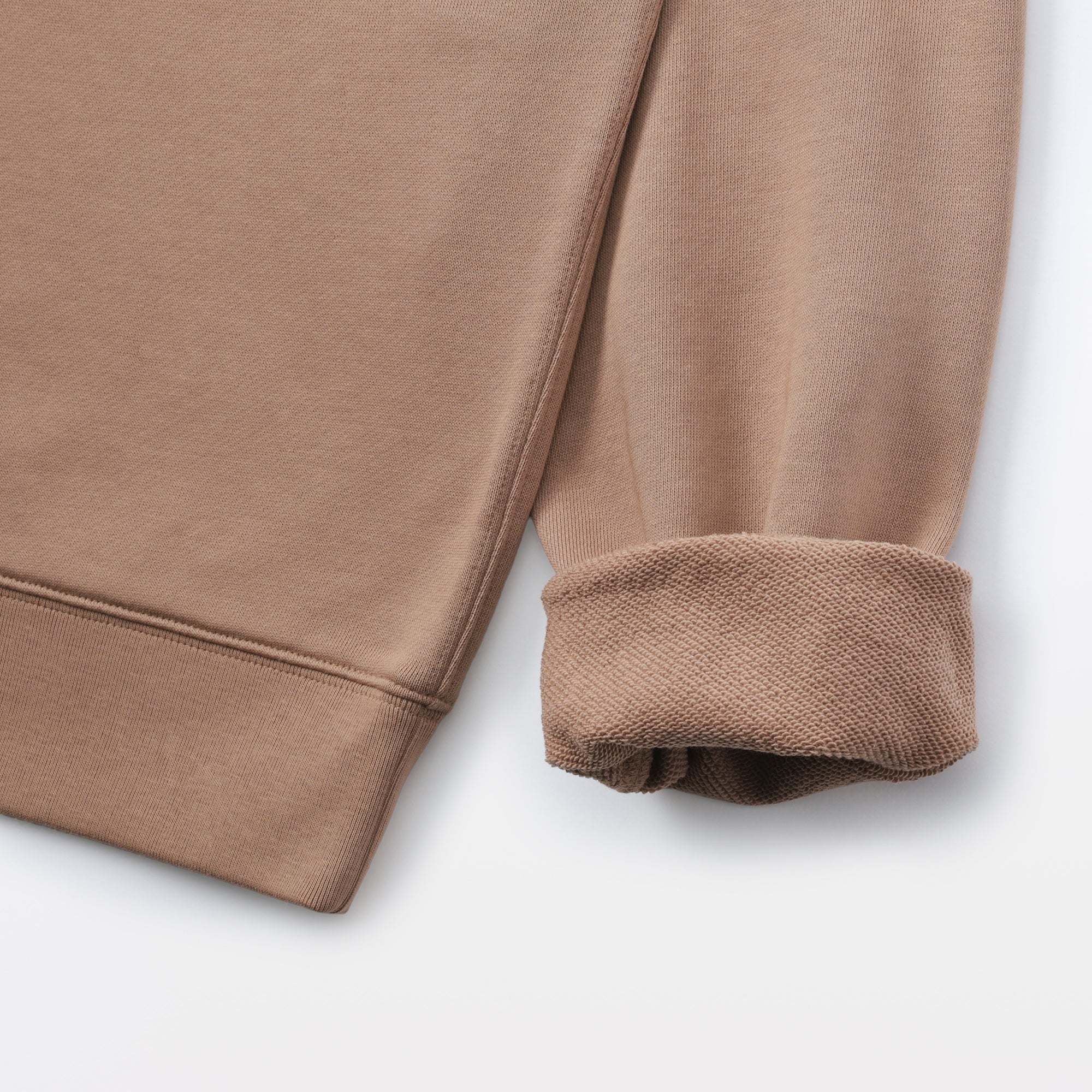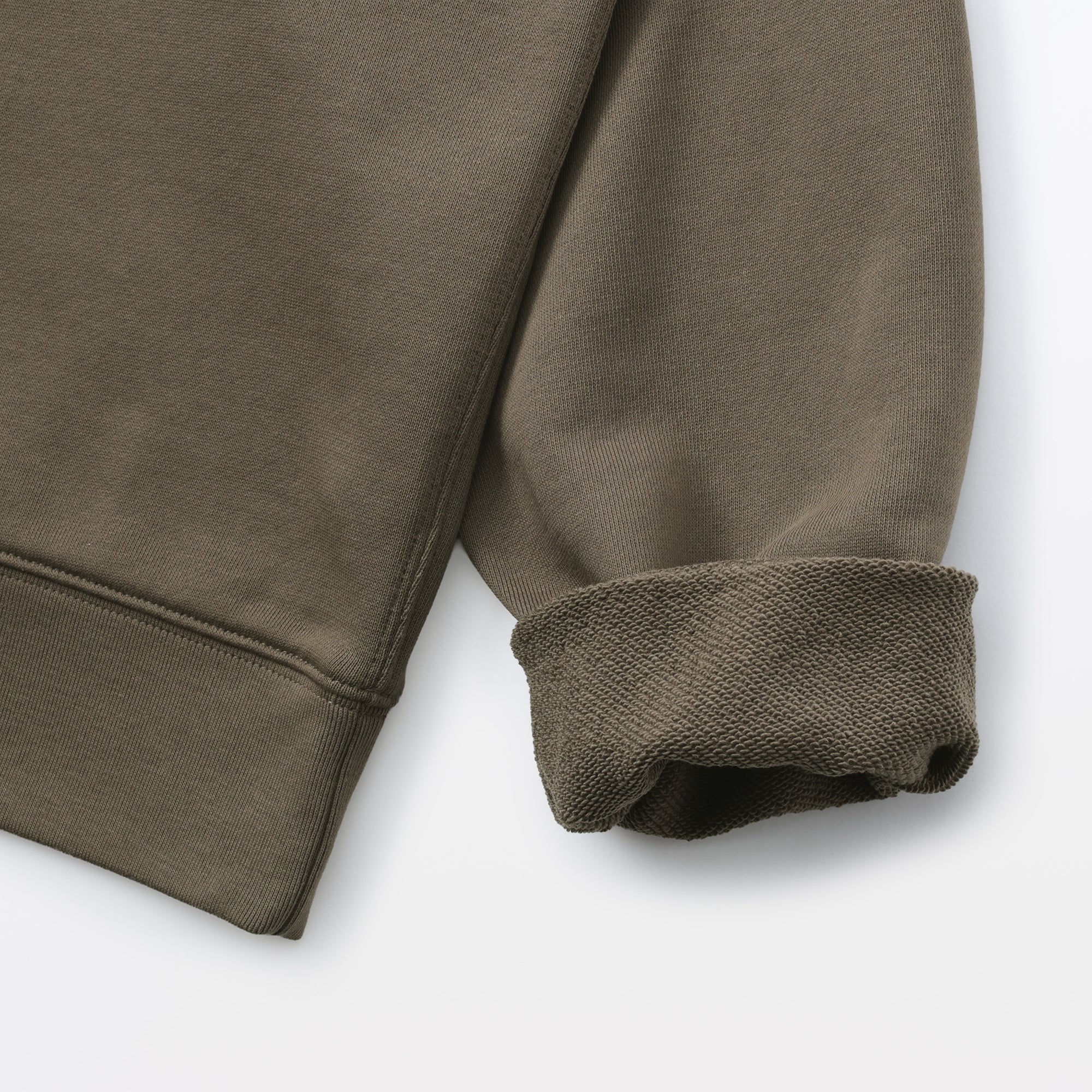 This cozy sweatshirt is made from a blend of organic cotton and polyester for a material that is soft. thick. and comfortable to wear.