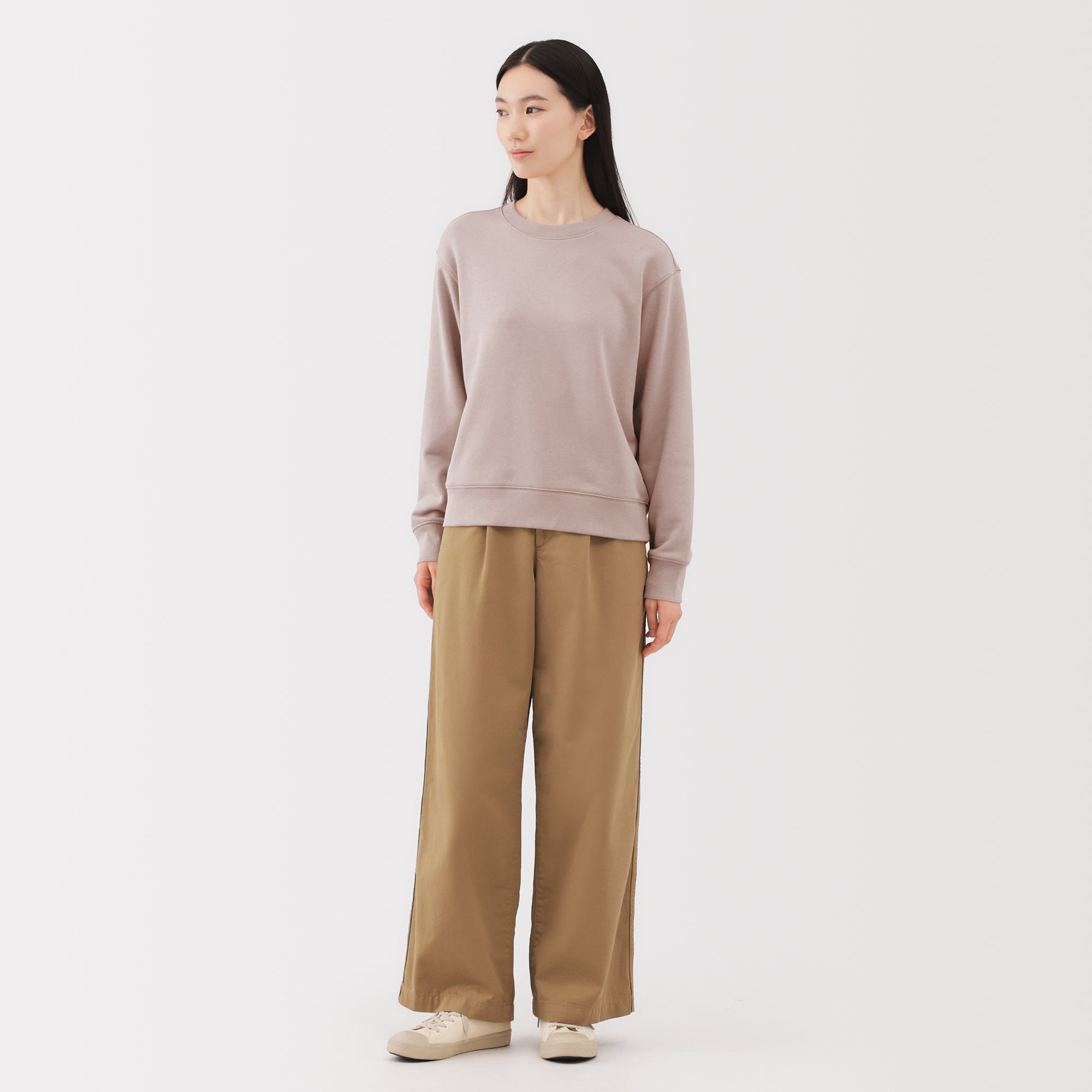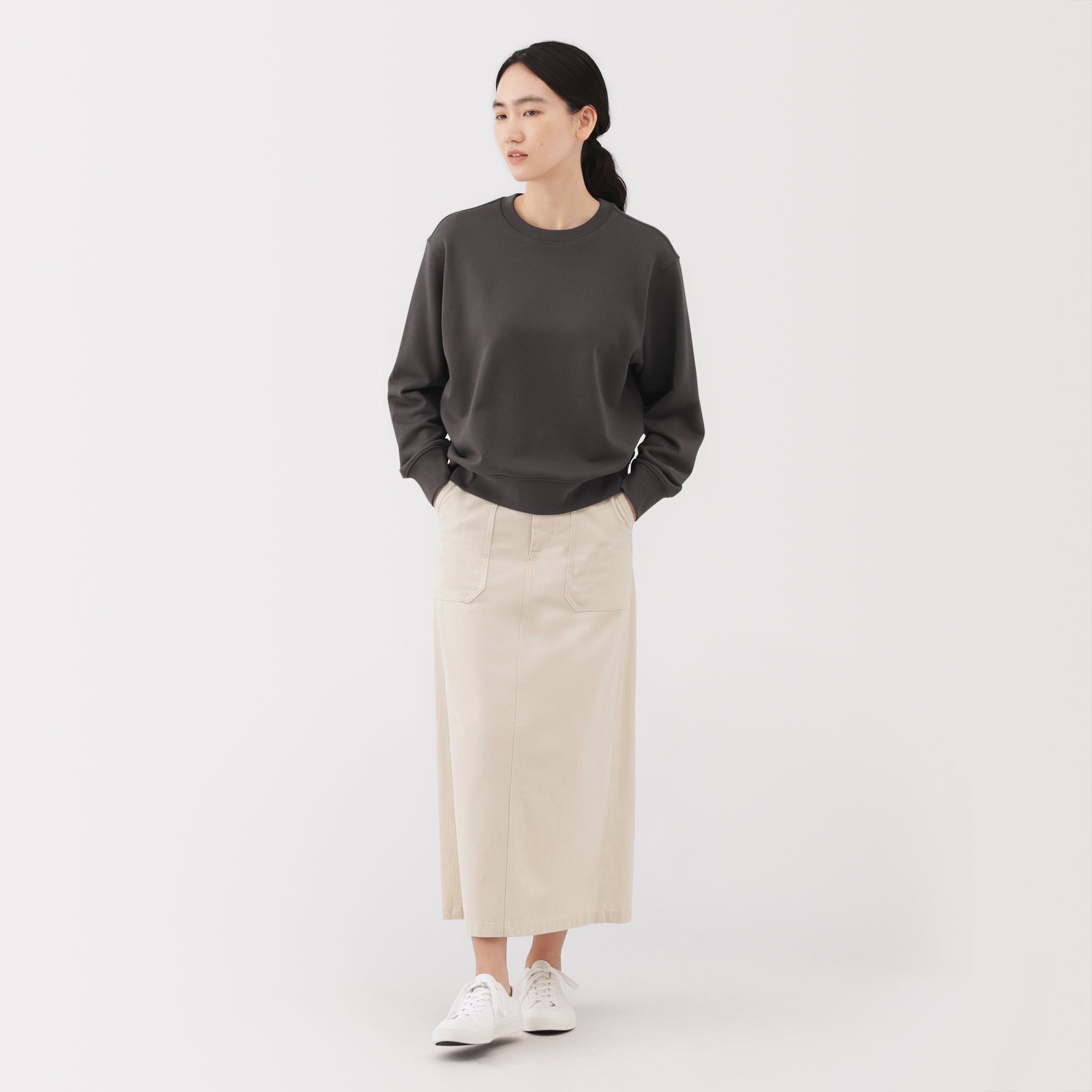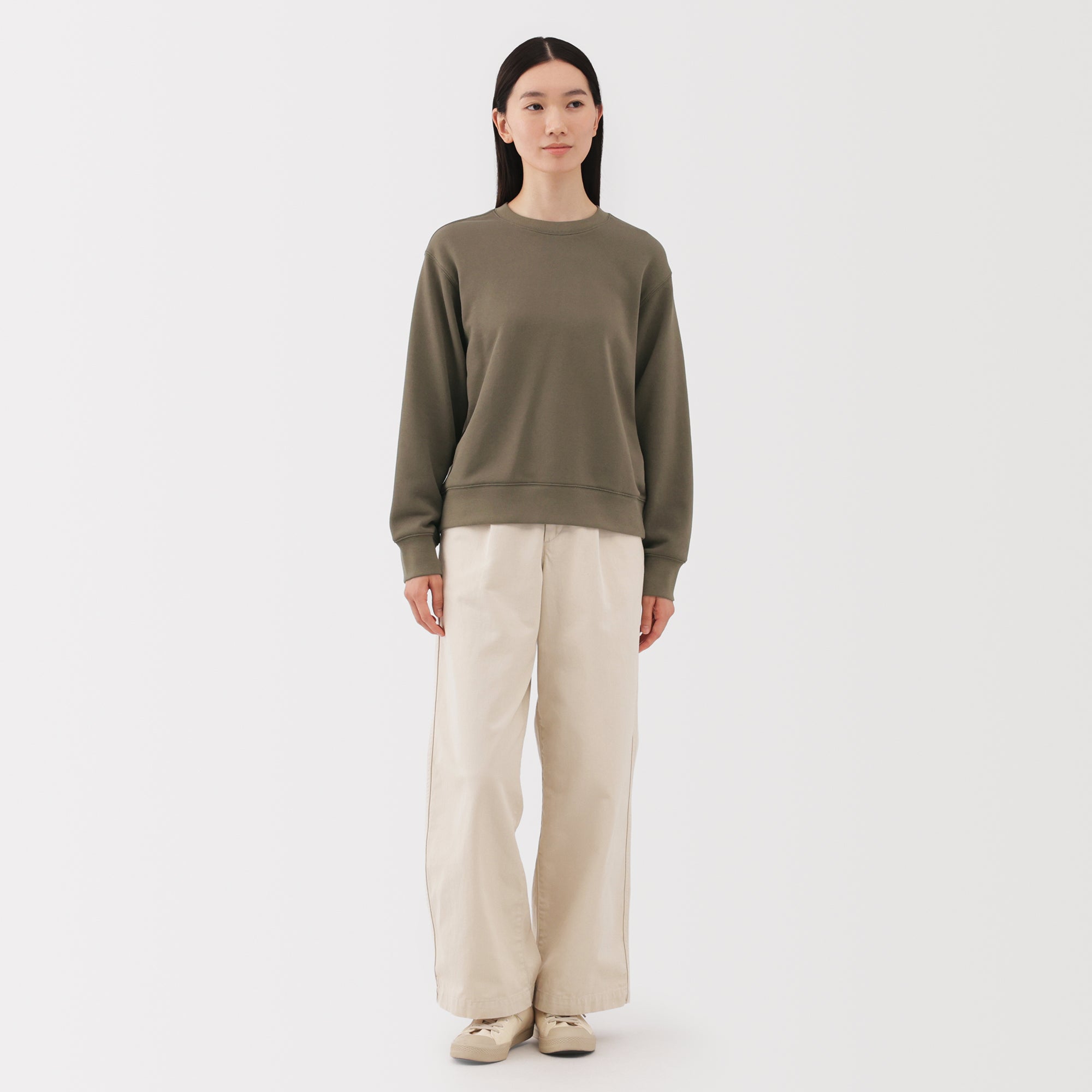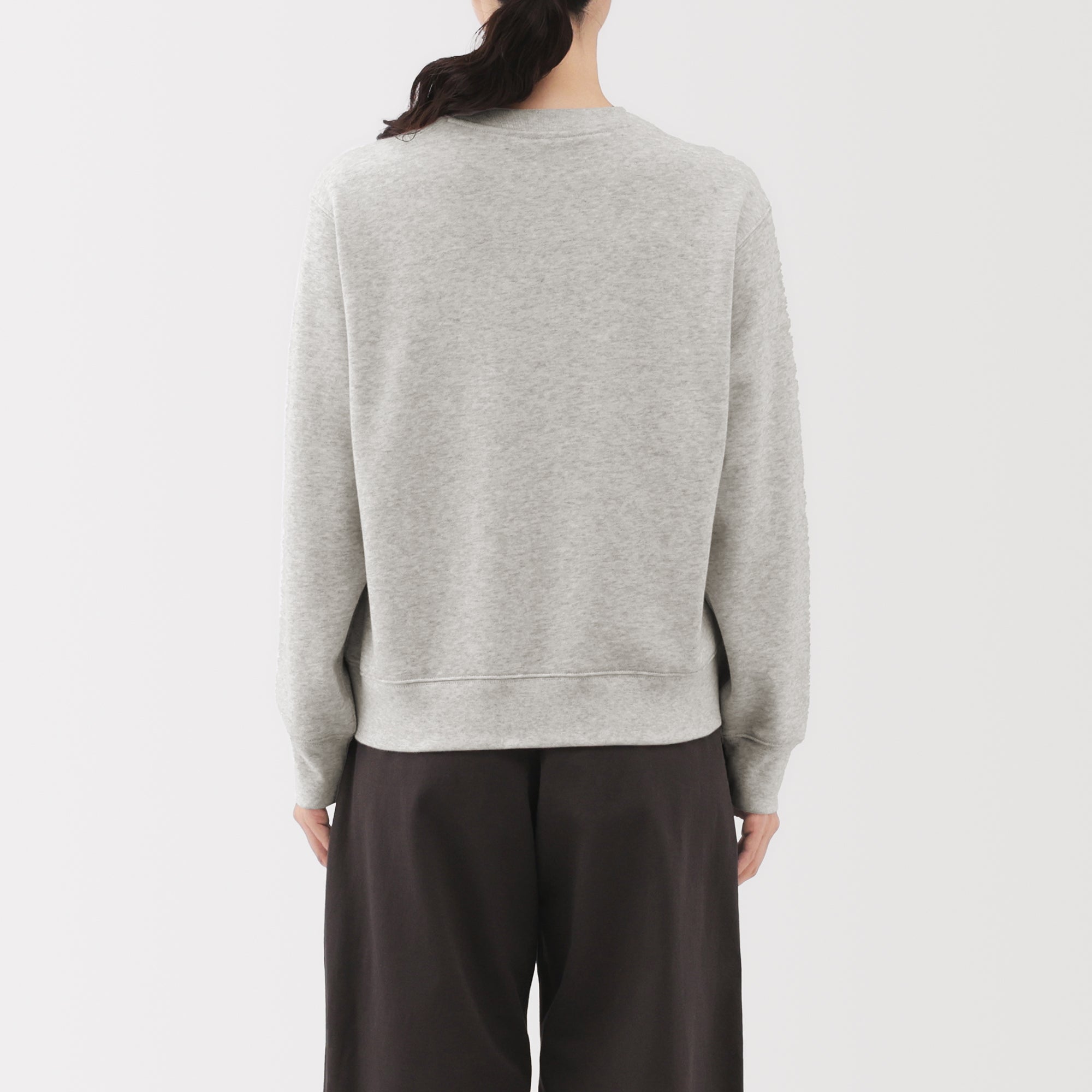 This cozy sweatshirt is made from a blend of organic cotton and polyester for a material that is soft. thick. and comfortable to wear.