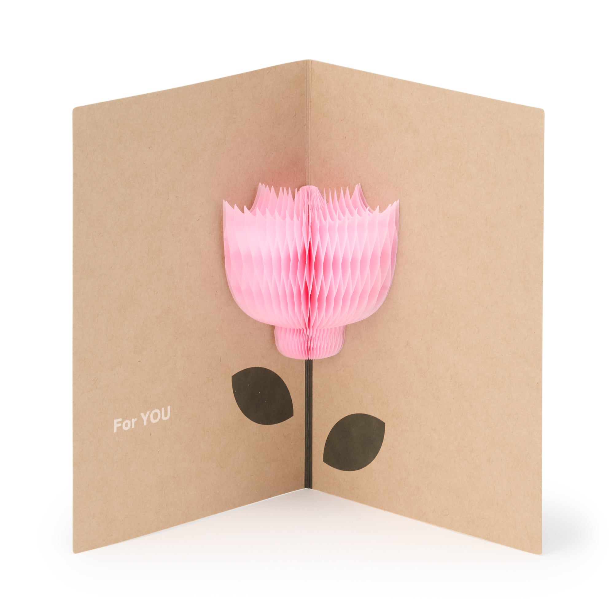 This simple but fun message card can be used for many different occasions. When opened. a pop-up flower made with honeycomb paper and the message For You is revealed inside. Decorate the card however you like. then peel off the release paper from the motif and fit it in place. This set includes an envelope and message sticker.