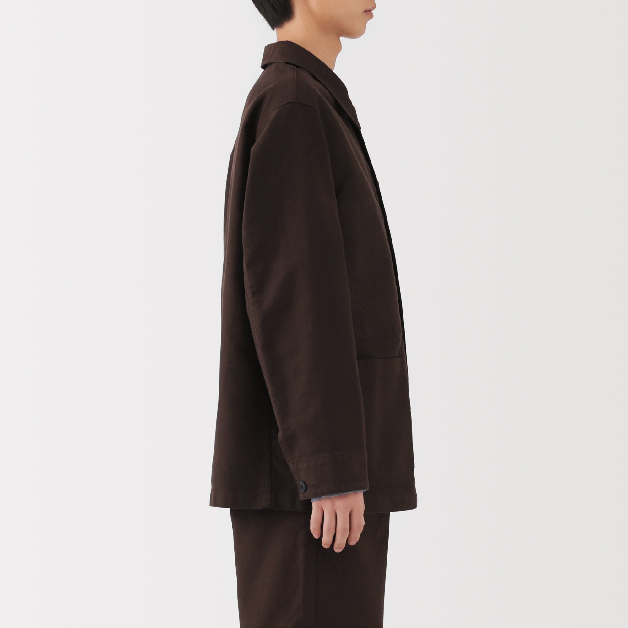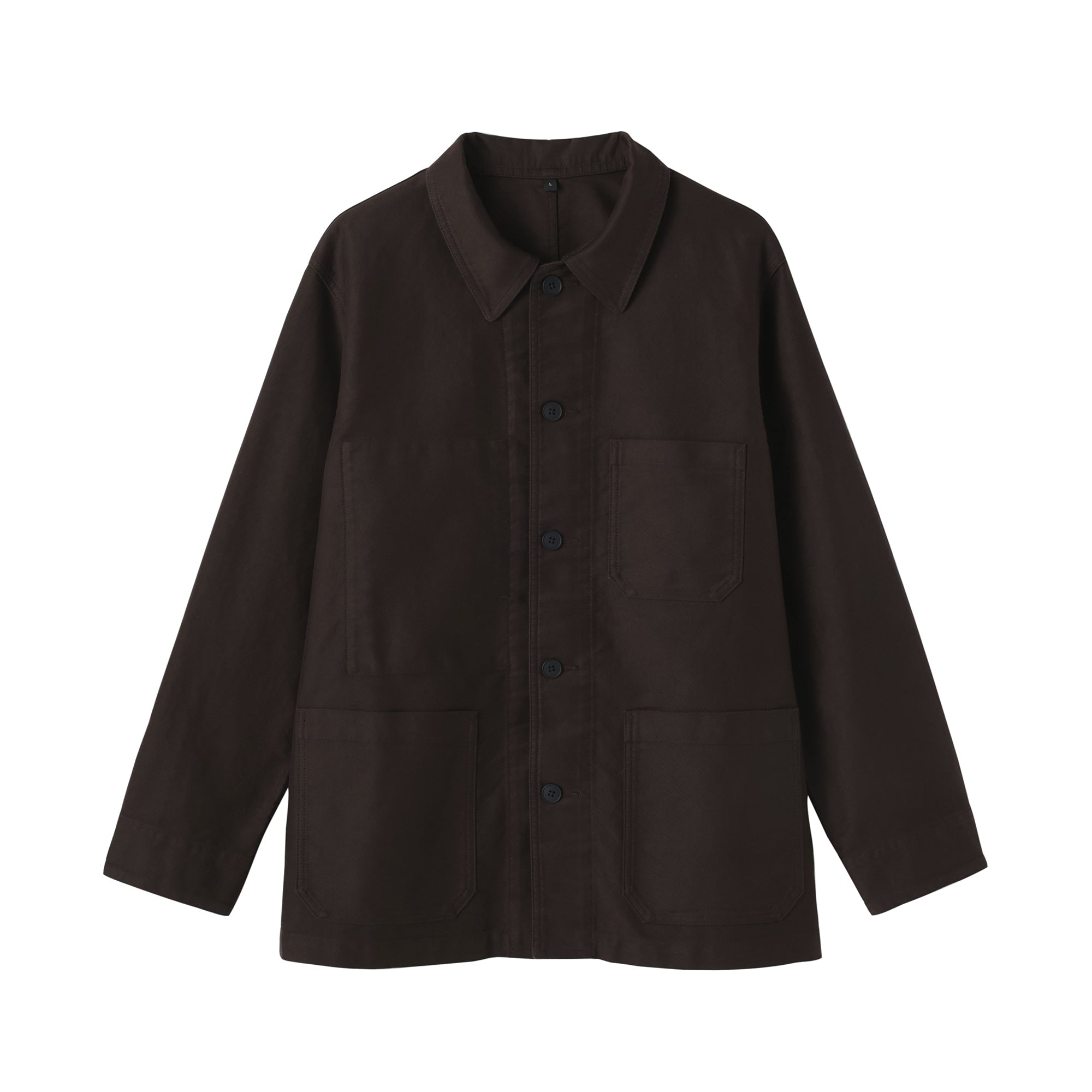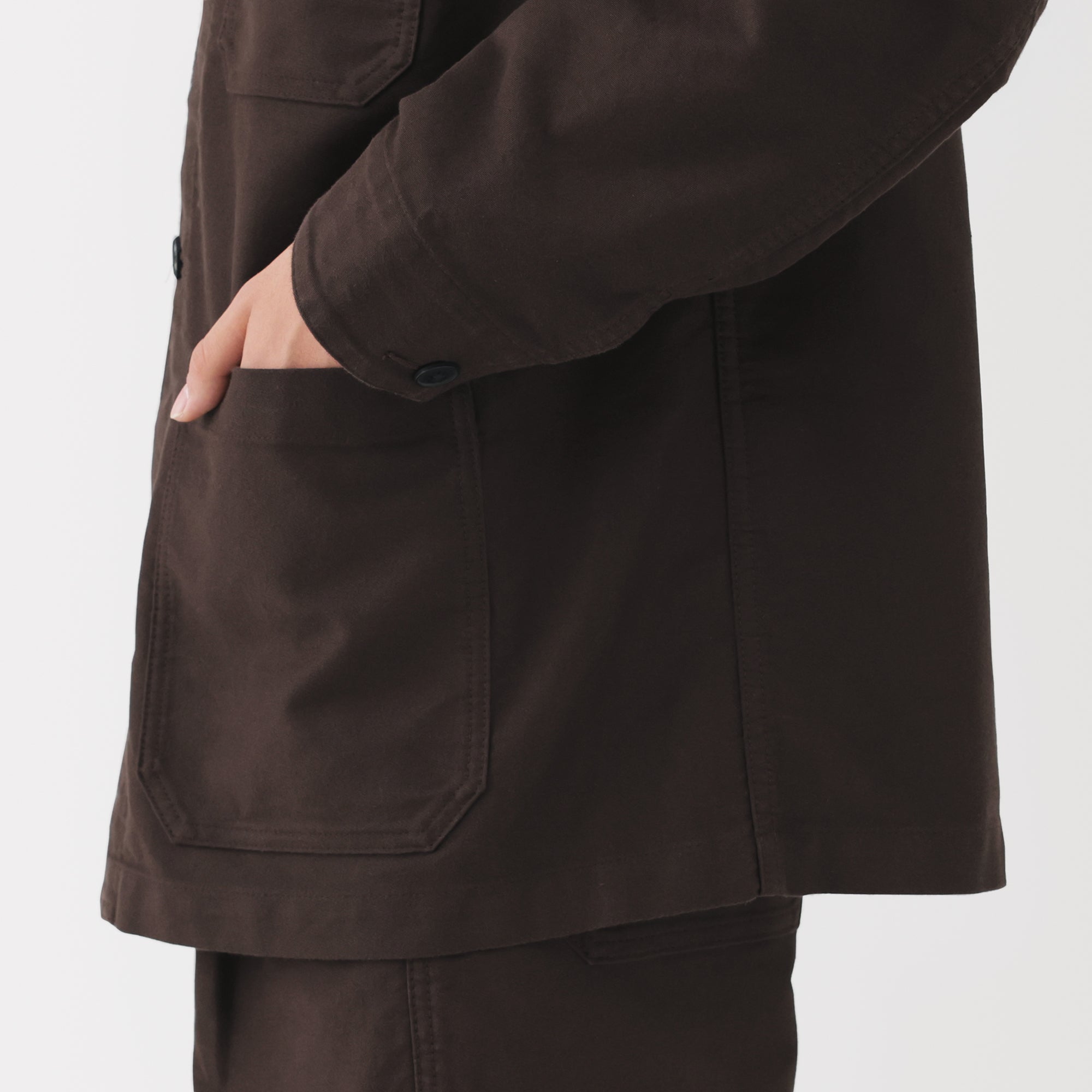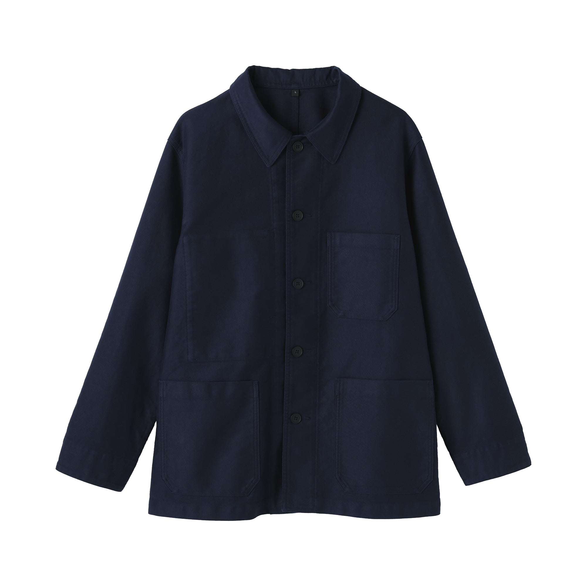 A French workwear-style jacket with a loose silhouette that is perfect for everyday wear. featuring a natural. lightweight blend of kapok and organic cotton for a comfortable fit. The soft. suede-like texture of moleskin brings a refined look to any outfit while also keeping you warm. The more it is worn. the more it softens and conforms to your body. developing a unique texture that you can enjoy over time.
