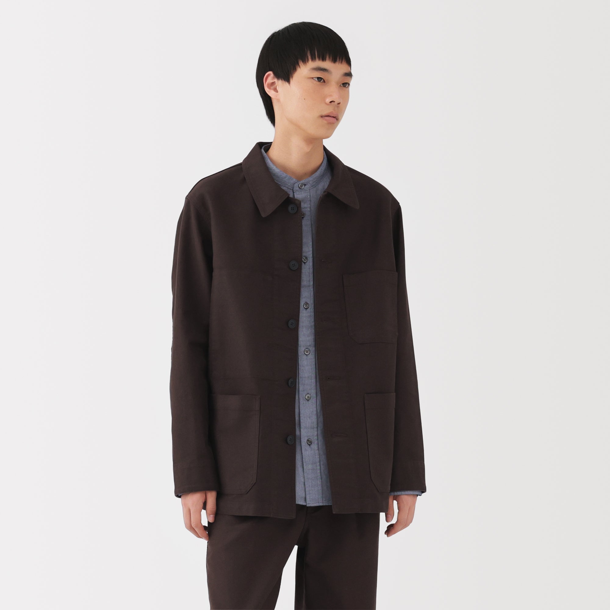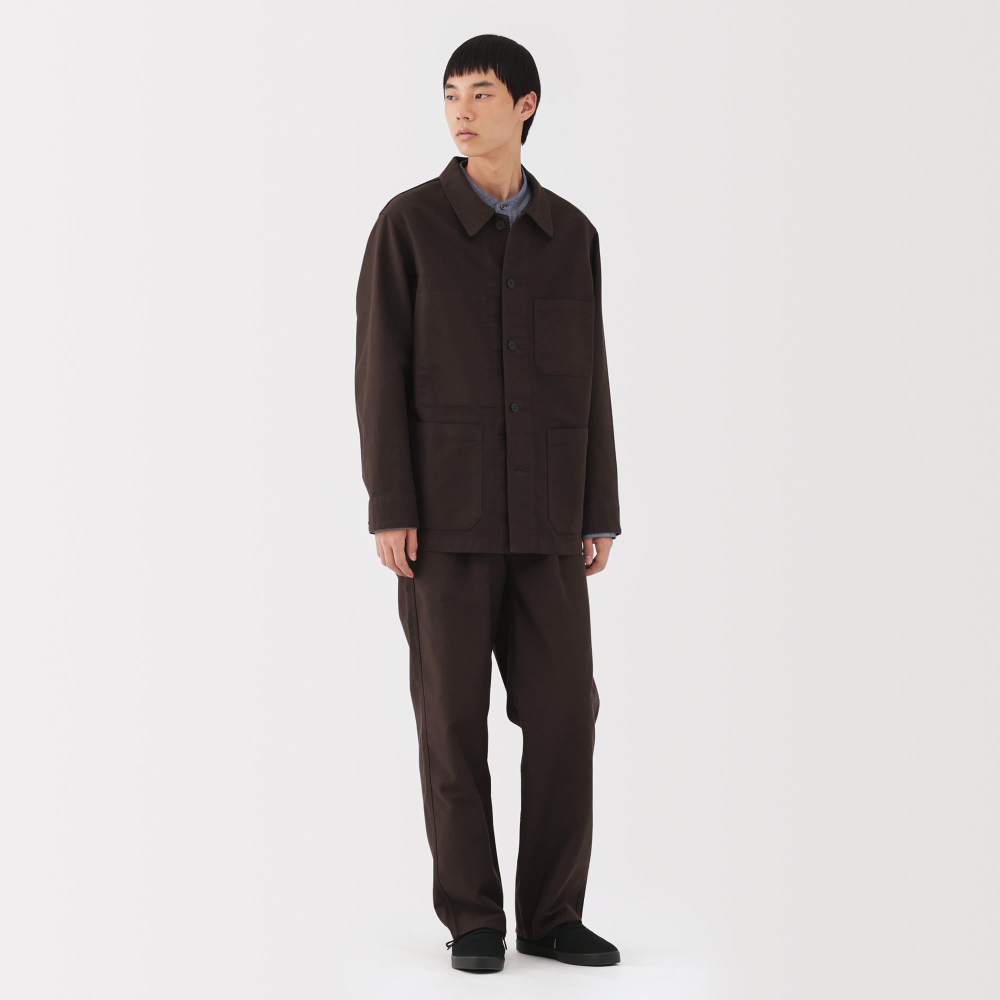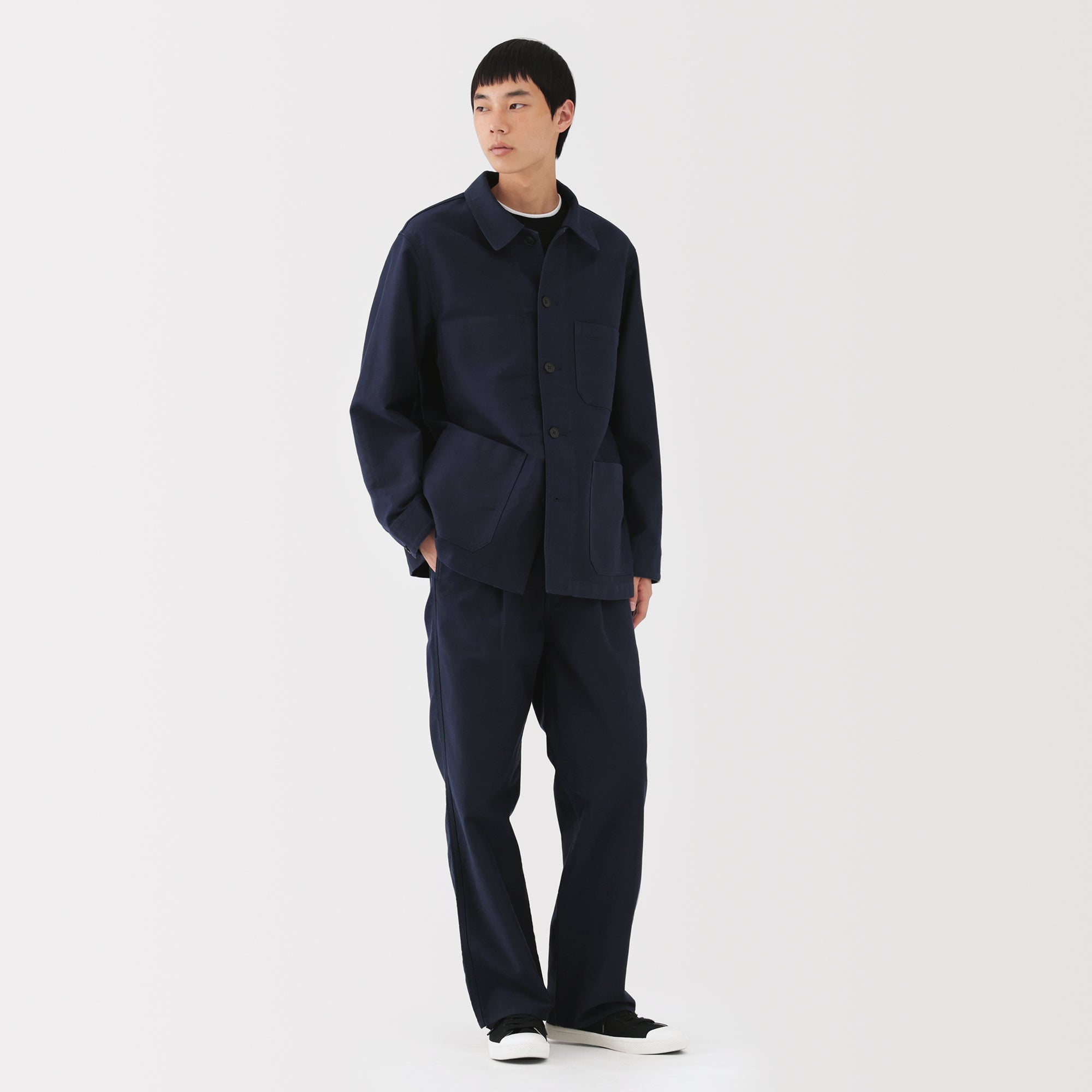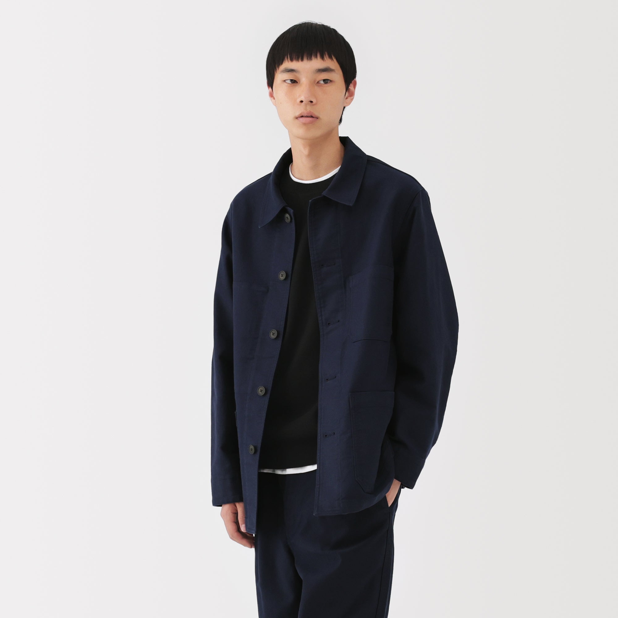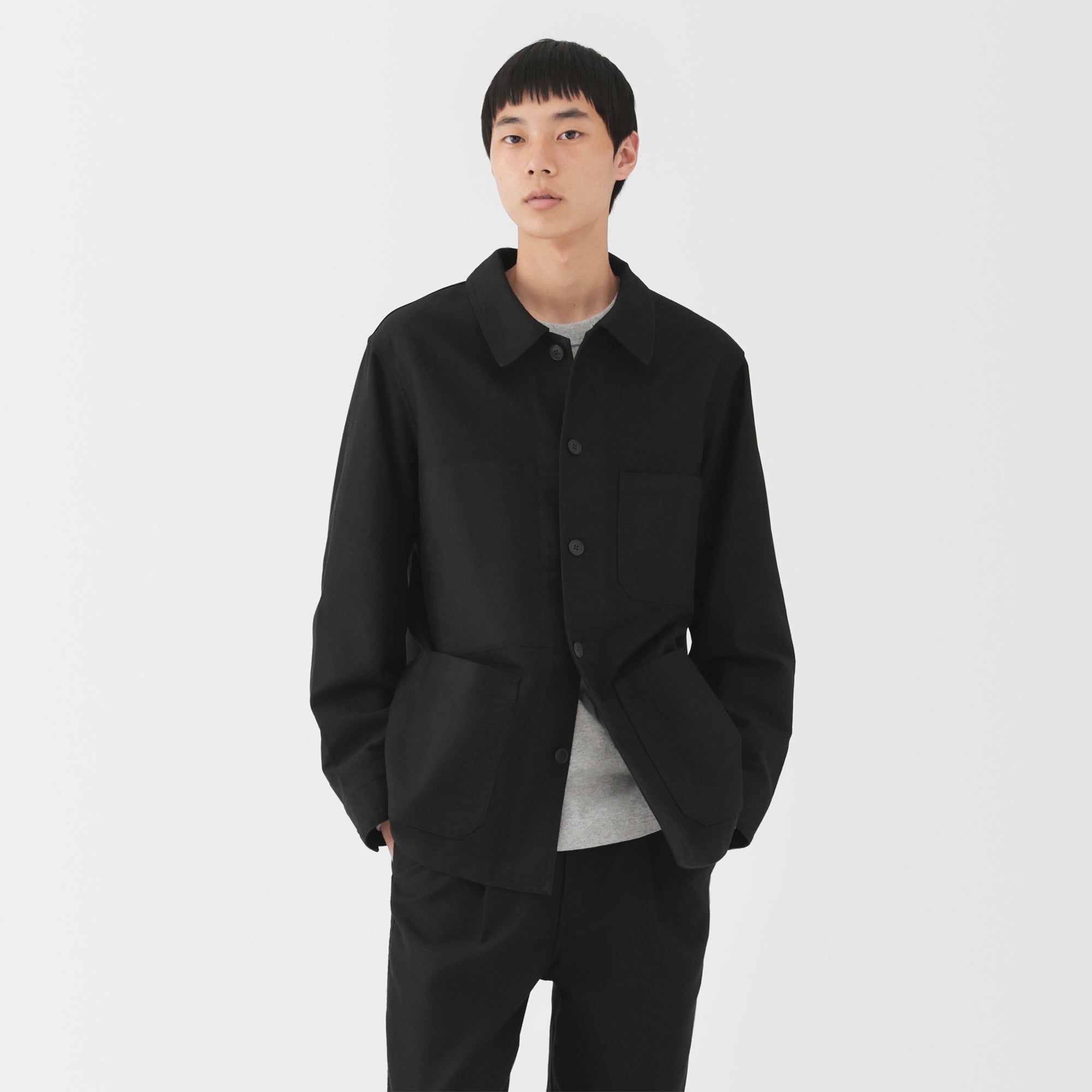 A French workwear-style jacket with a loose silhouette that is perfect for everyday wear. featuring a natural. lightweight blend of kapok and organic cotton for a comfortable fit. The soft. suede-like texture of moleskin brings a refined look to any outfit while also keeping you warm. The more it is worn. the more it softens and conforms to your body. developing a unique texture that you can enjoy over time.