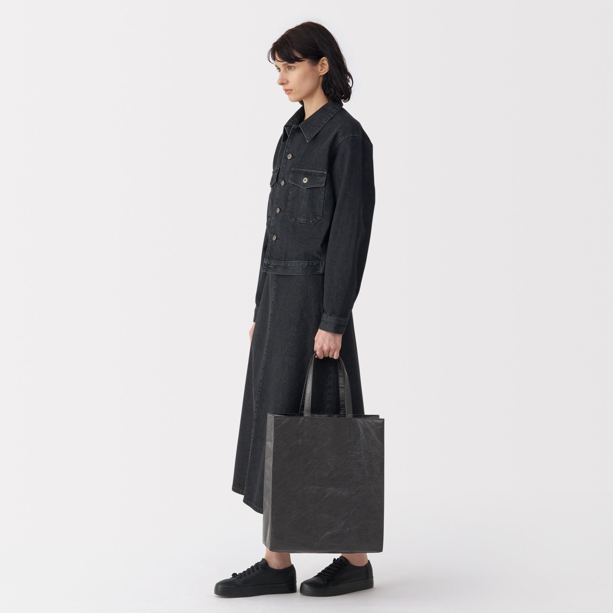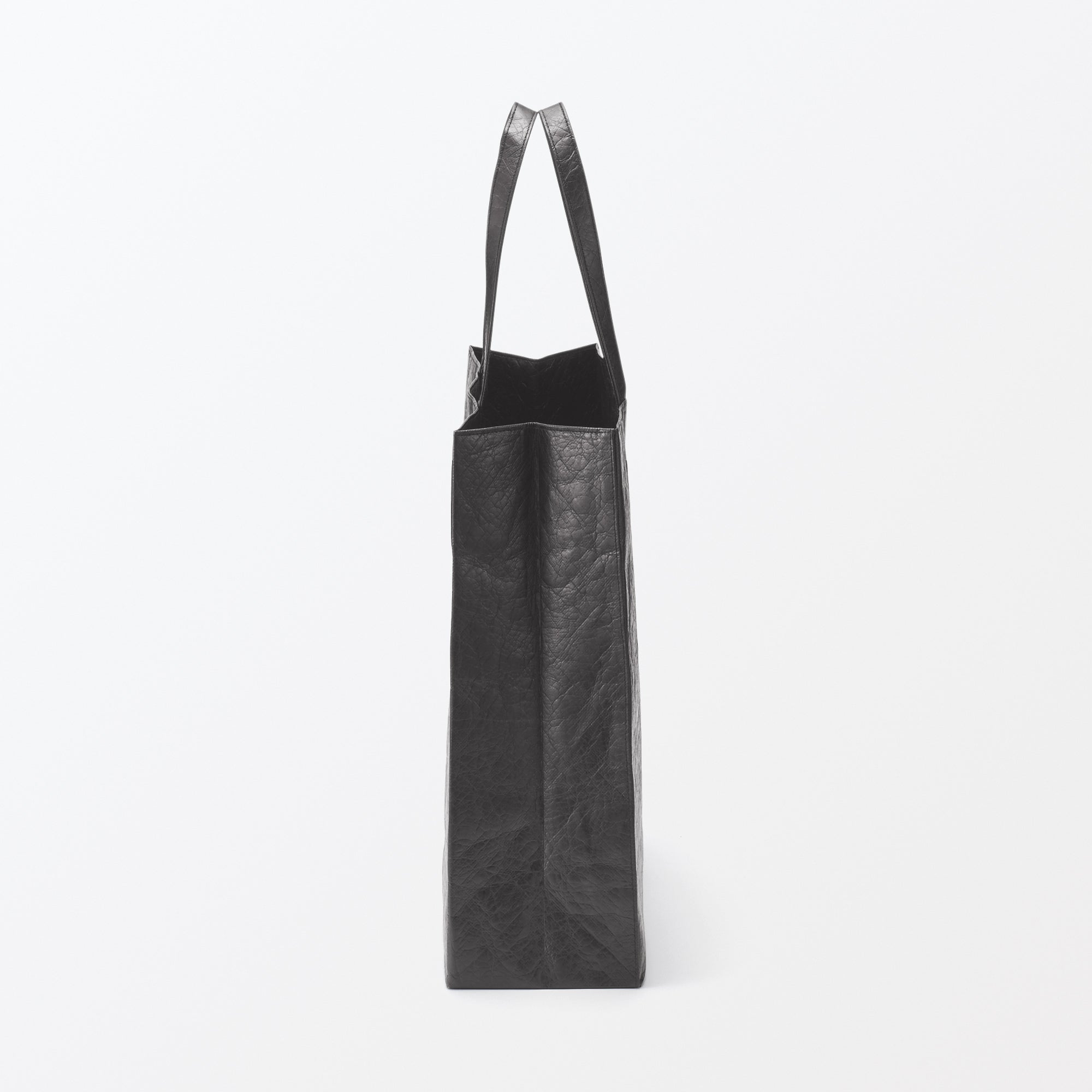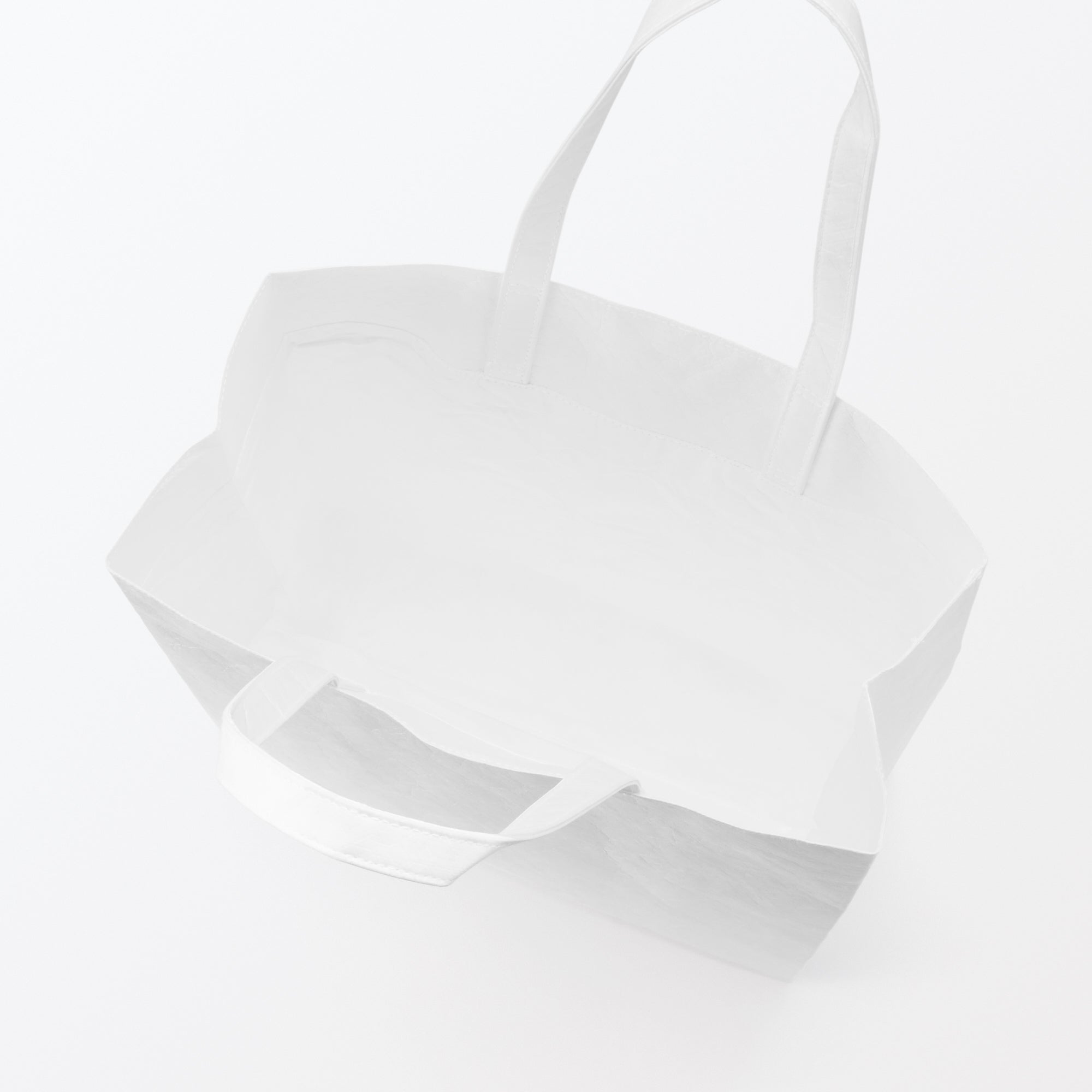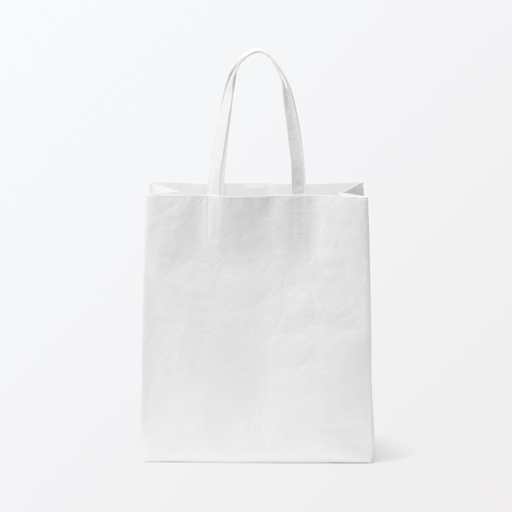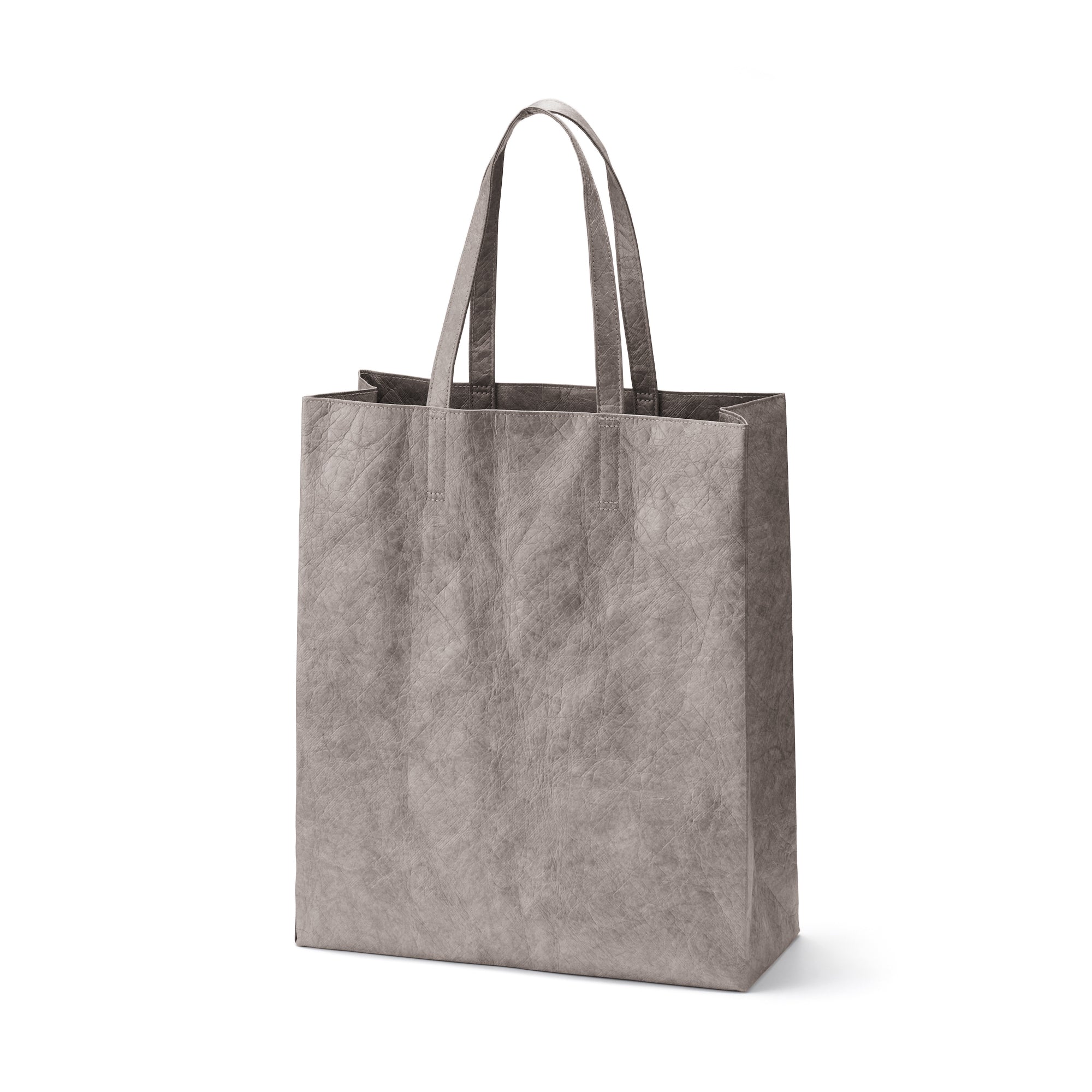 This tote bag is made using a high density non woven polyethylene material with a texture similar to Japanese Washi paper. which develops moderate amount of wrinkles with repeated use.