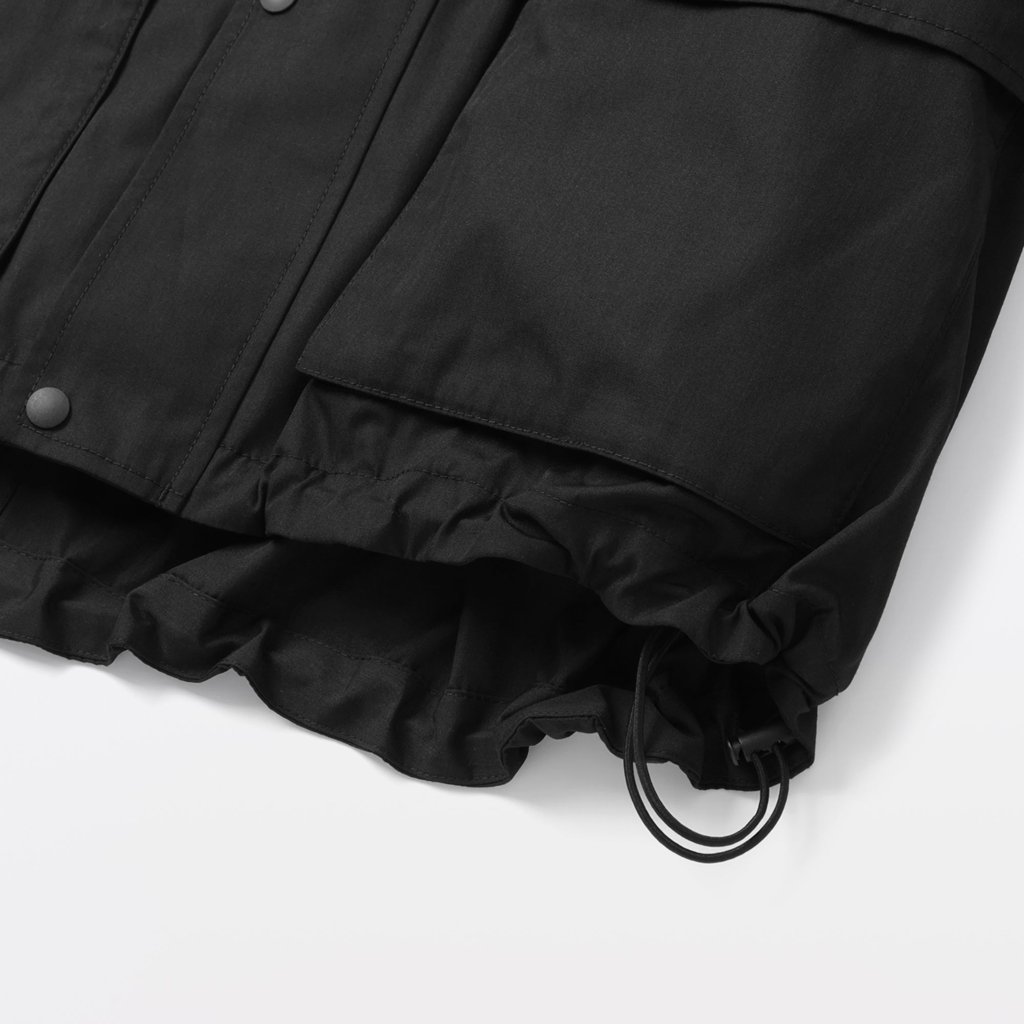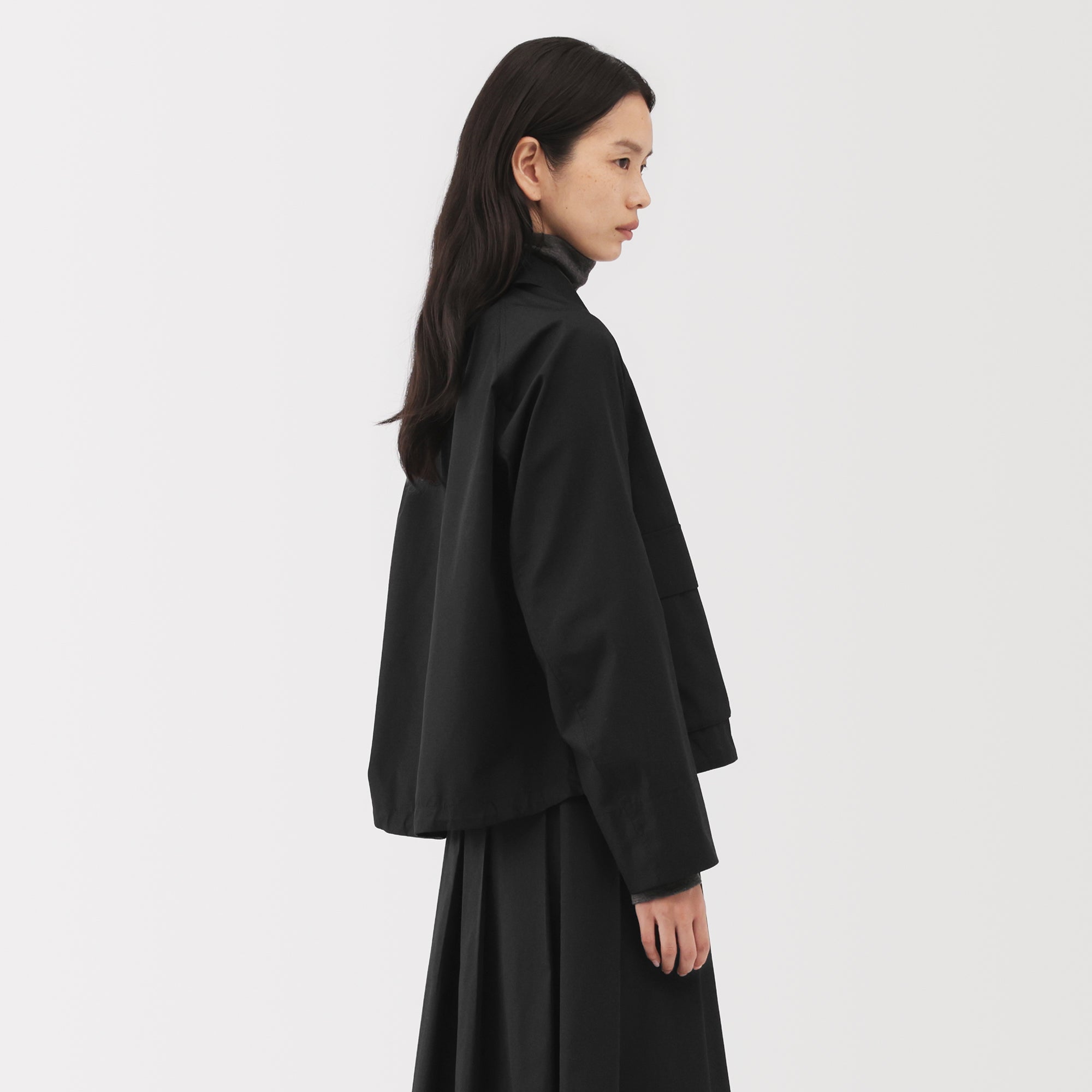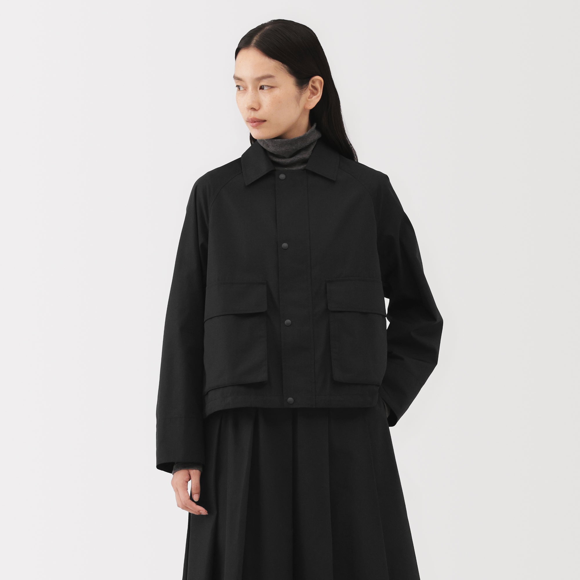 Using lab coat fabric made from recycled polyester and cotton. this women’s blouson dries quickly and has a sturdy feel. The design prioritizes ease of movement with raglan sleeves. The hem features a drawstring closure. allowing you to adjust the silhouette for a variety of styles.