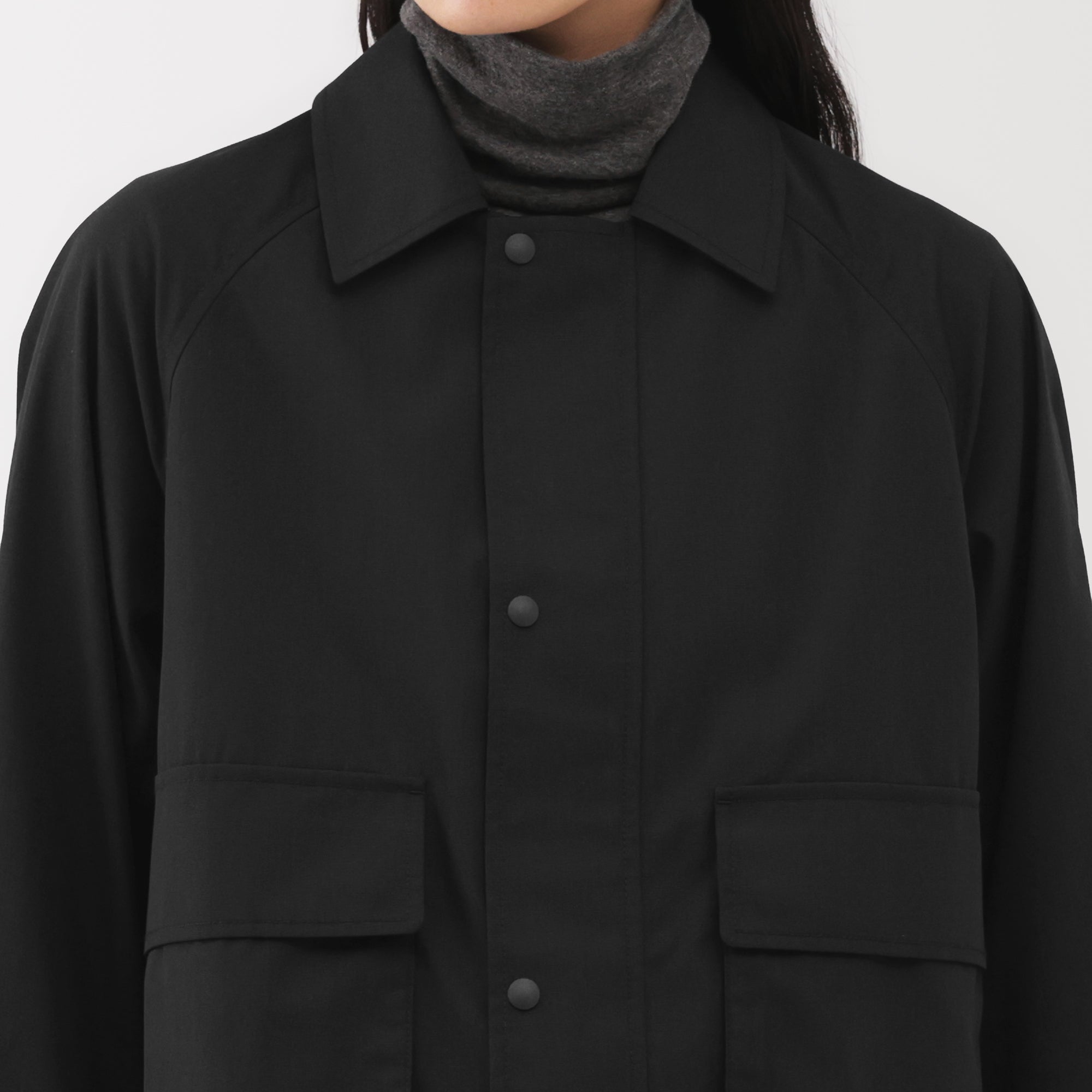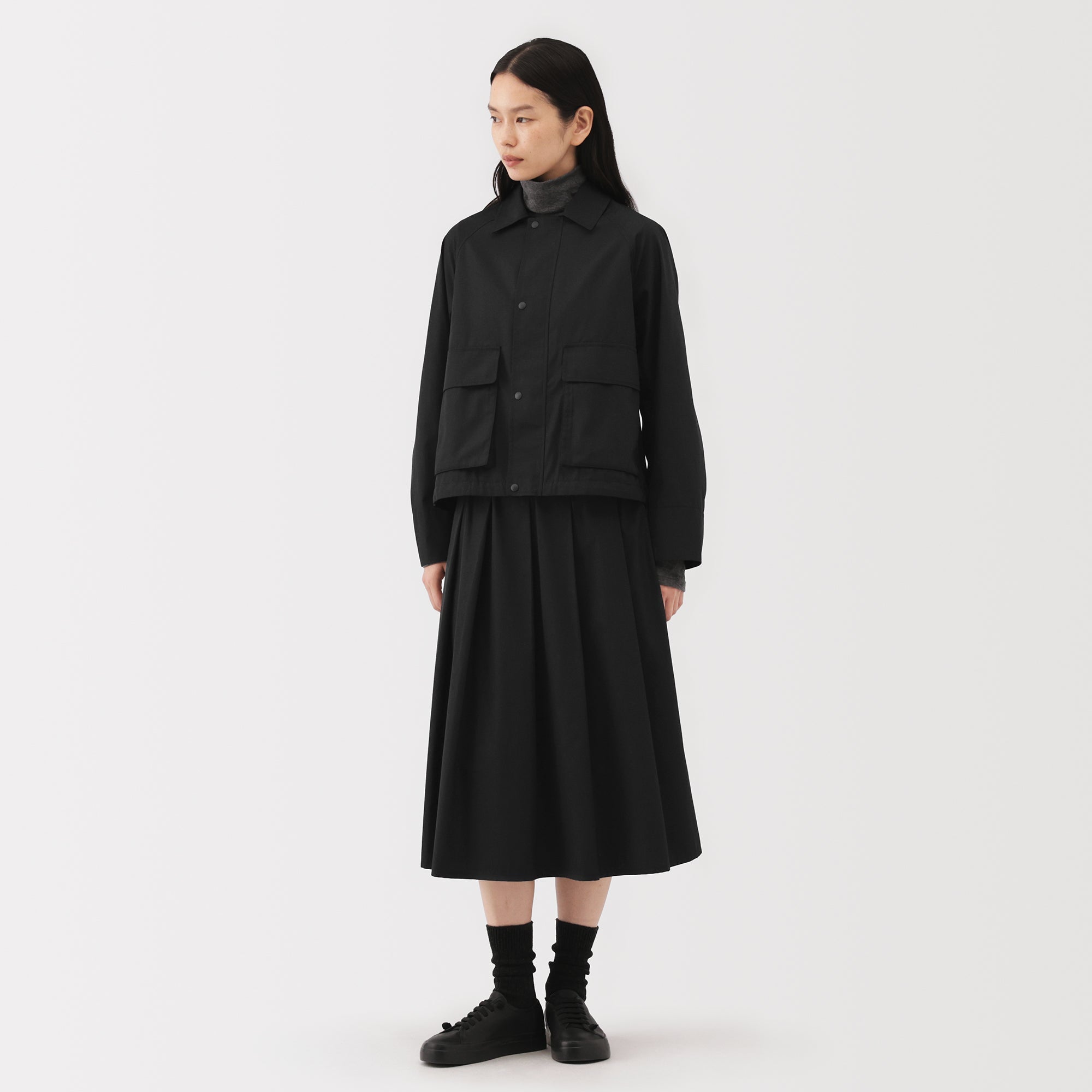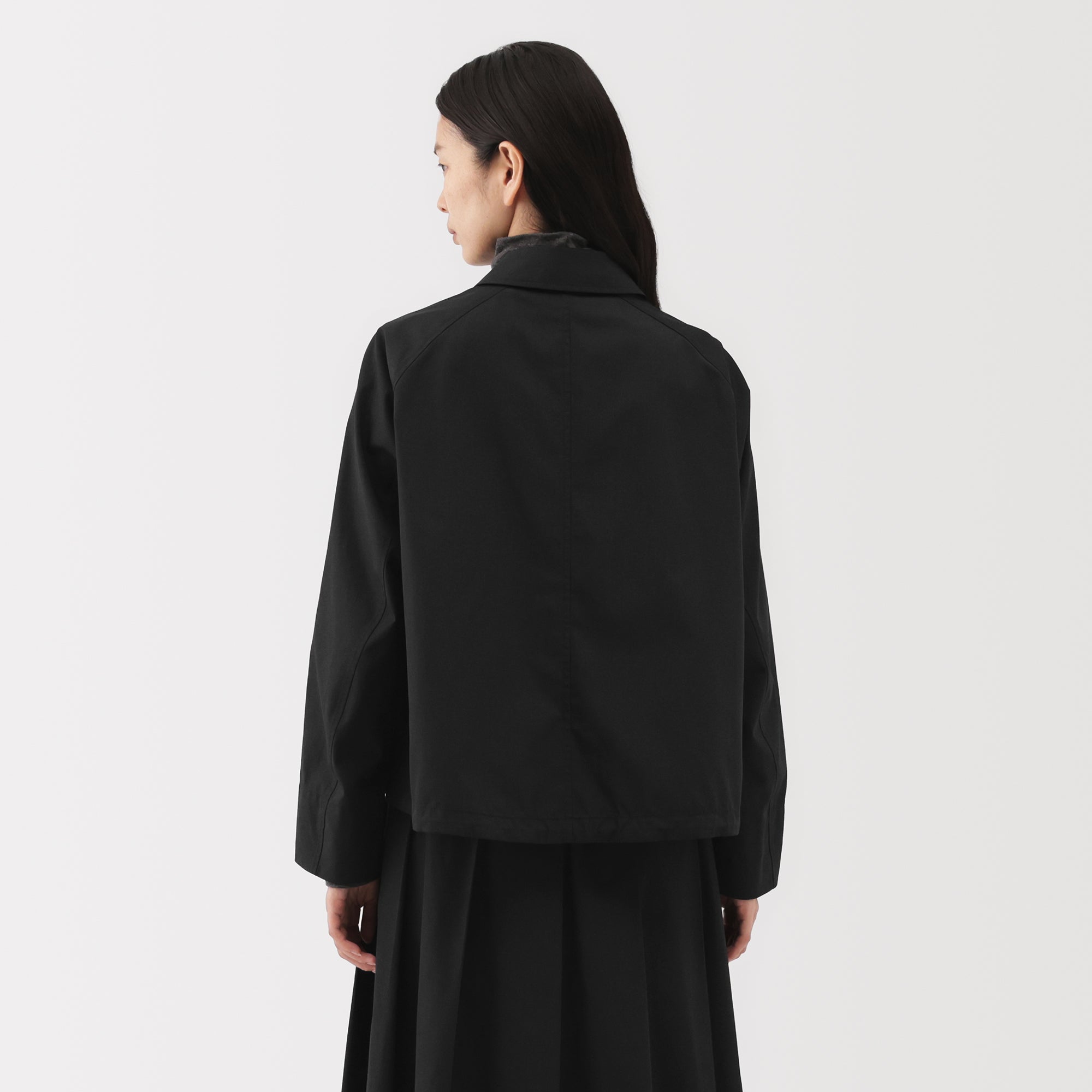 Using lab coat fabric made from recycled polyester and cotton. this women’s blouson dries quickly and has a sturdy feel. The design prioritizes ease of movement with raglan sleeves. The hem features a drawstring closure. allowing you to adjust the silhouette for a variety of styles.