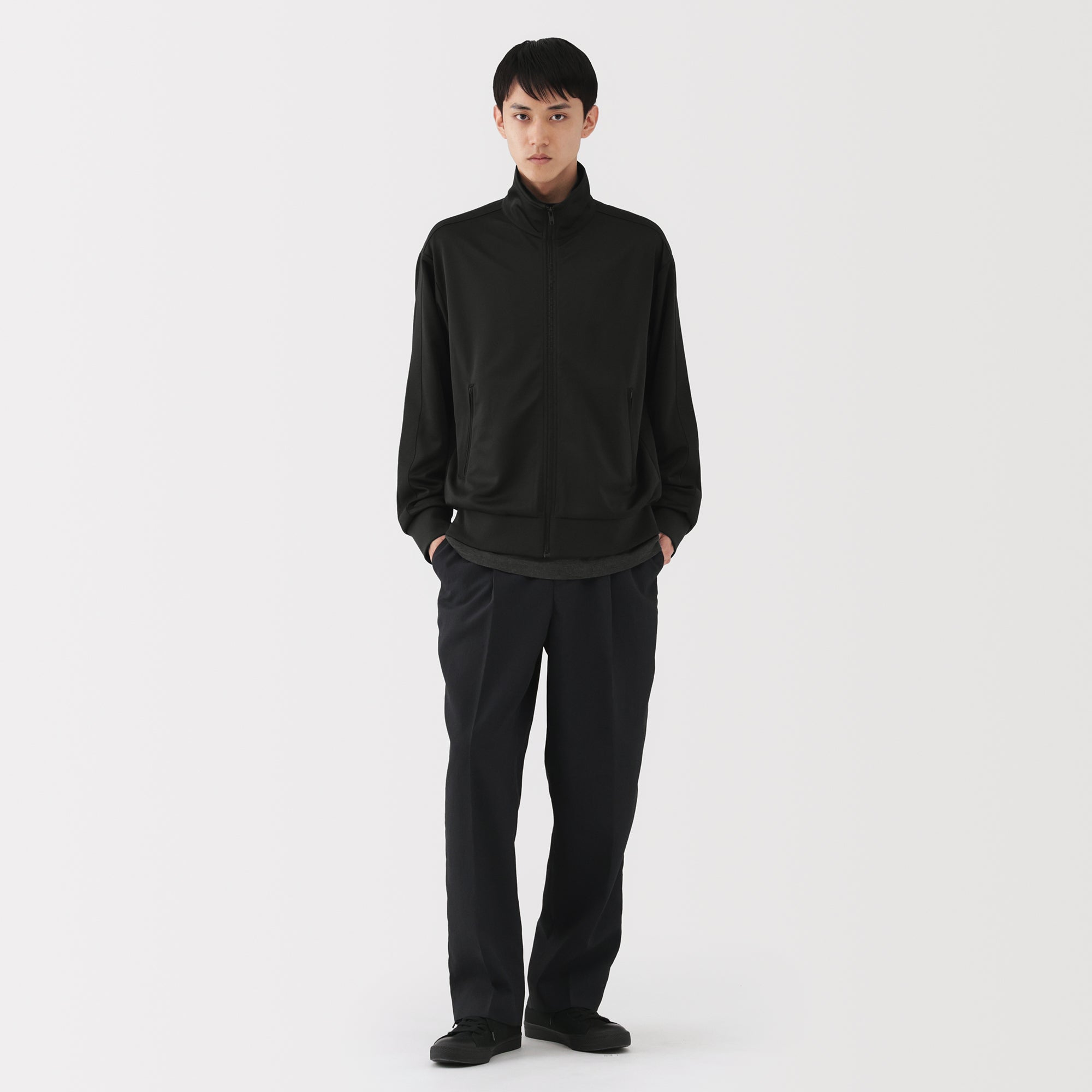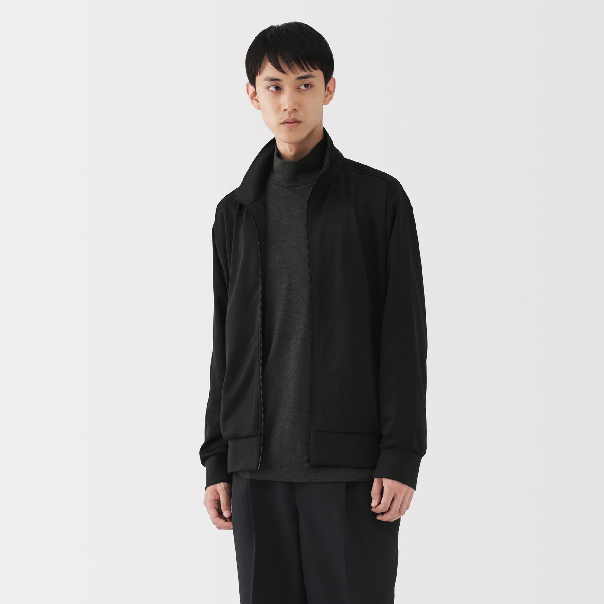 A men’s track jacket made from smooth recycled polyester jersey fabric that is easy to move in. perfect for training and exercising. It has a sleek silhouette and secure zip-up pockets.