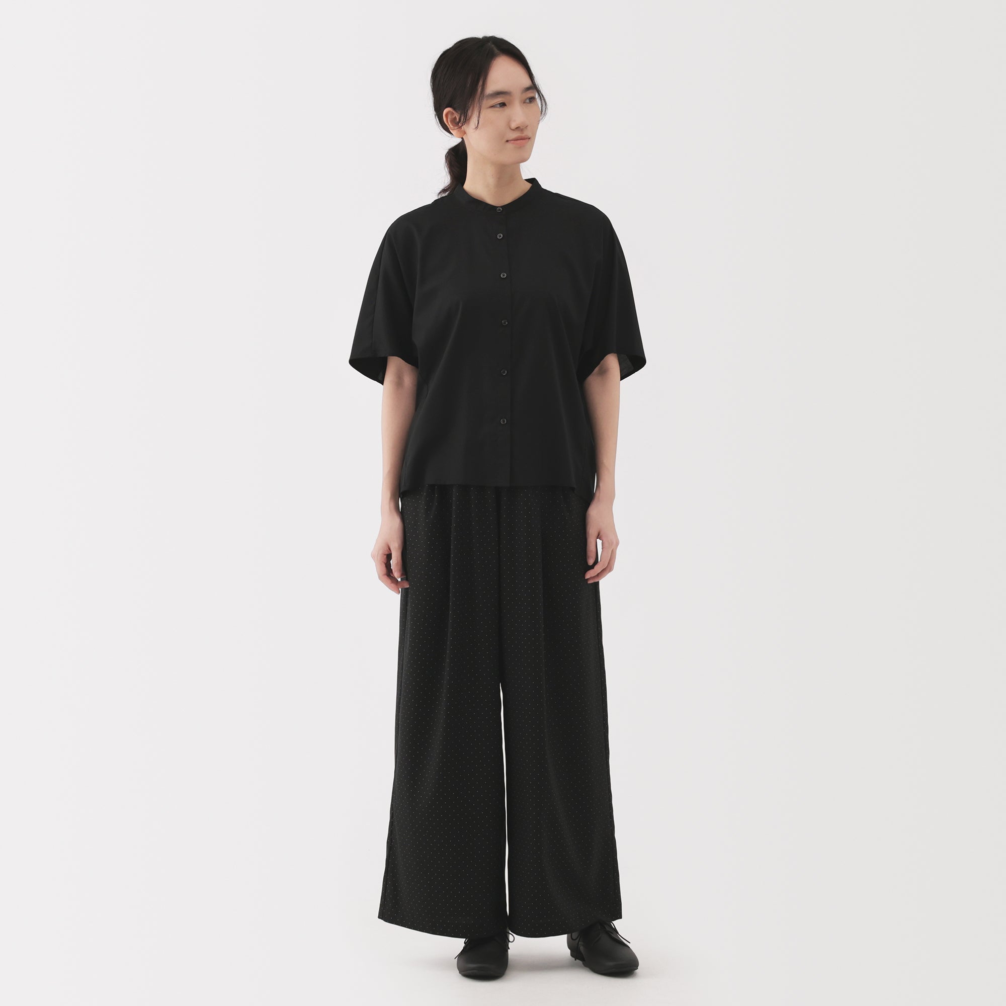 The fabric is made with a blend of recycled polyester and lyocell yarn. making it wrinkle-resistant after washing. The surface of the lyocell fabric has a cooling feel so it is suitable for everyday wear. even during the hot summer months.