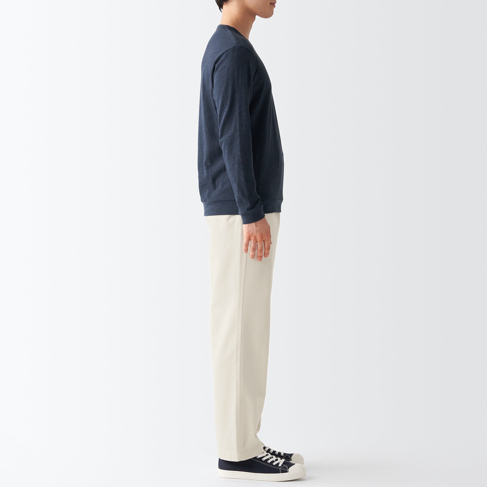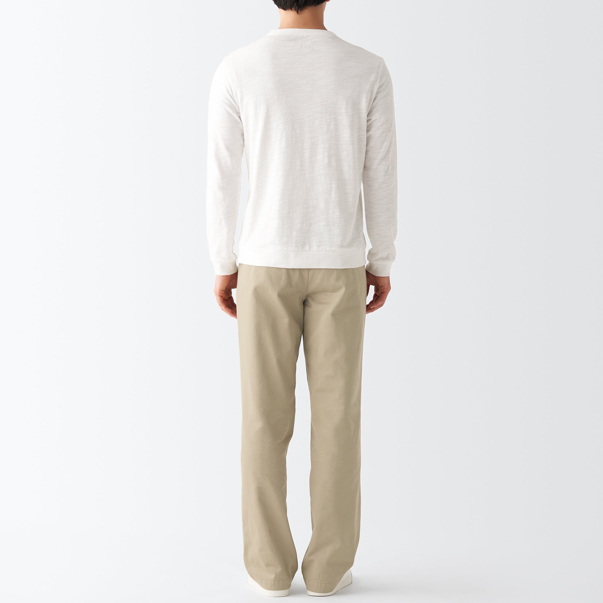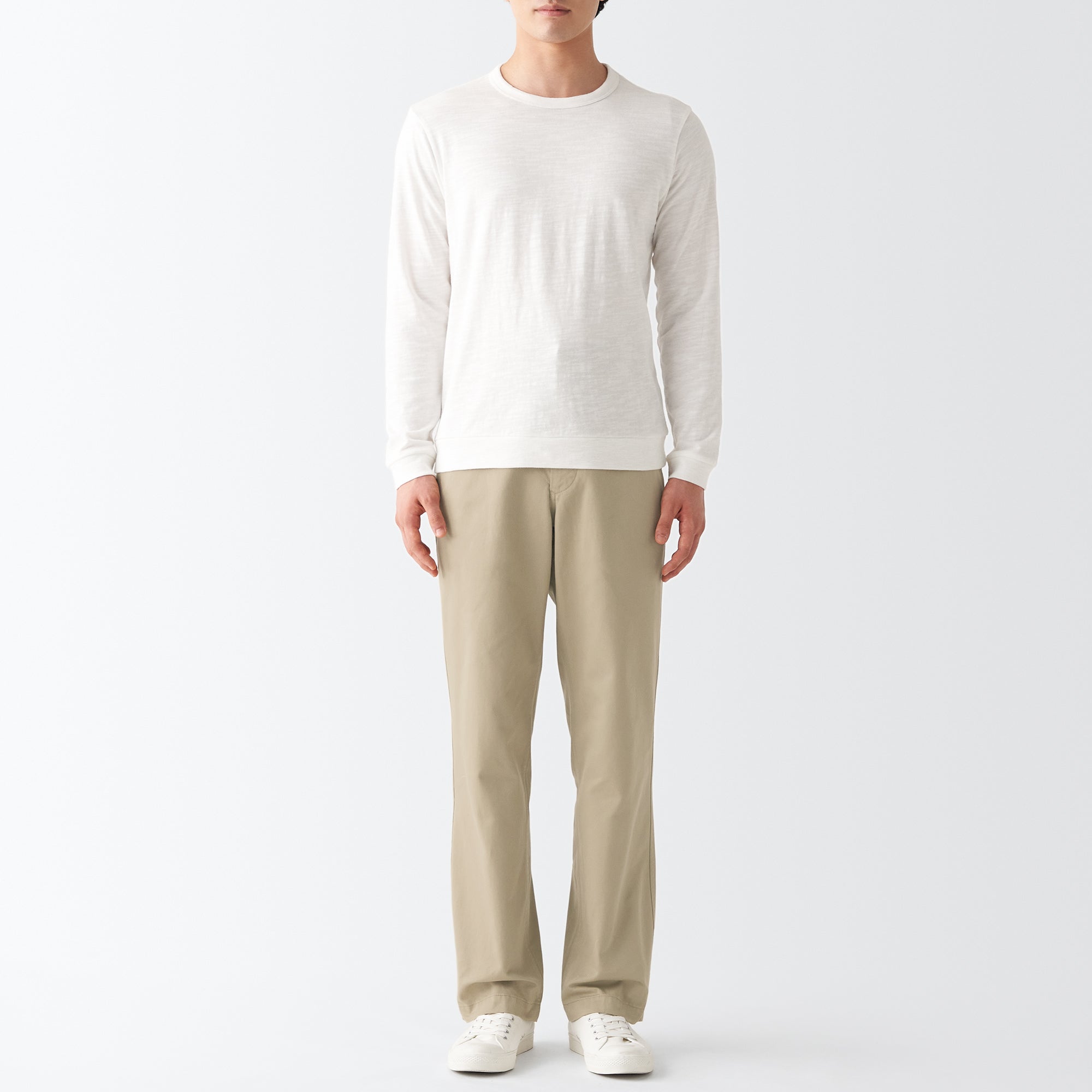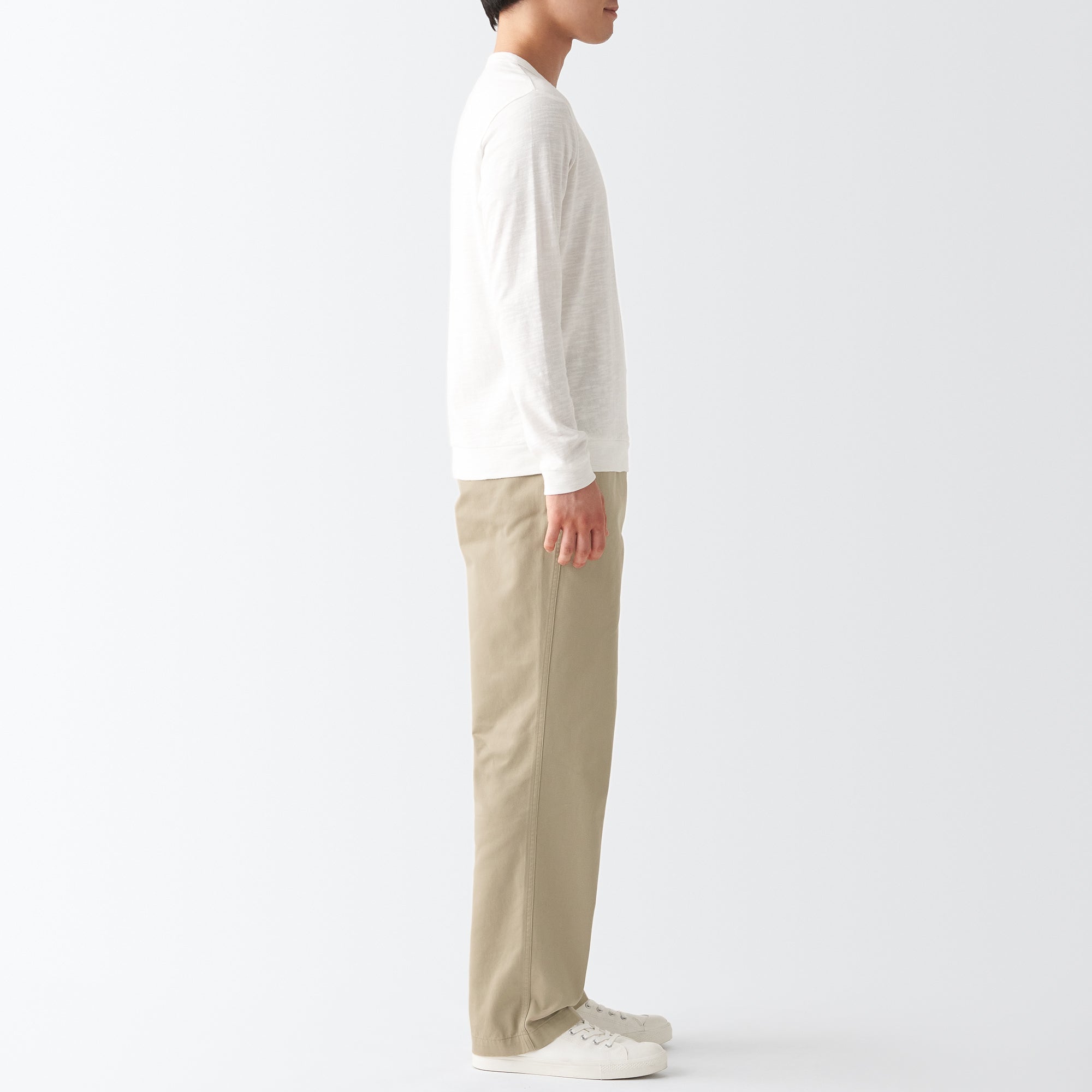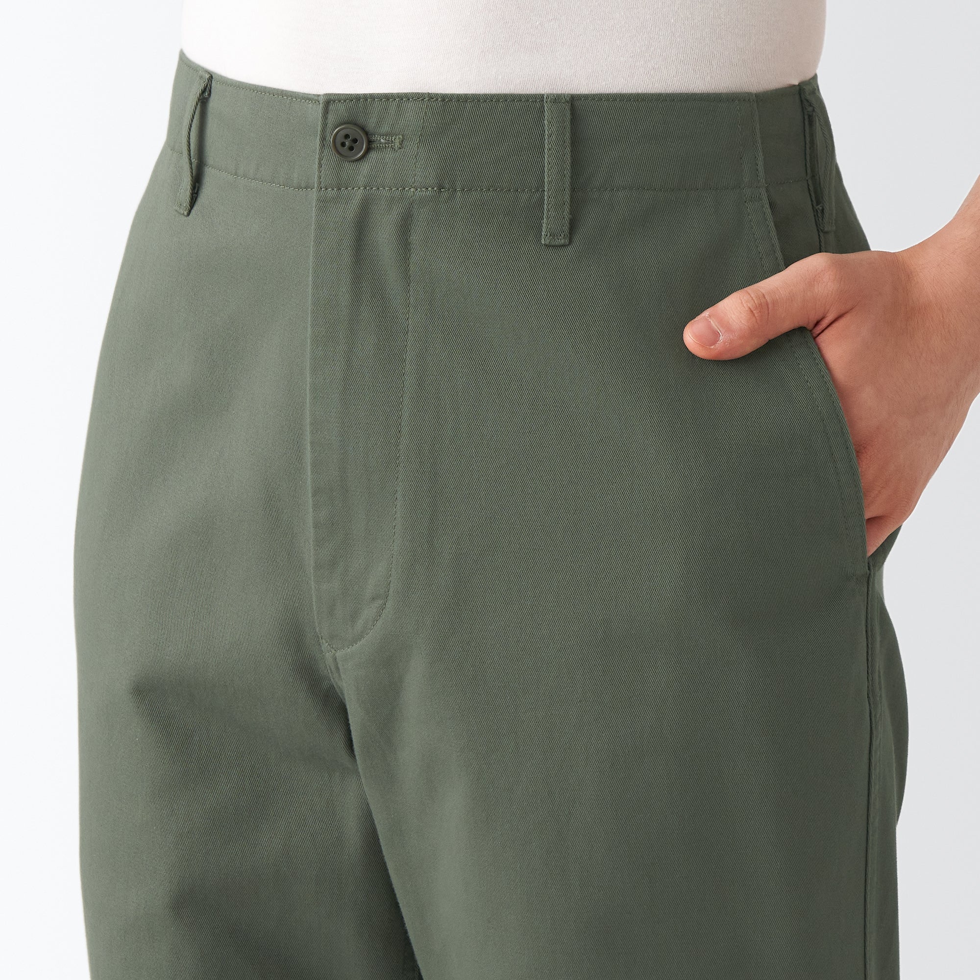 Pants made from 100% Cotton. woven into a durable chino fabric. Made with organic cotton. Regular fit. with of 82cm/32 inseam.