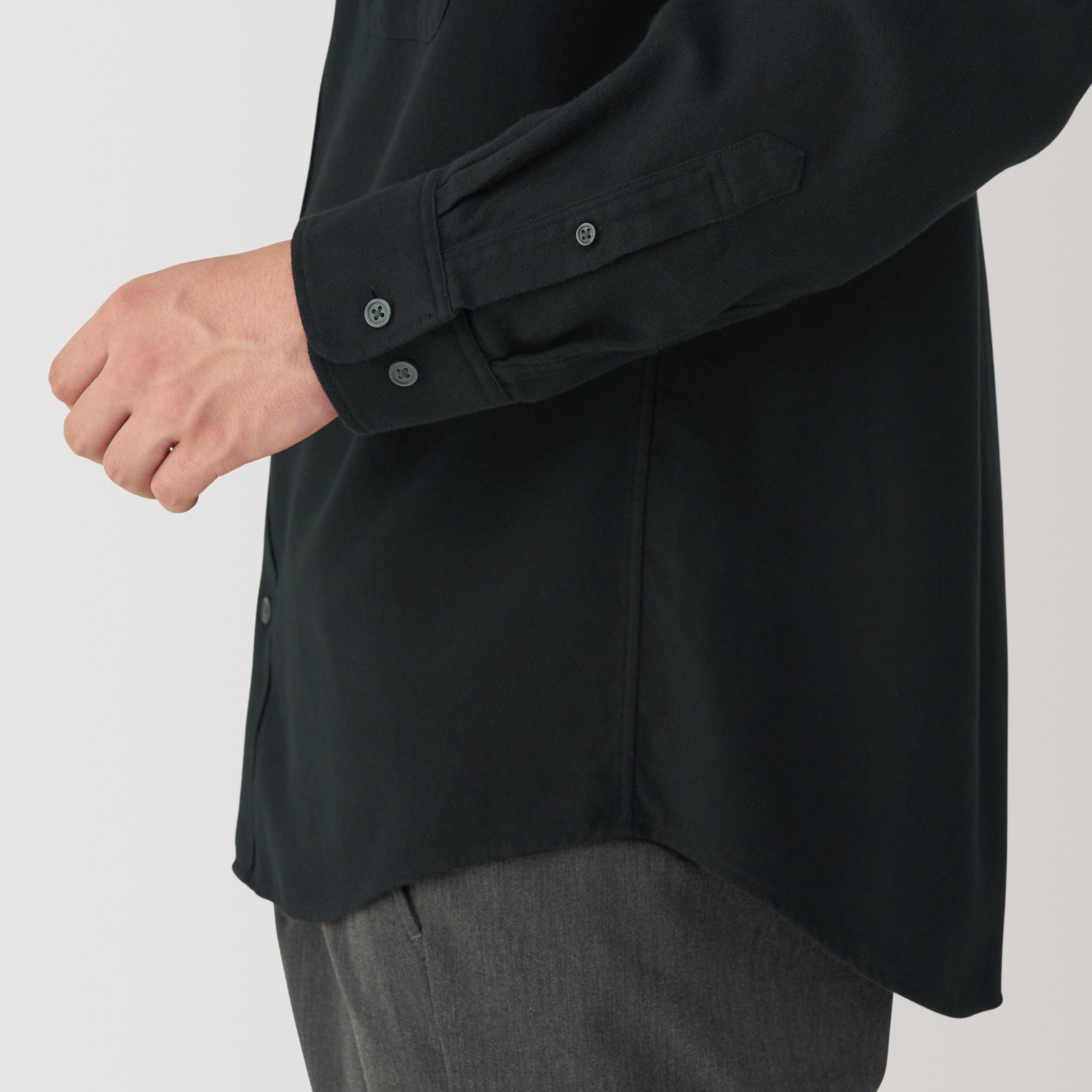 A flannel shirt that you’ll want to wear when the morning and evening air feels cool. The special brushing process gives it a unique texture so it can become a useful daily fit for you during the fall and winter months. Regular fit.