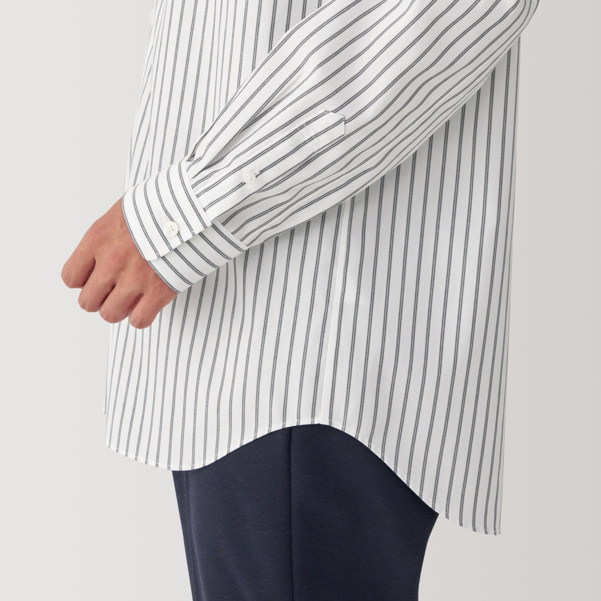 A regular collar business shirt made of 100% cotton that doesn’t need ironing. It has been treated to stay wrinkle-free and has special tape in the seams to reduce wrinkles. The collar height is ideal for wearing with a tie. and the length is perfect for tucking in.