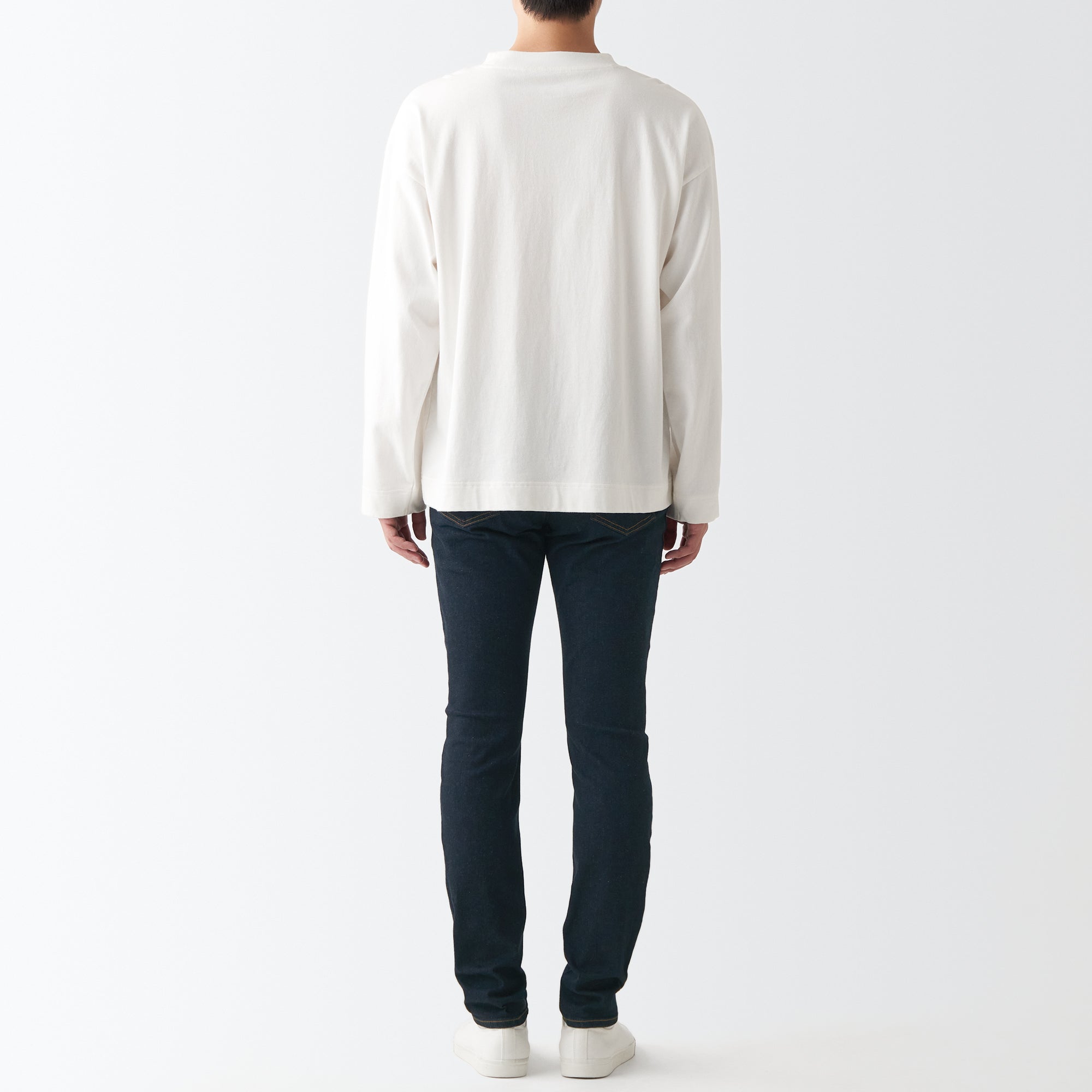 The Skinny Fit perfectly follows the shape line of your legs by using high elastic fabric. Designed with a thinner hem. and focusing on the silhouette. this is a timeless denim for everyday wear. Available in 2 colors. dark navy and black. that are easy to mix and match.