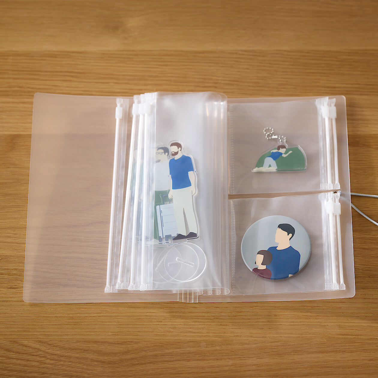Show off your collection with this 8-pocket file with a slider. so the items in the pockets do not fall out. Great for keychains. pins. badges. stickers. acrylic standees or photo cards. The strap can be secured horizontally or vertically on the holder.