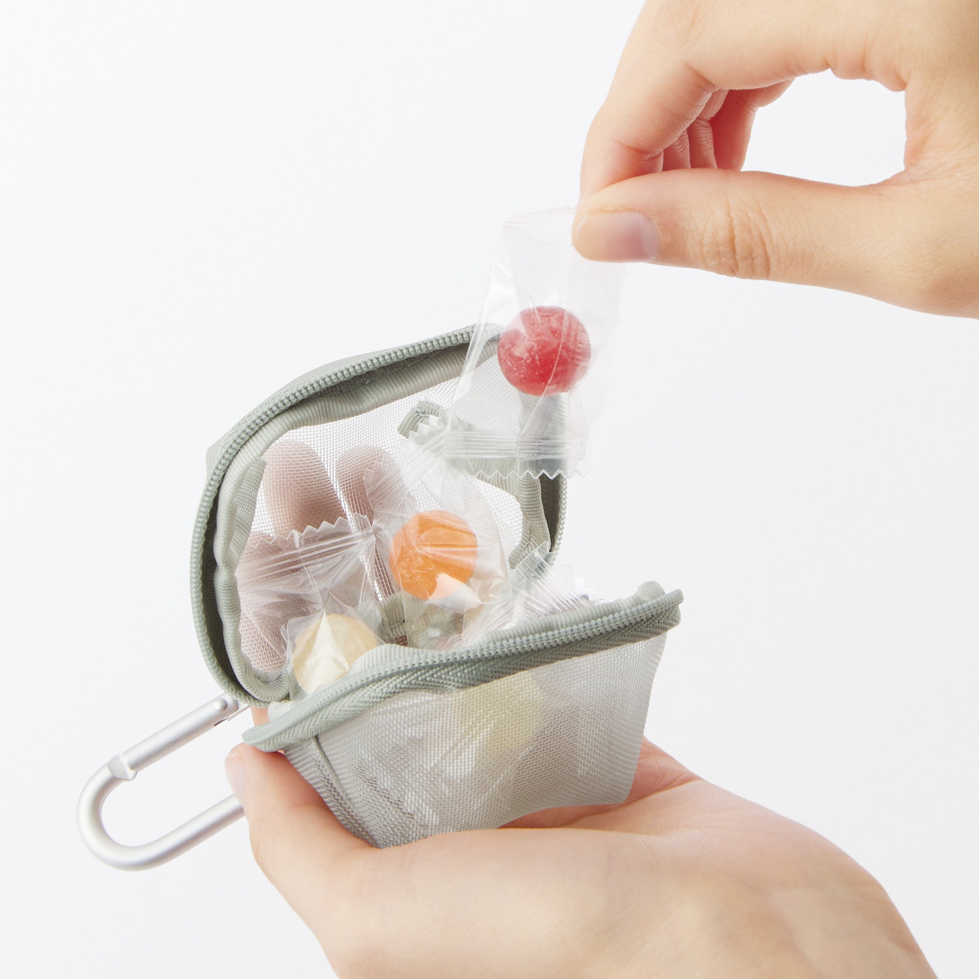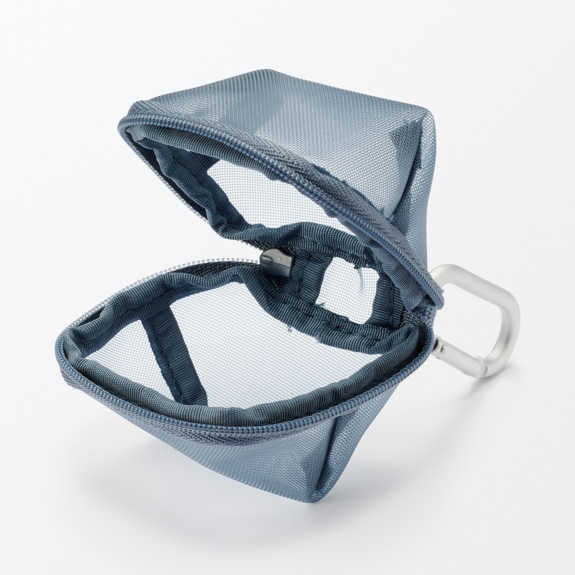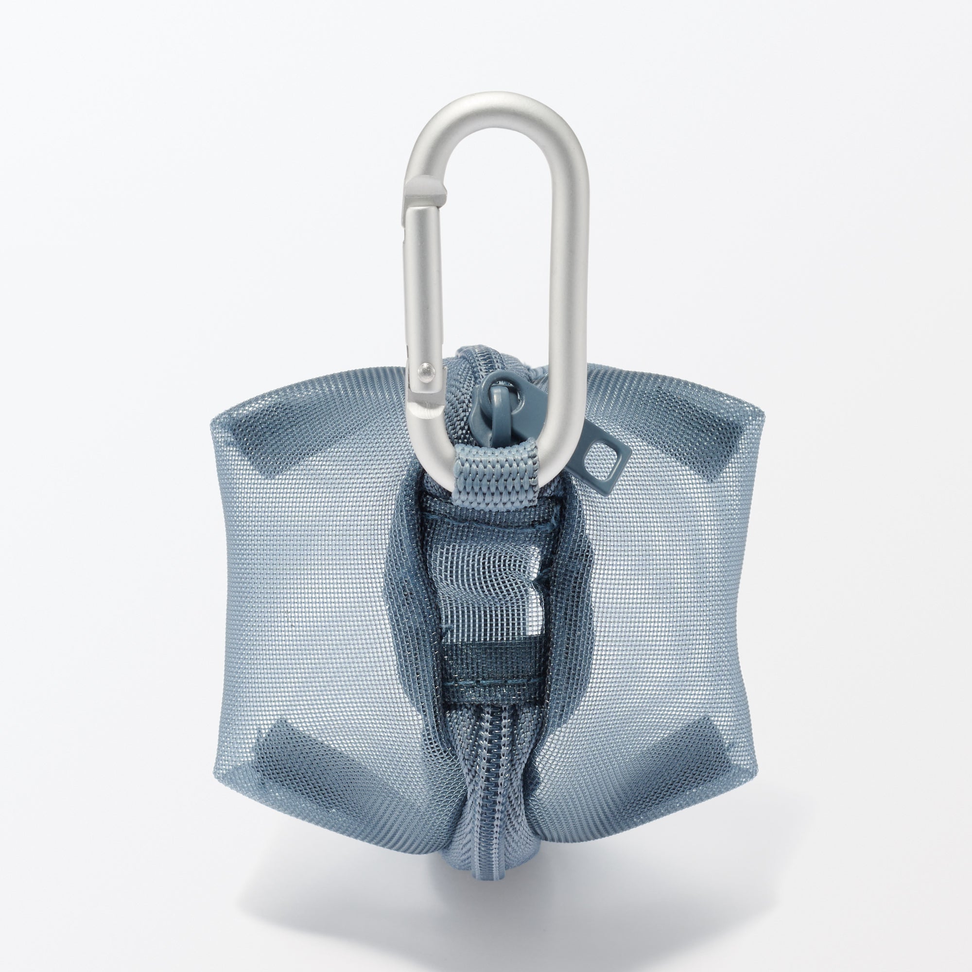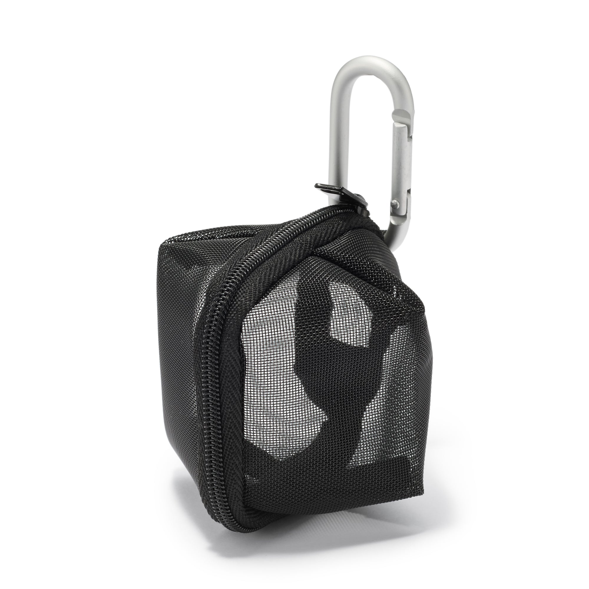 This small 3D zippered pouch is made of firm mesh. The included carabiner allow it to be attached to bags for quick. easy access to small items.