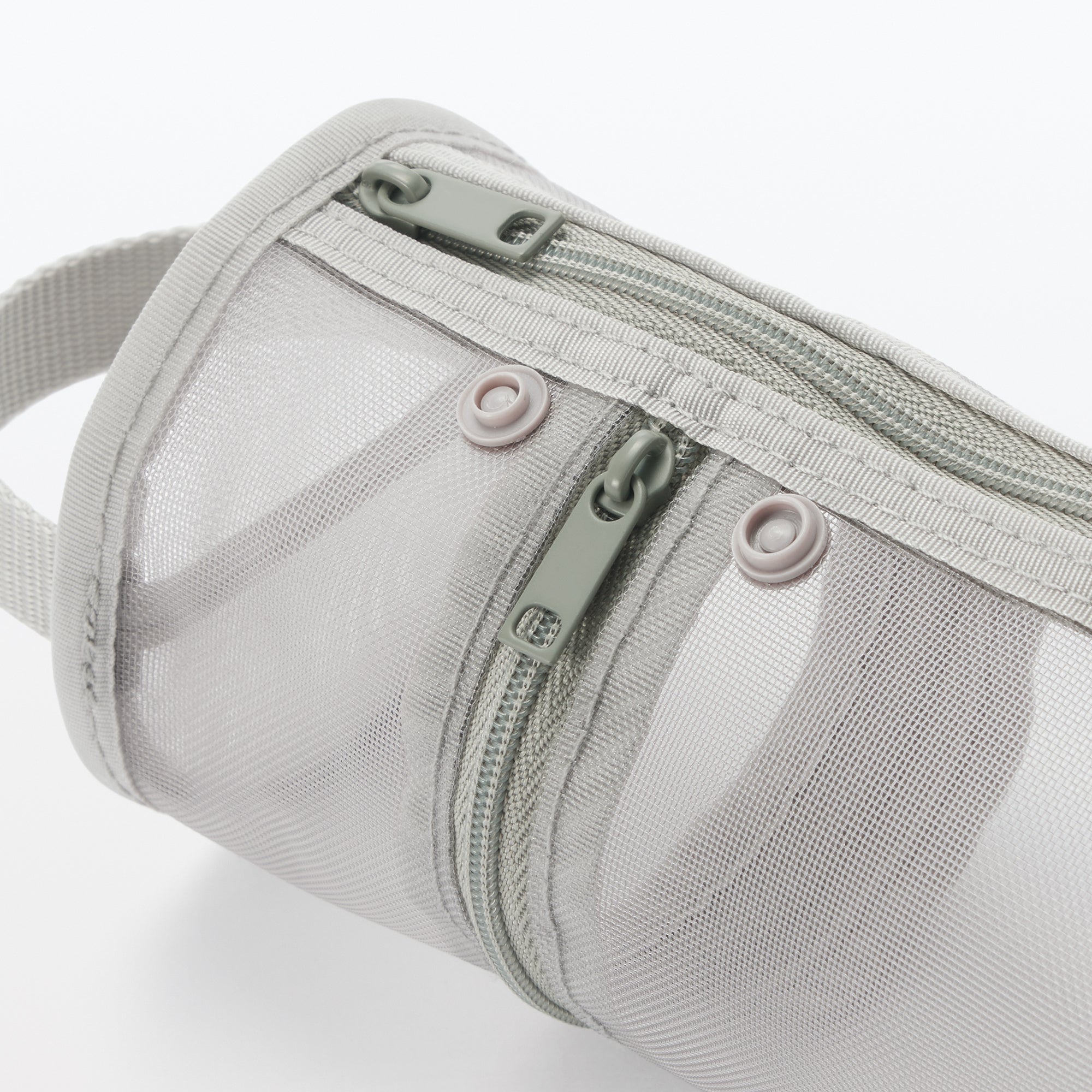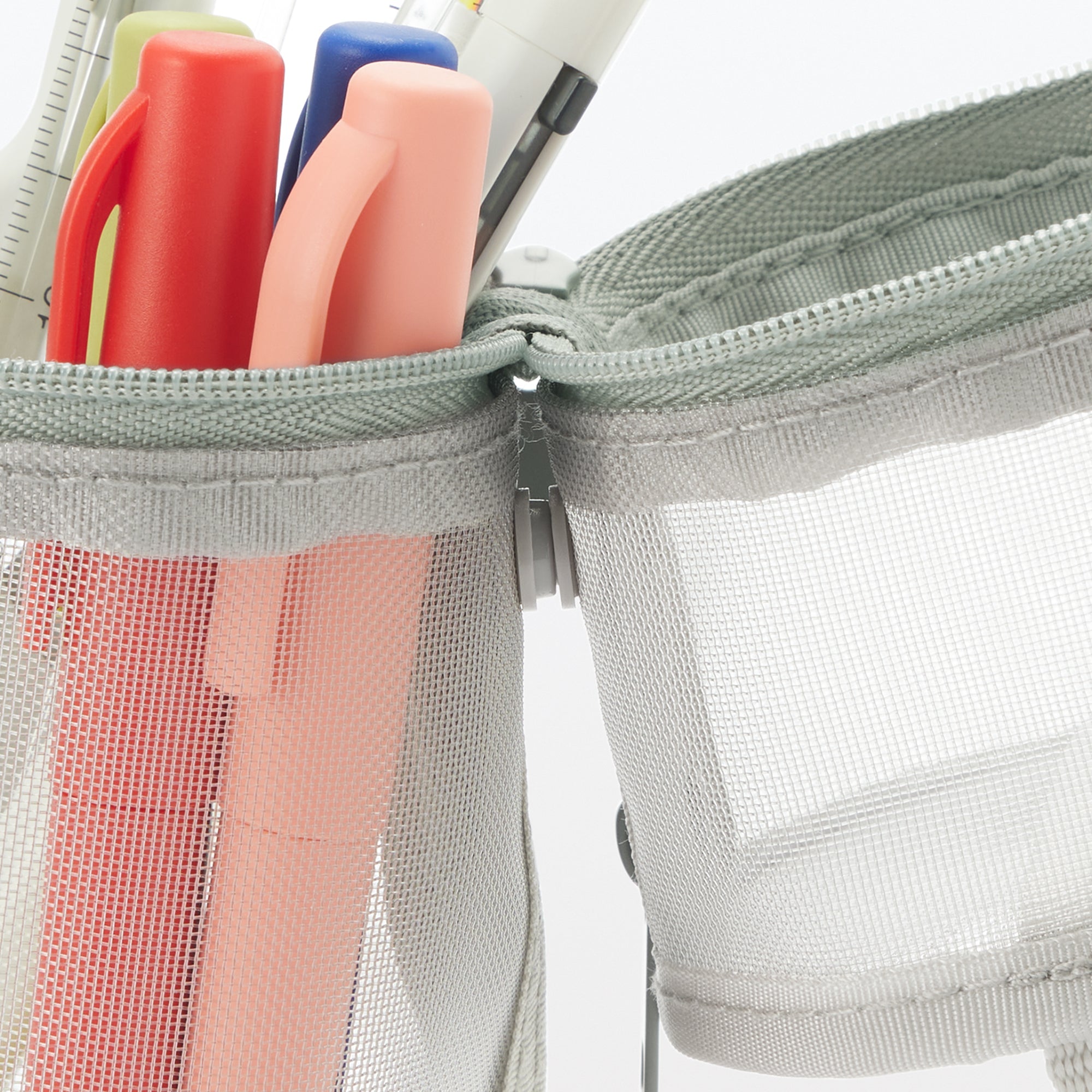 A pen case made of light and durable nylon mesh fabric. structured in a way that can open both horizontally or vertically for your convenience.
