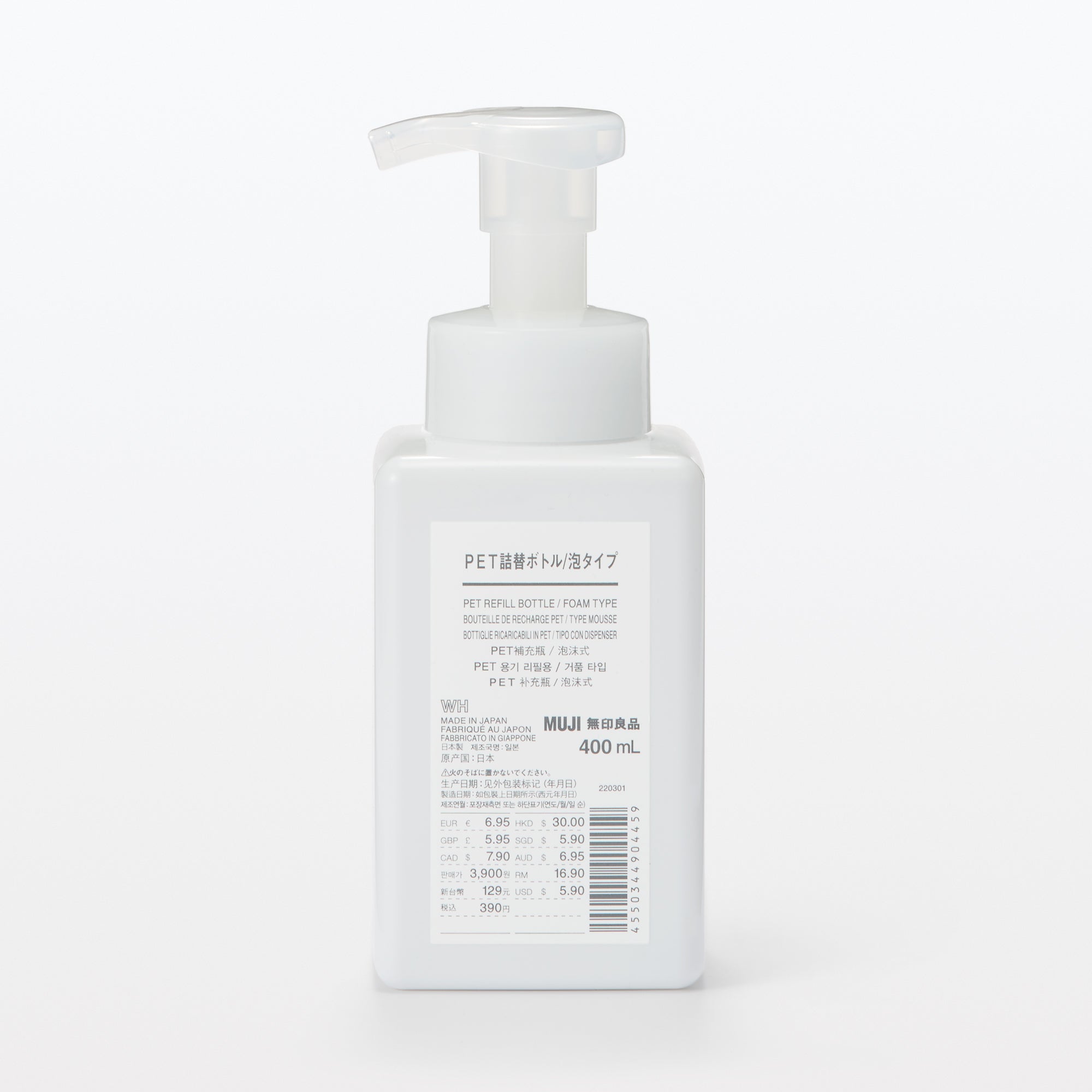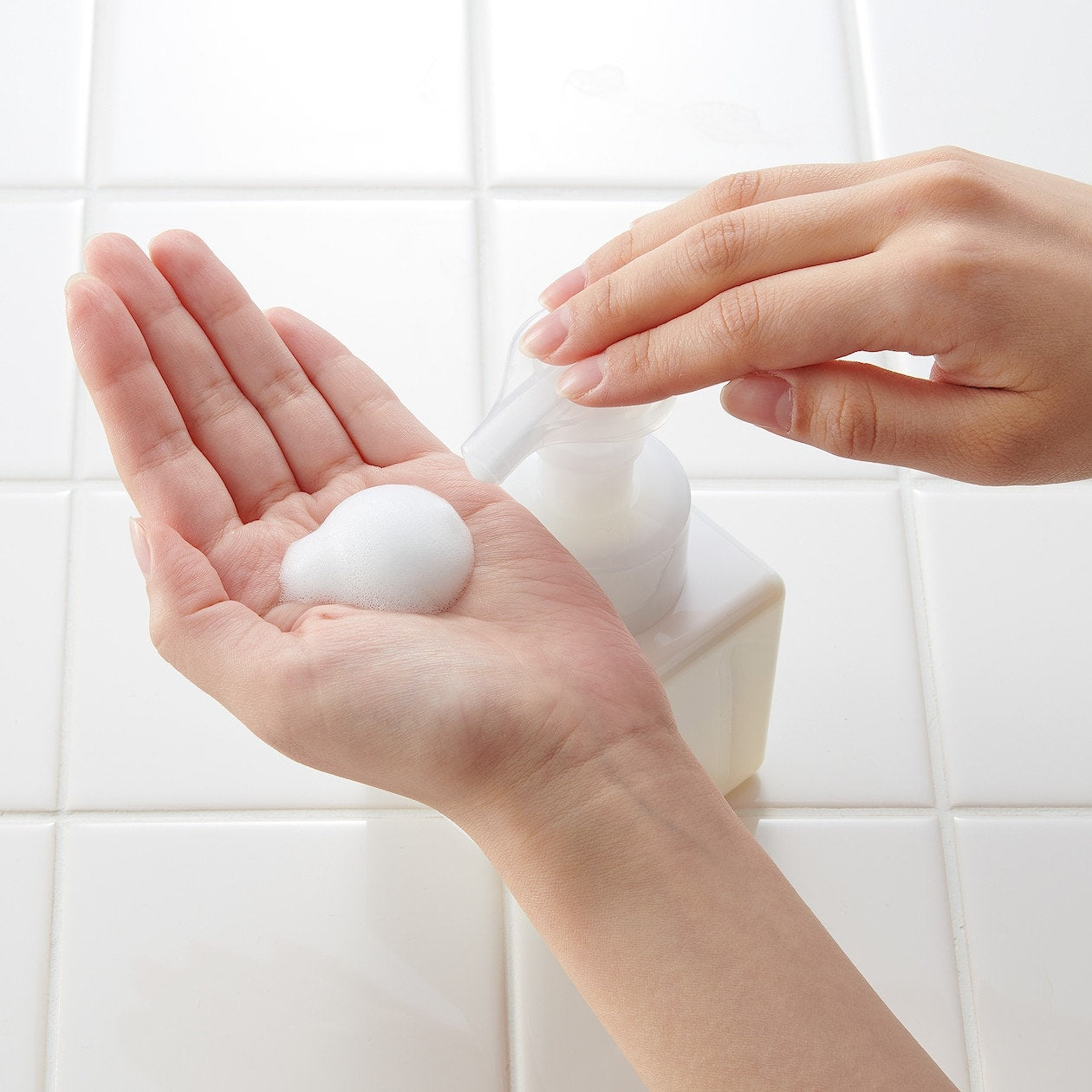 Easy-to-clean foam type dispenser with sturdy square base.