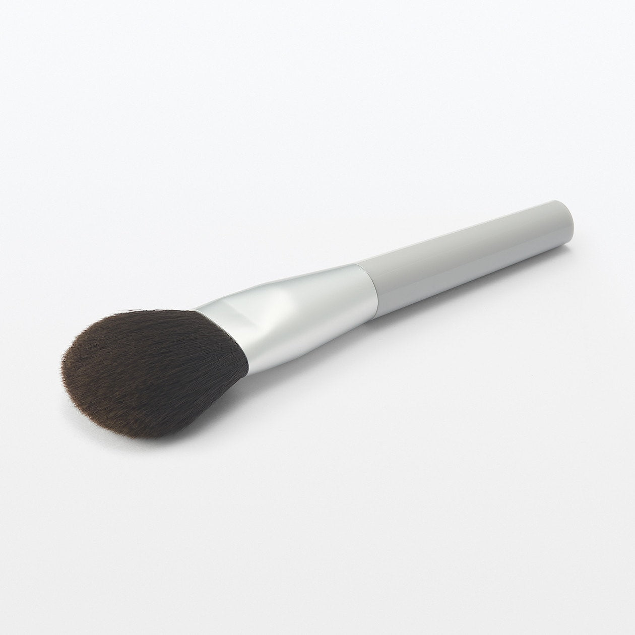 A large-size cheek brush made of polyester fiber that is soft on the skin. Perfect for applying blushes. bronzers. or for contouring.