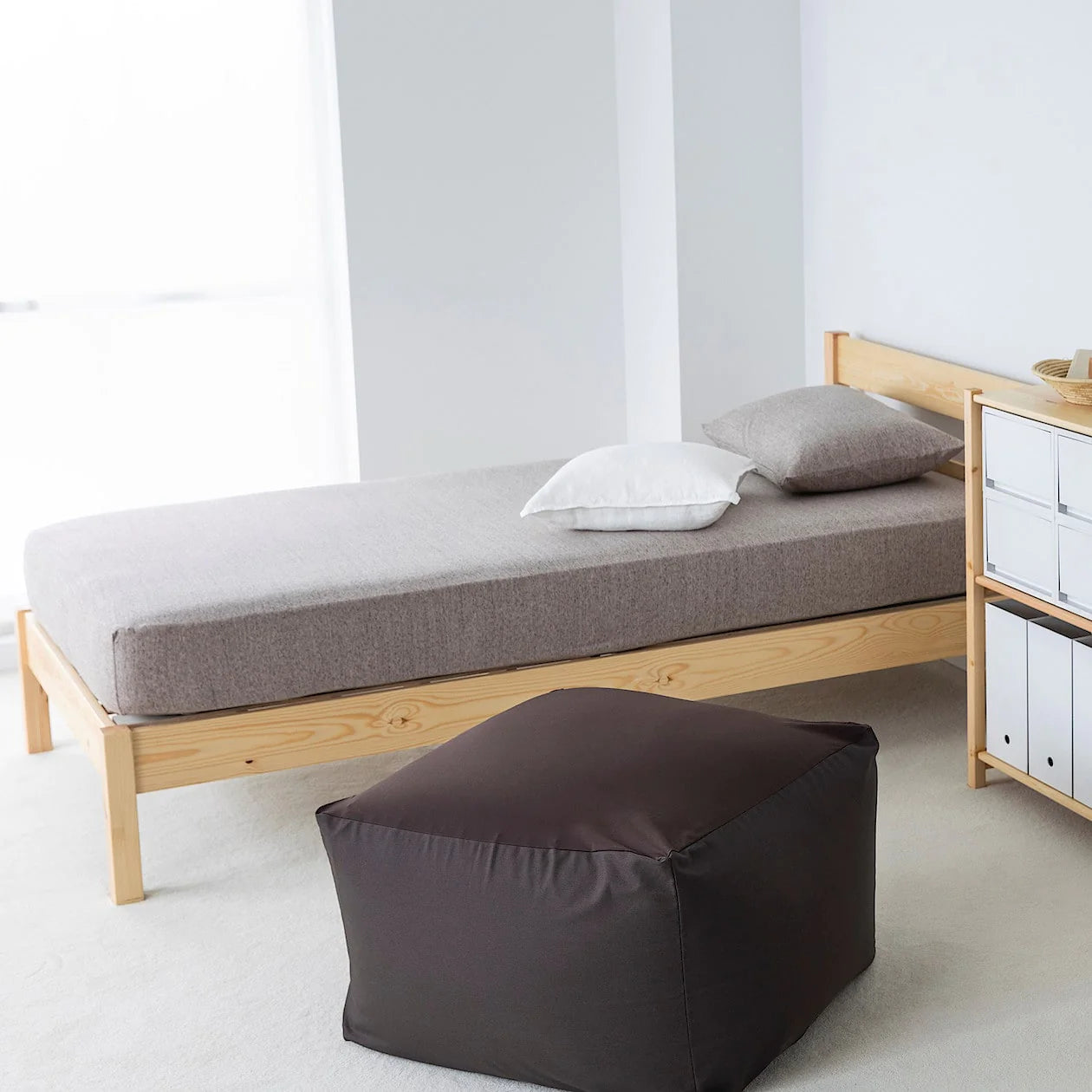 The knitted fabric uses a fabric that does not stretch easily. even when used. The fabric is made of polyester with a heathered finish. The material is easy to care for. It has a brushed finish. so it feels good on the skin. It is a simple color that easily blends in with the room.