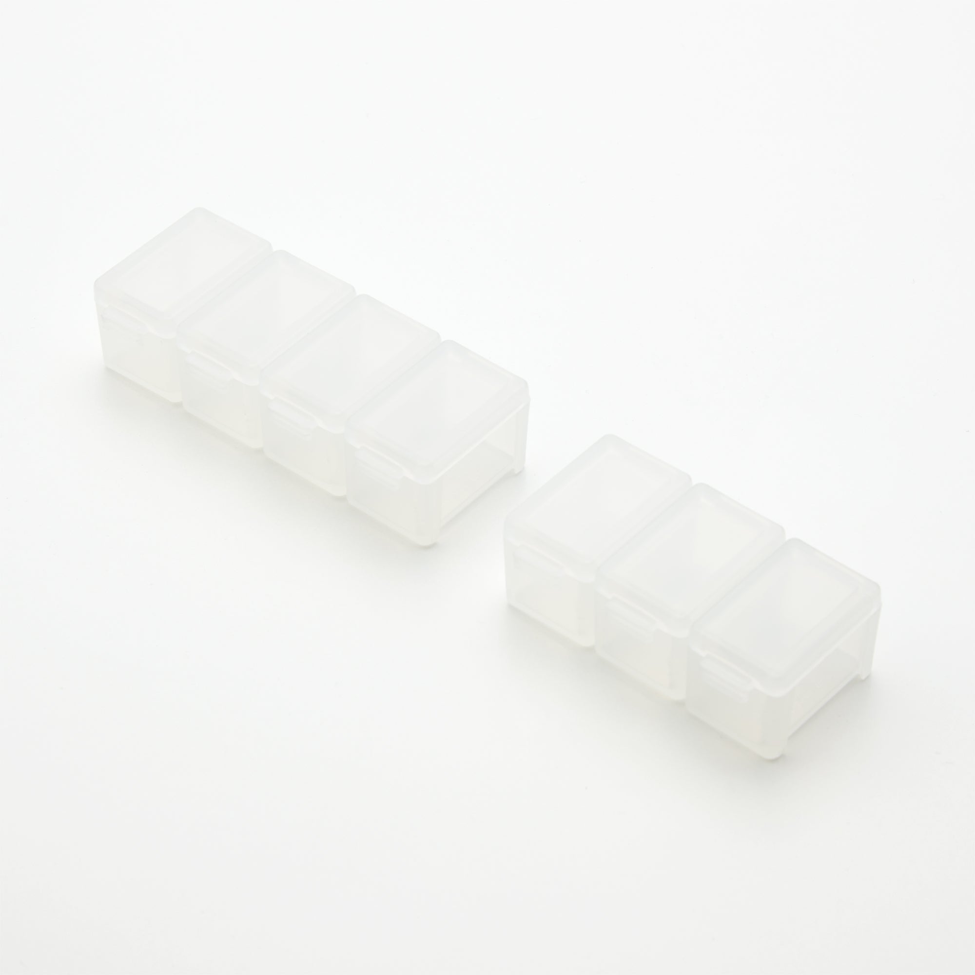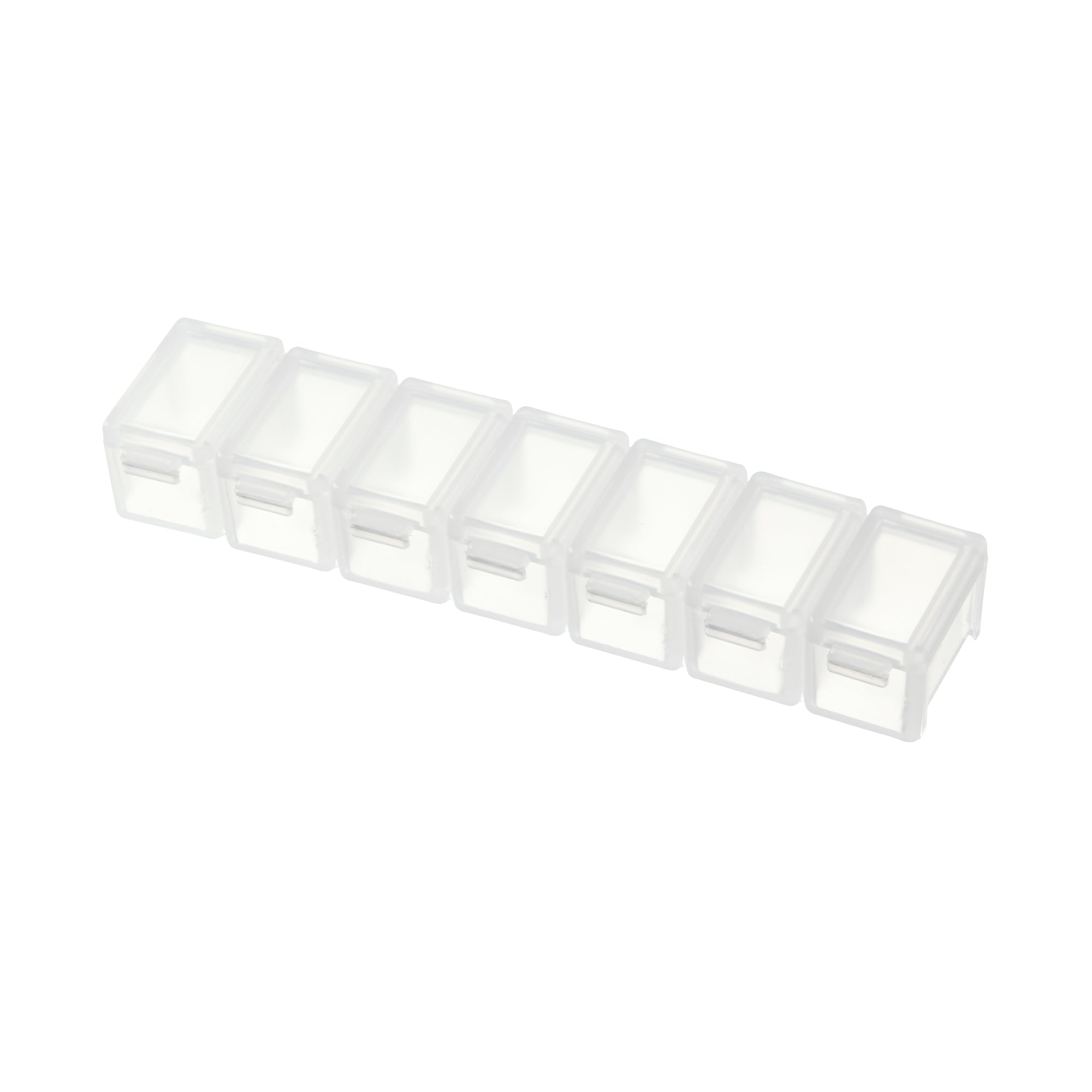 Conveniently carry meds and supplements with this 7-connectable pill case. Divisible for one week’s meds; attach/detach by sliding from top to bottom.
