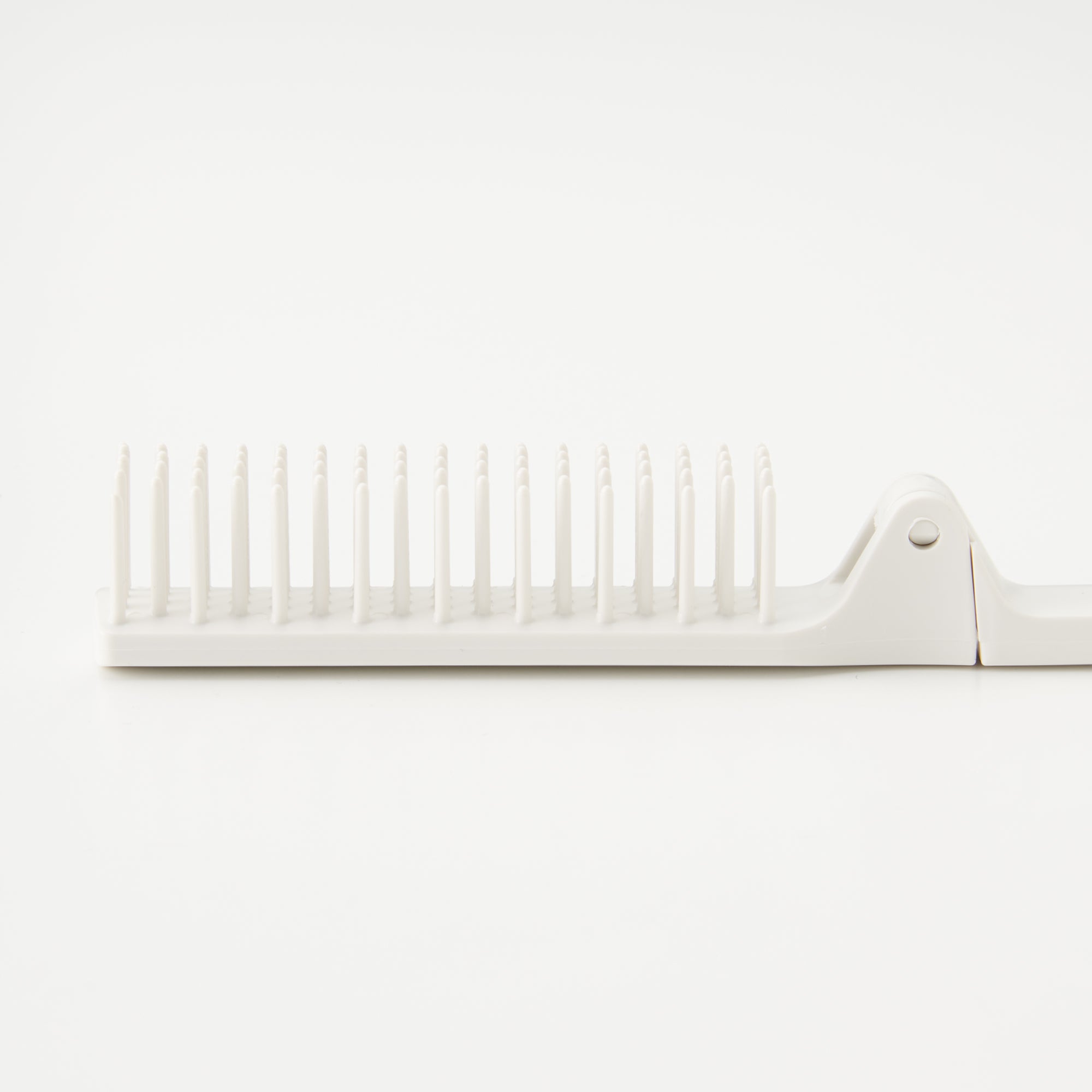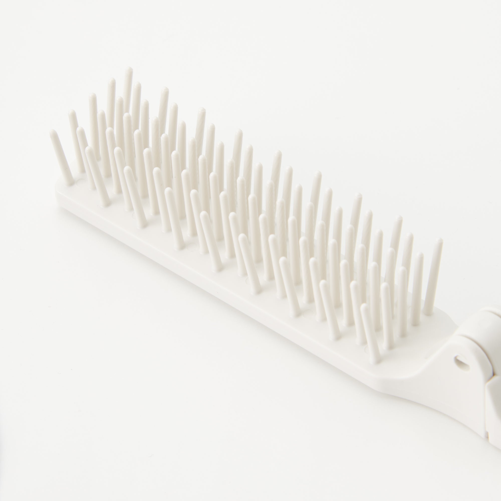 A foldable hair brush designed for convenient portability. perfect for travel.