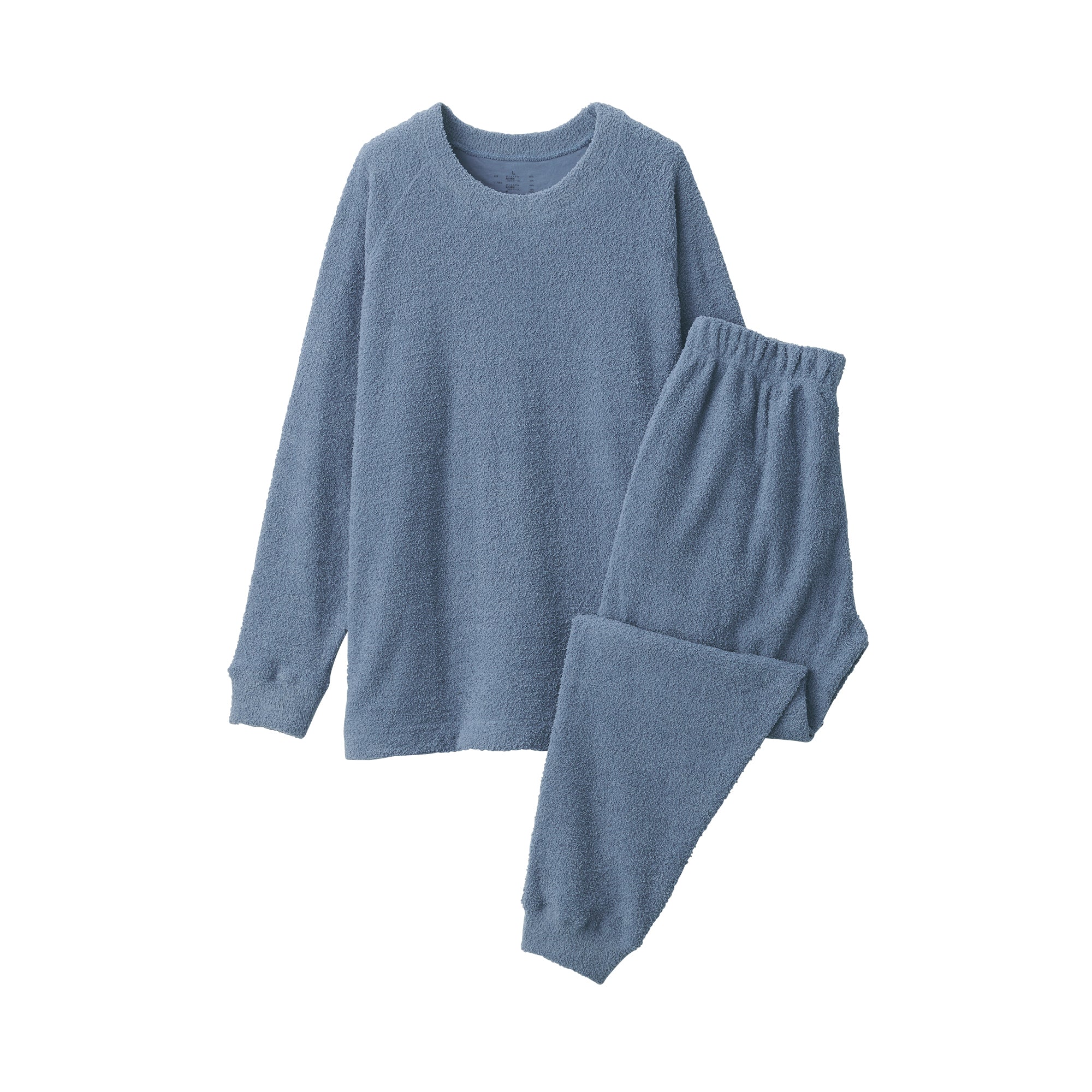 This men’s long-sleeved loungewear set is made with a blend of recycled fibers for a soft. sleek feeling against the skin. Its fluffy fleece texture will keep you warm and cozy while you lounge comfortably at home.