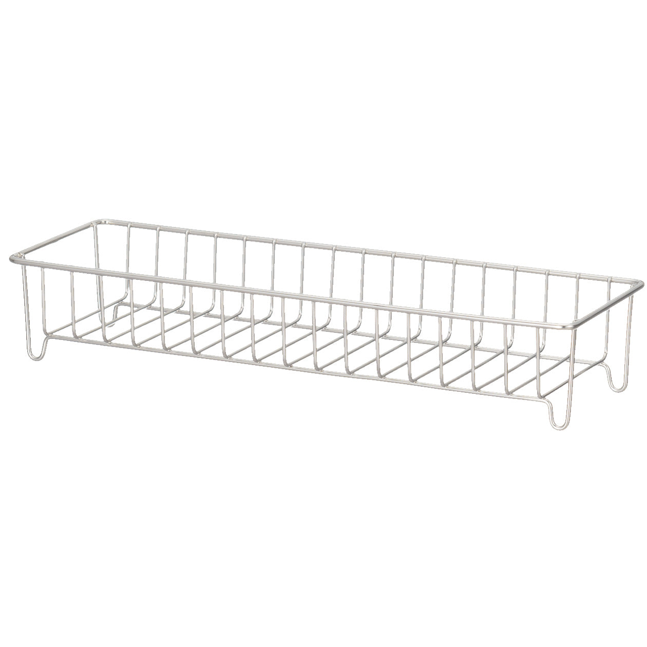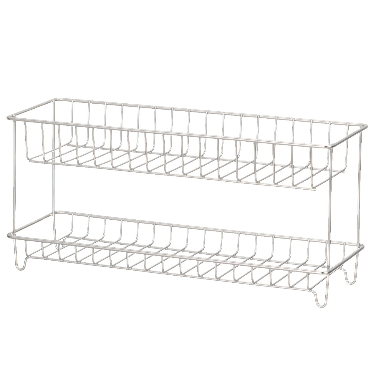 A bathroom bottle rack made of durable steel. It is the perfect size for 4 MUJI PET Refill bottles.