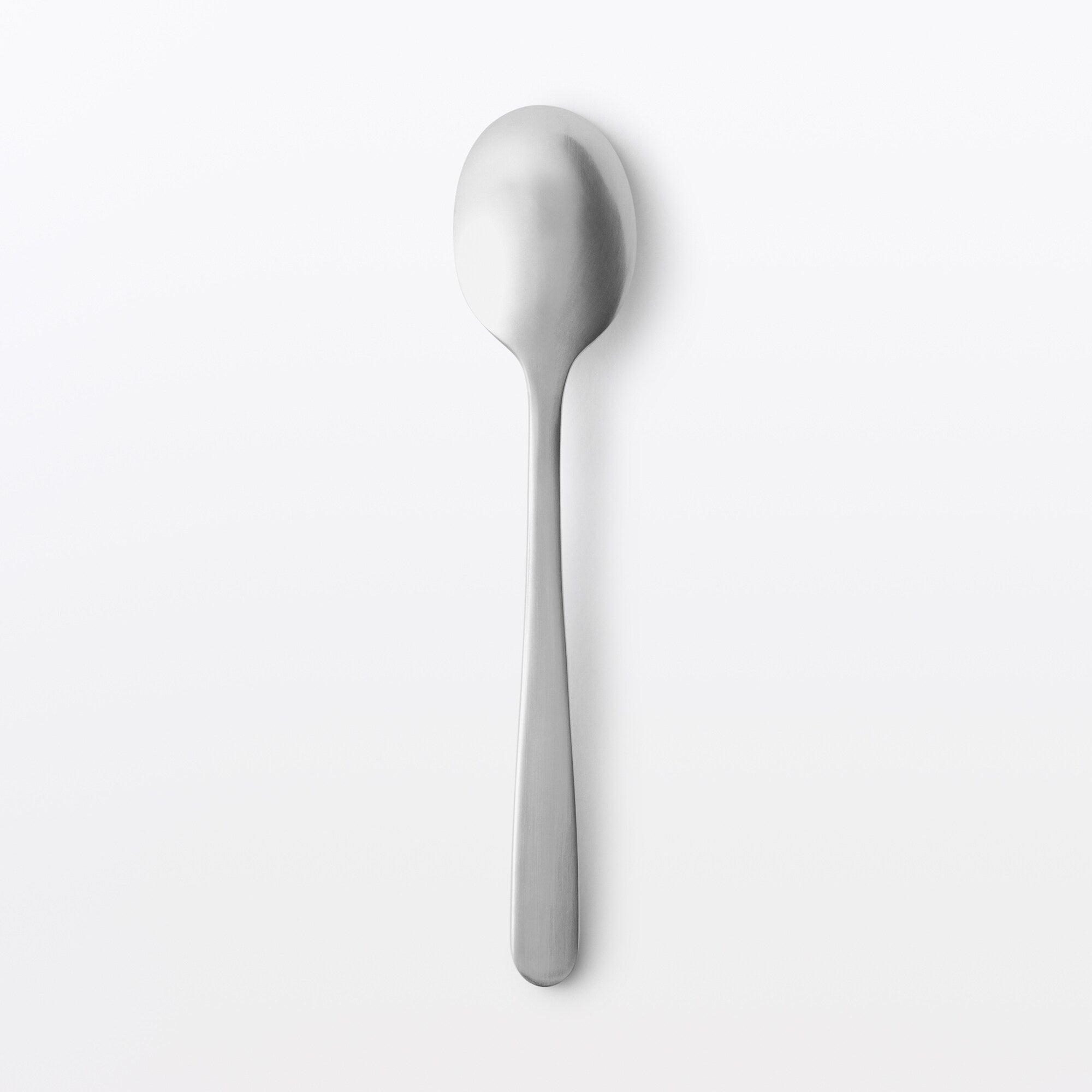 This stainless steel dessert spoon has a standard design that suits any type of cuisine. The handle length and curve angle have been carefully designed to make it easy to hold and use.
