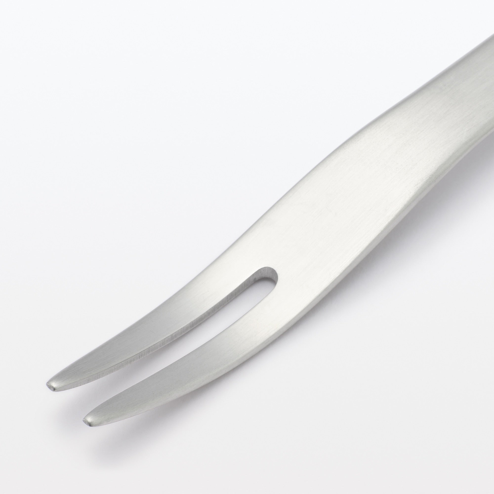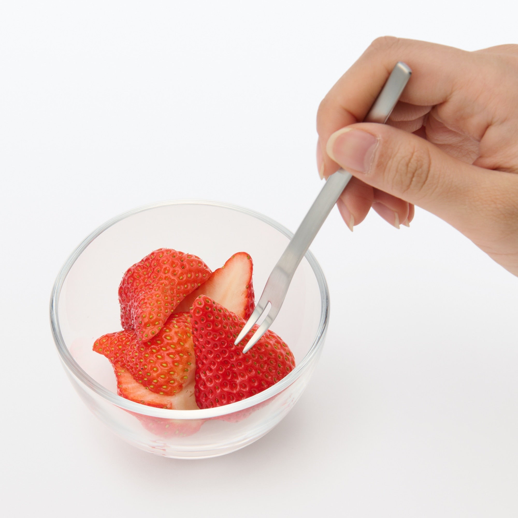 This stainless steel mini fork has a narrow width. making it ideal for cutting up and enjoying fruits or desserts.