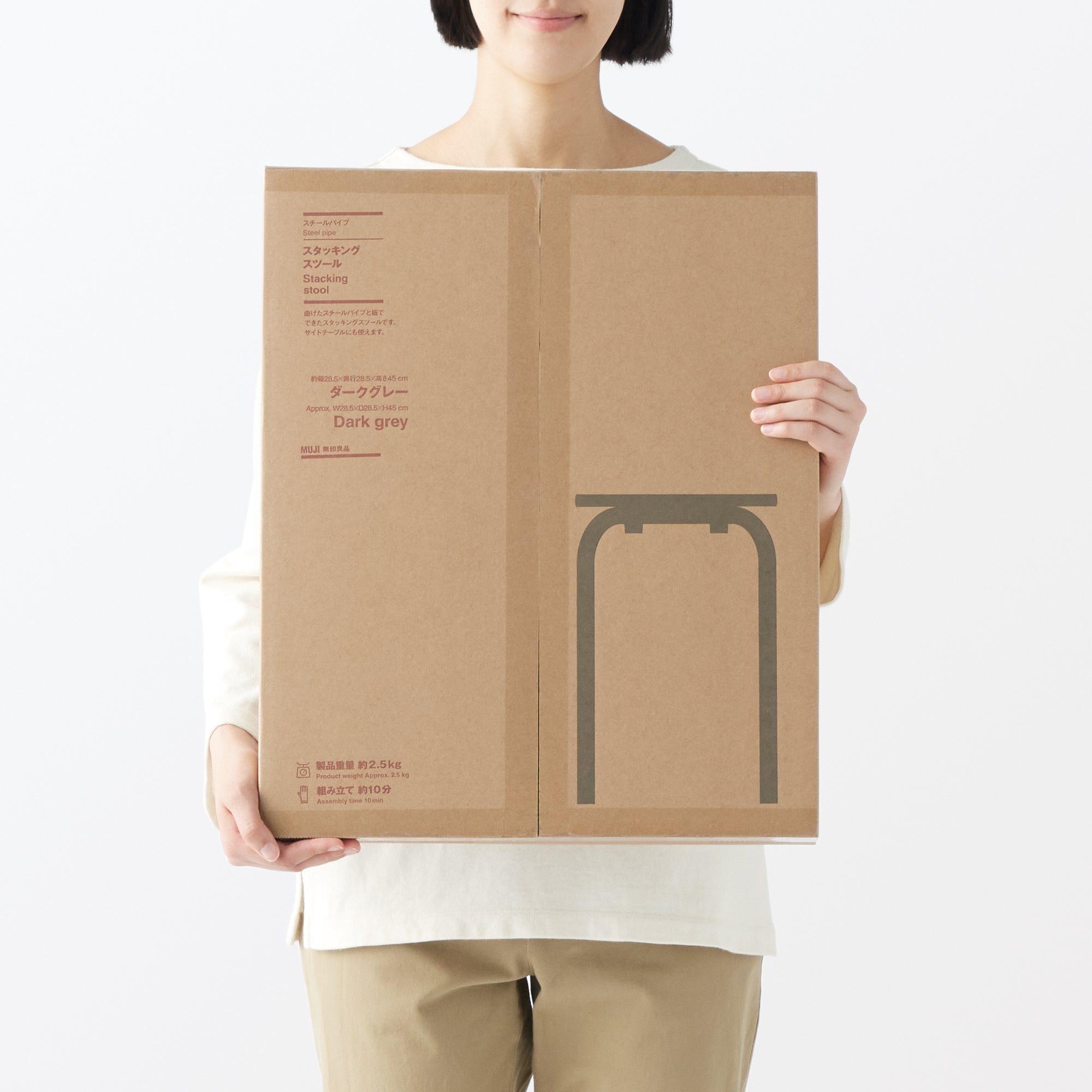 A simple stacking stool with a board attached to a bent steel pipe. By stacking them when not in use. you can save space and store them. In addition to sitting on it. you can also use it as a small table next to your bed or sofa.