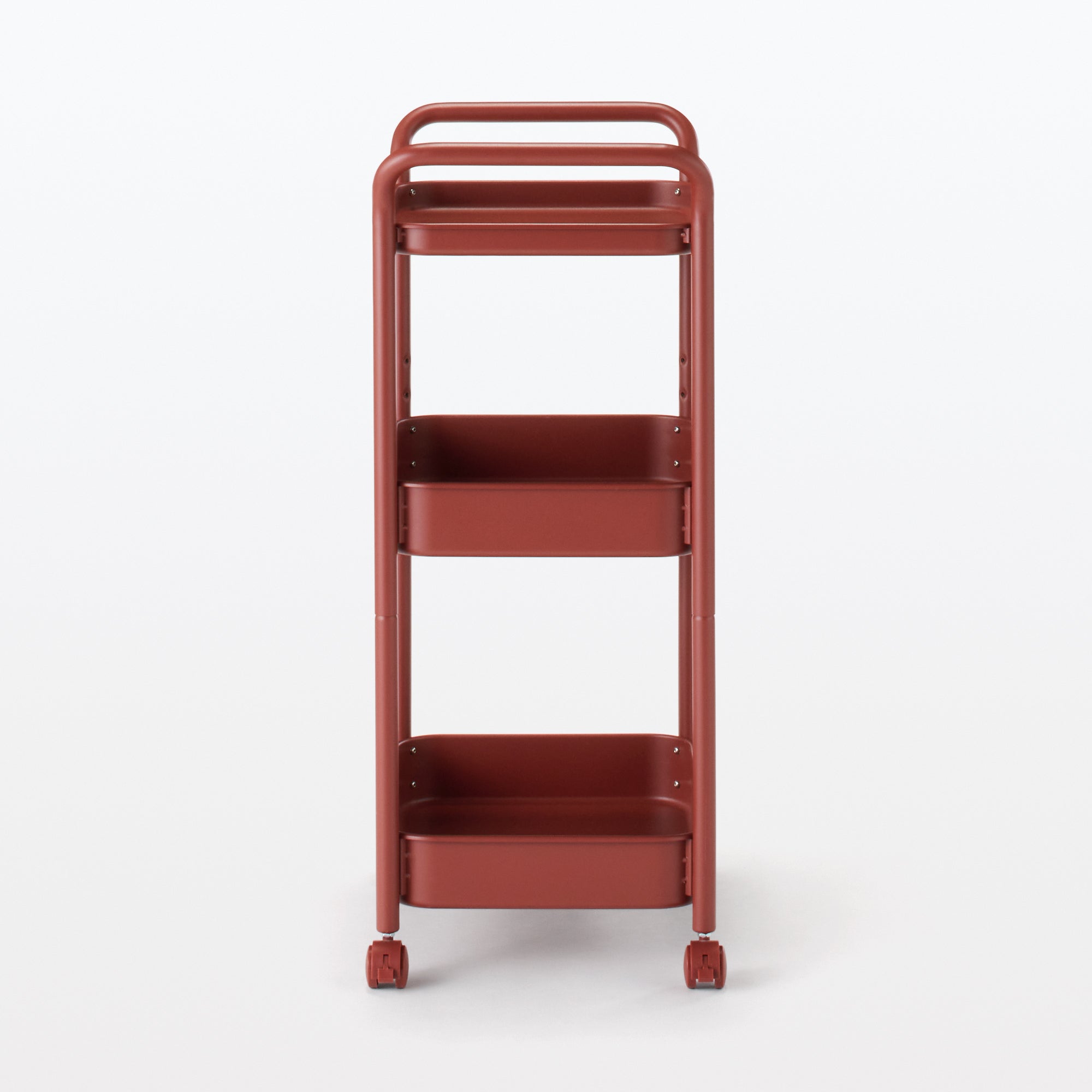 A simple wagon rack made using trays attached to a bent steel pipe. Recommended for use around the kitchen. desks. or storying children’s supplies. You can easily move it wherever you need it. so you can use it anywhere.
