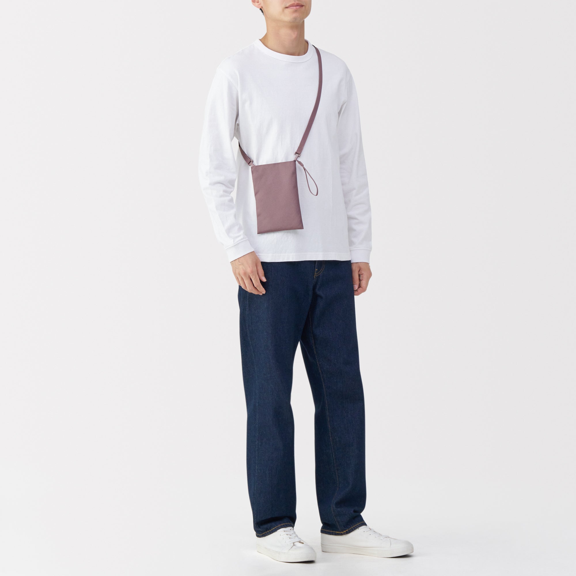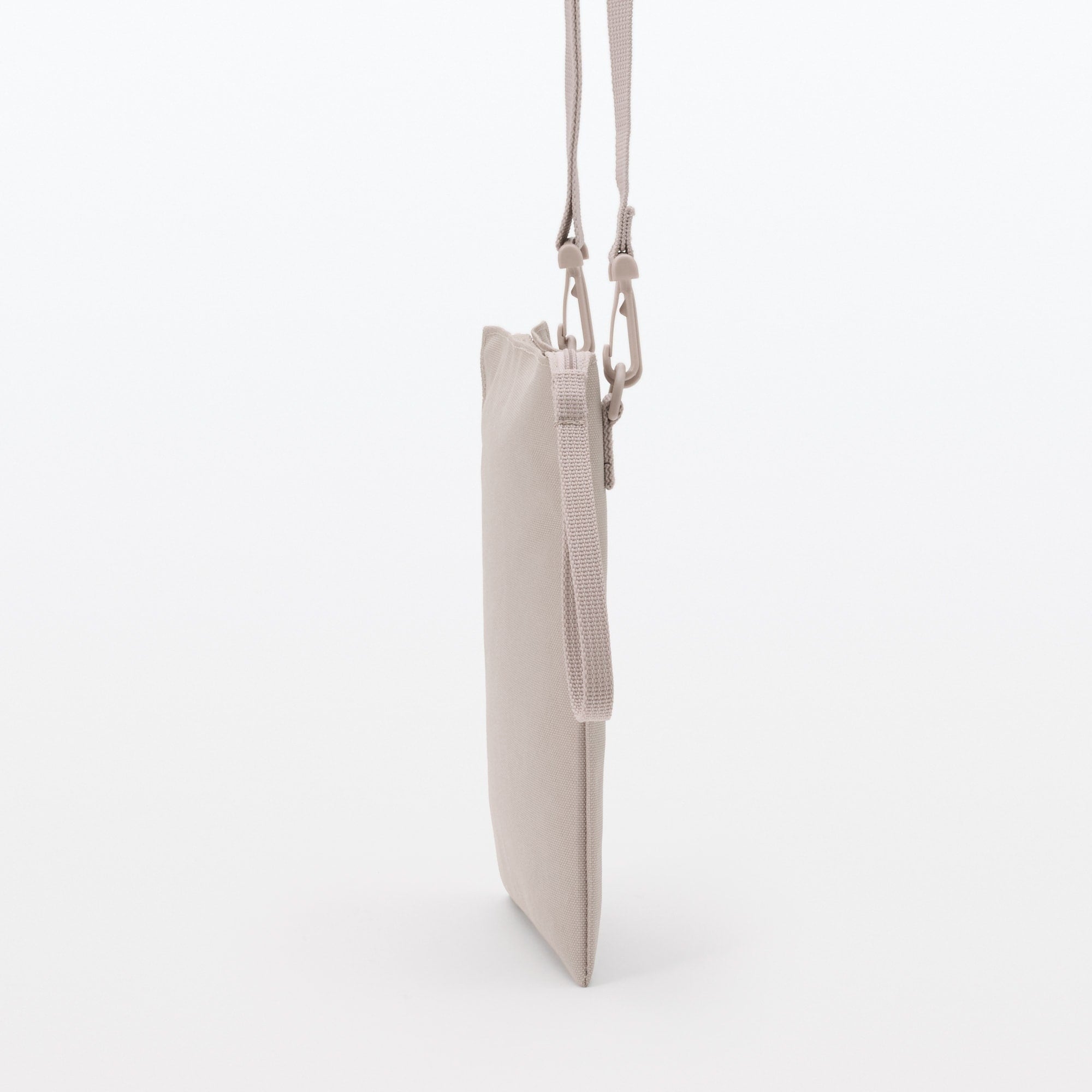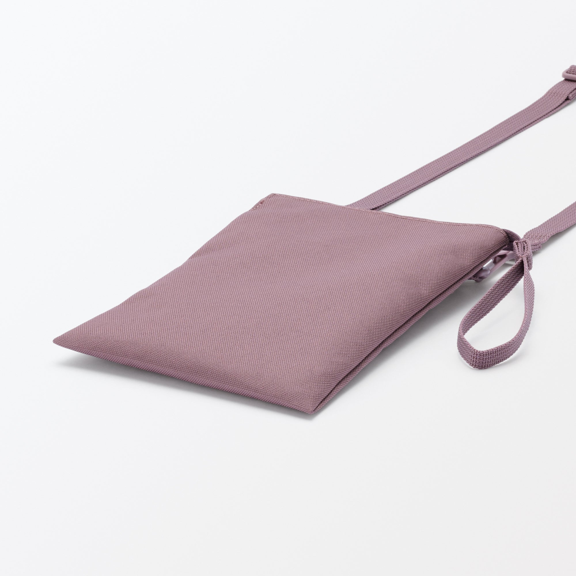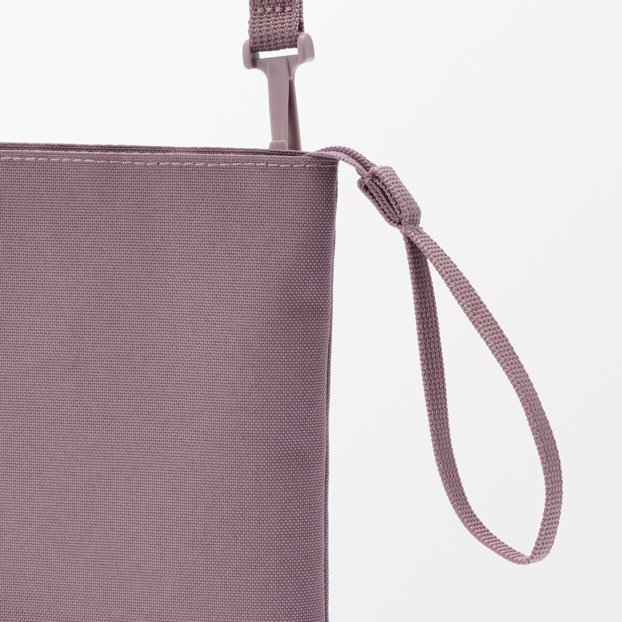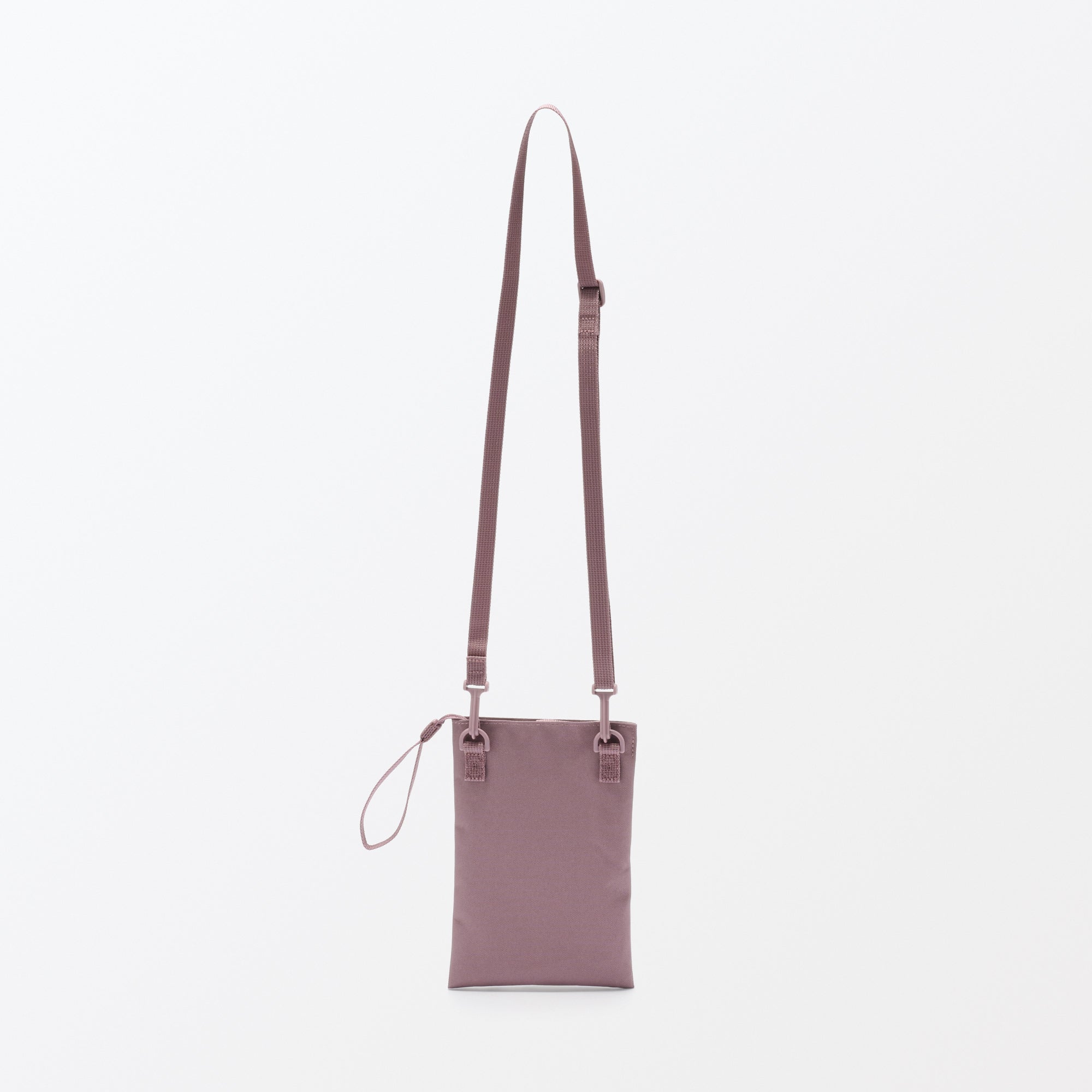 This compact. shoulder-slung pouch is the perfect size to hold all of your daily necessities for quick outings. Made from recycled polyester. it has a water repellent coating to protect your belongings. There is an interior divider to help keep its contents organized and easy to find.