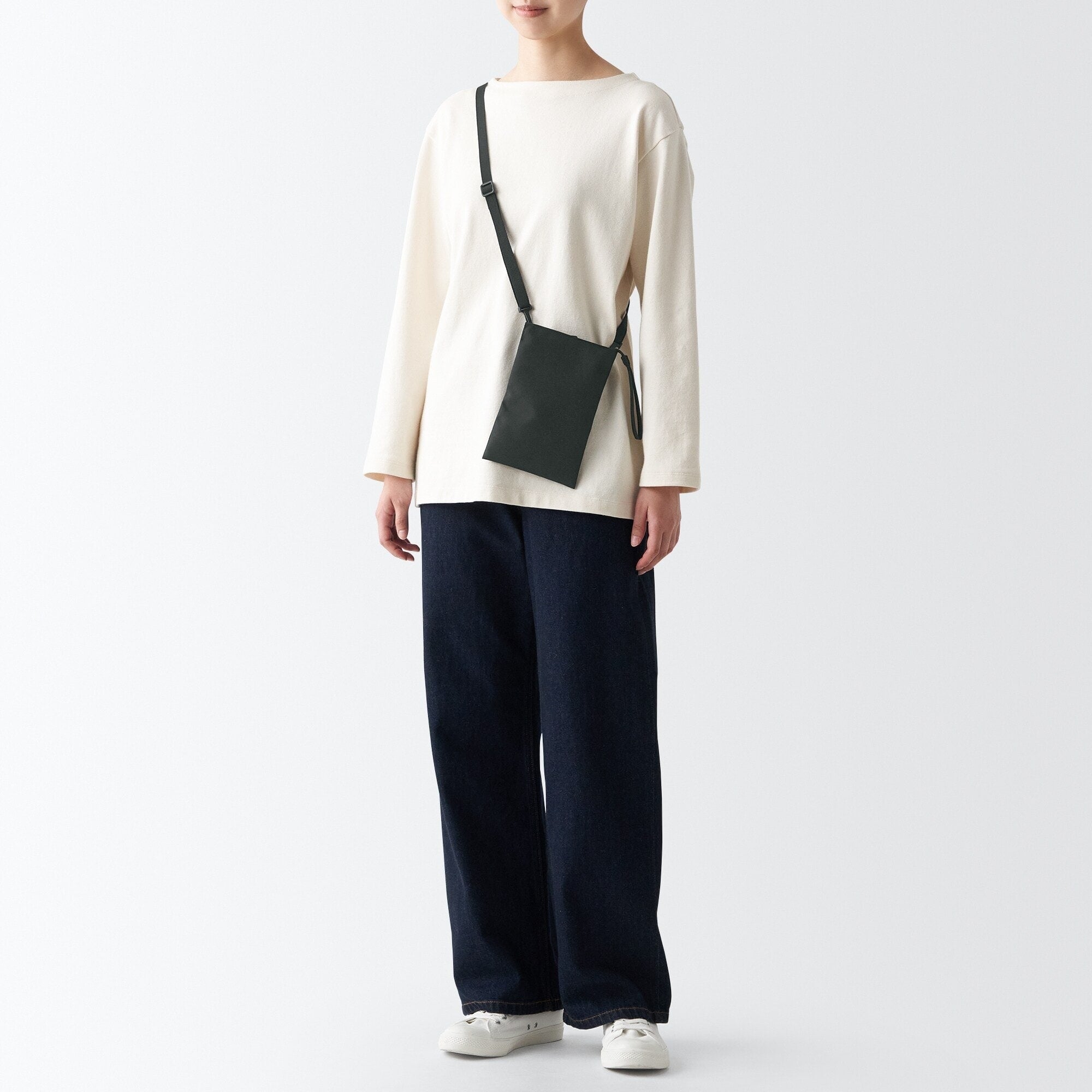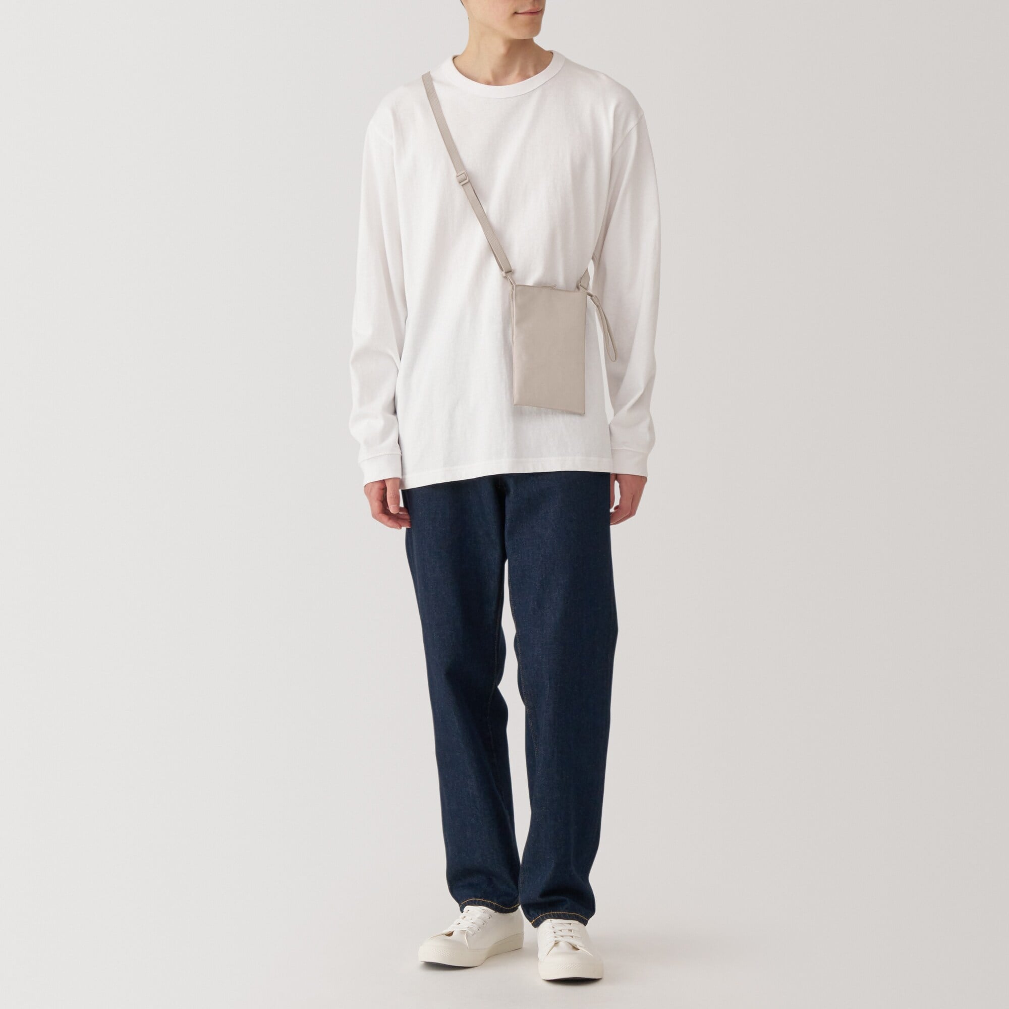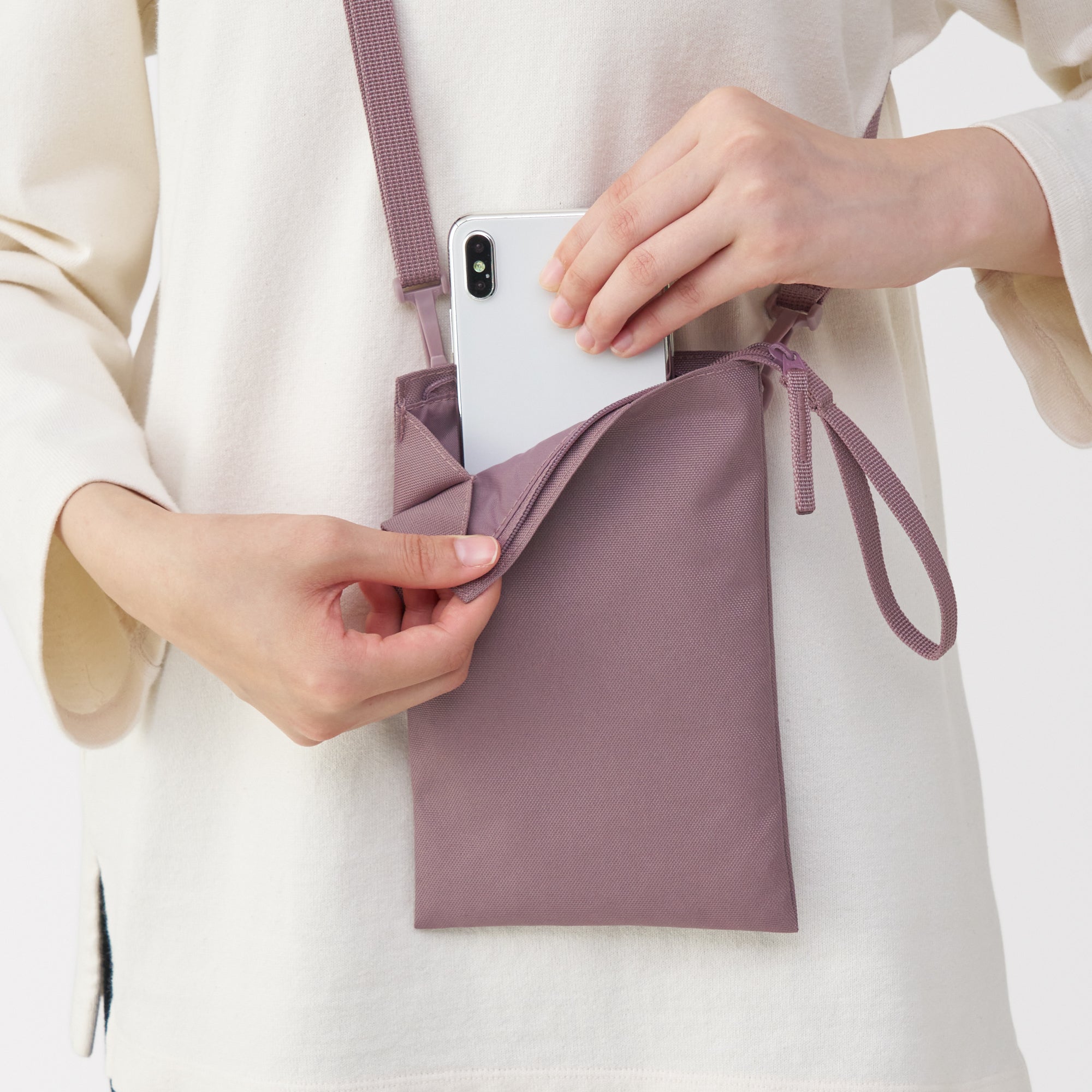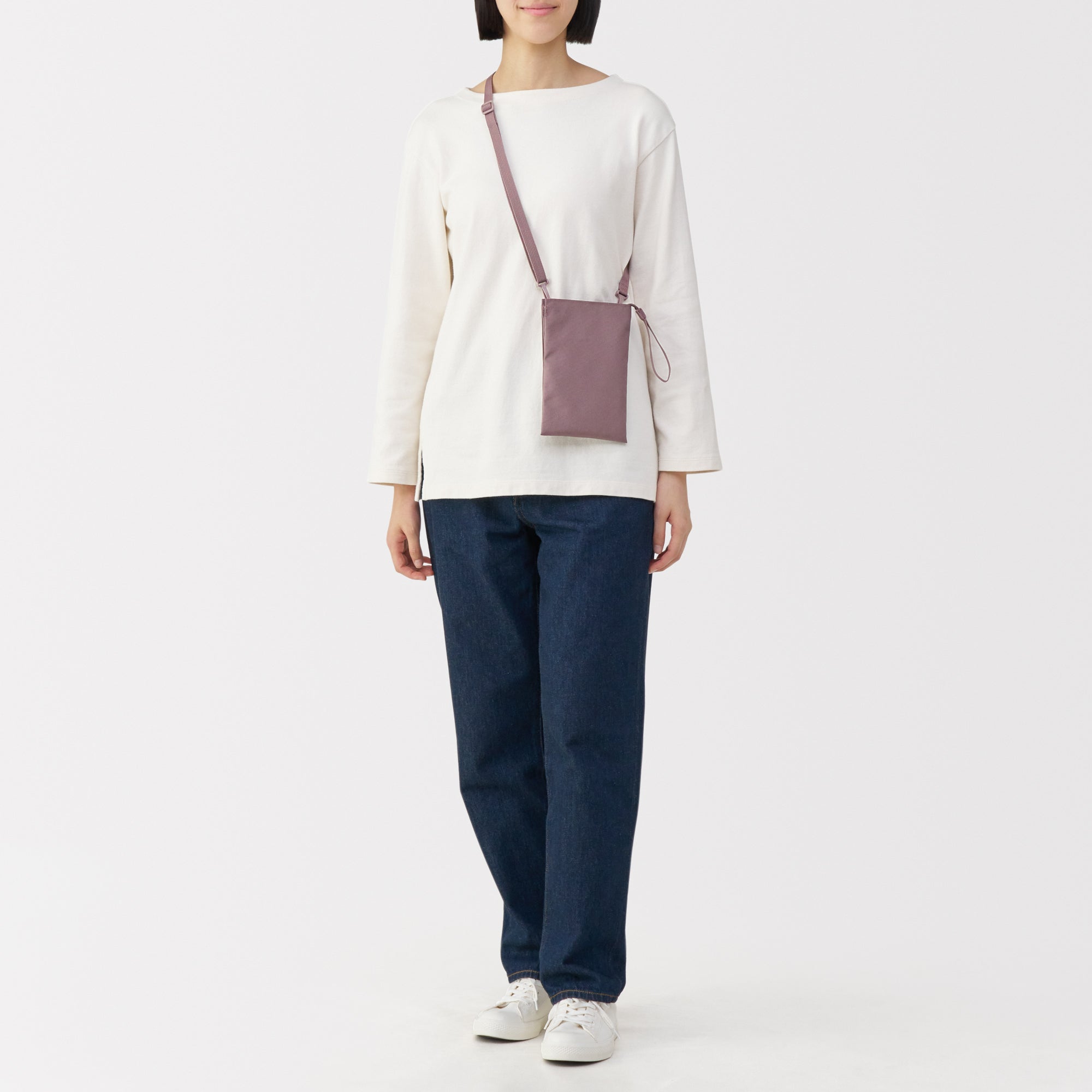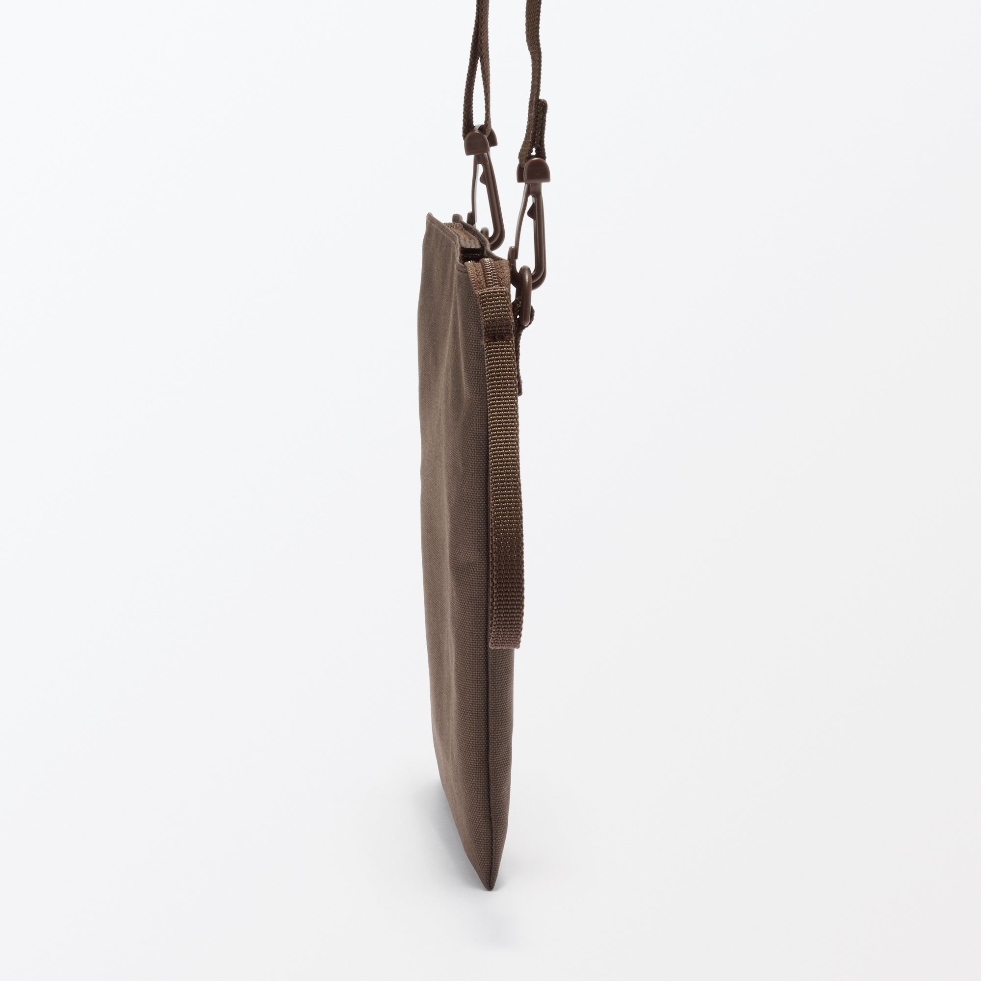 This compact. shoulder-slung pouch is the perfect size to hold all of your daily necessities for quick outings. Made from recycled polyester. it has a water repellent coating to protect your belongings. There is an interior divider to help keep its contents organized and easy to find.