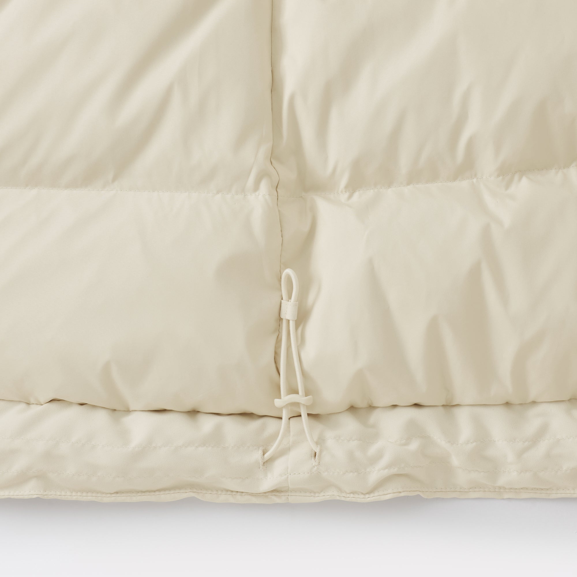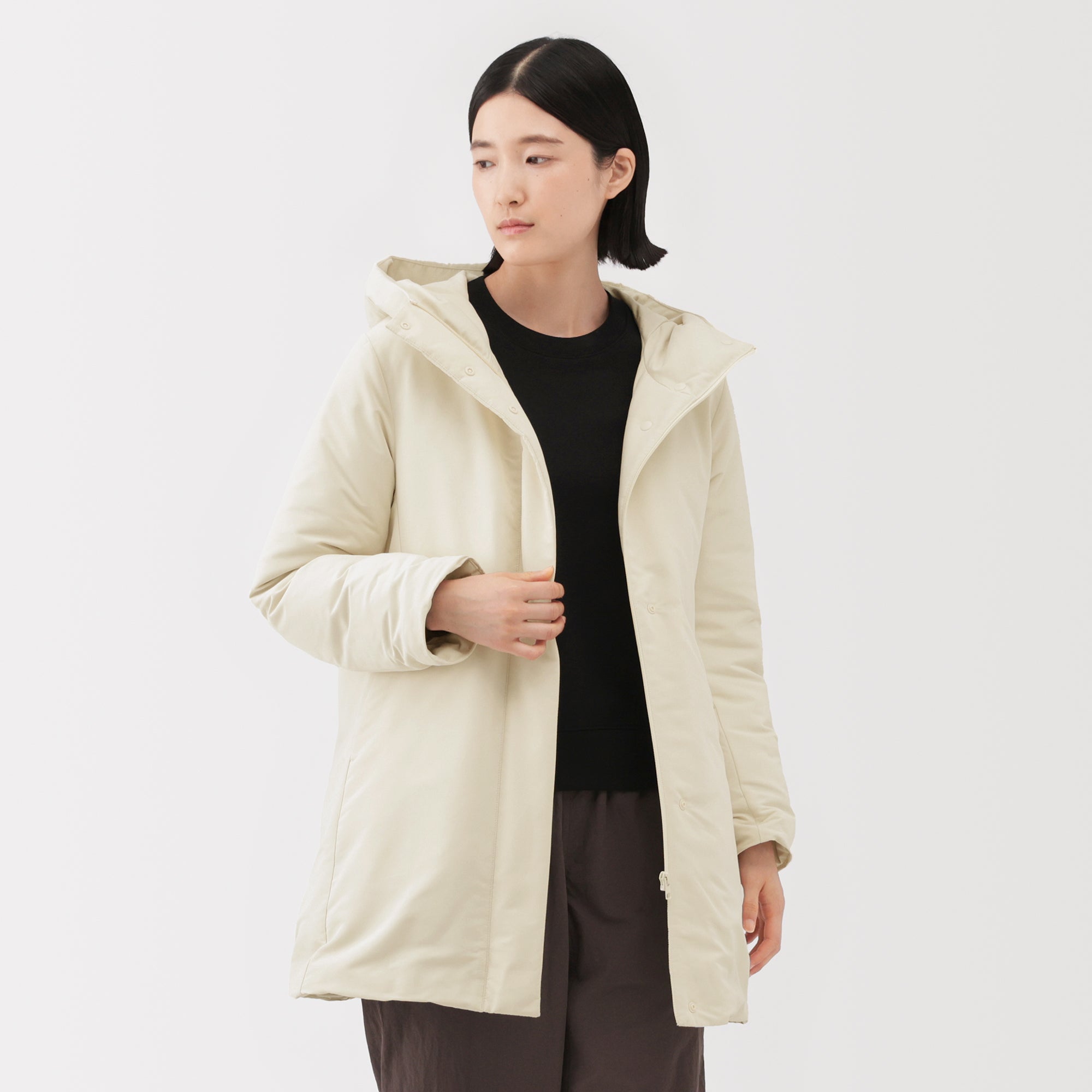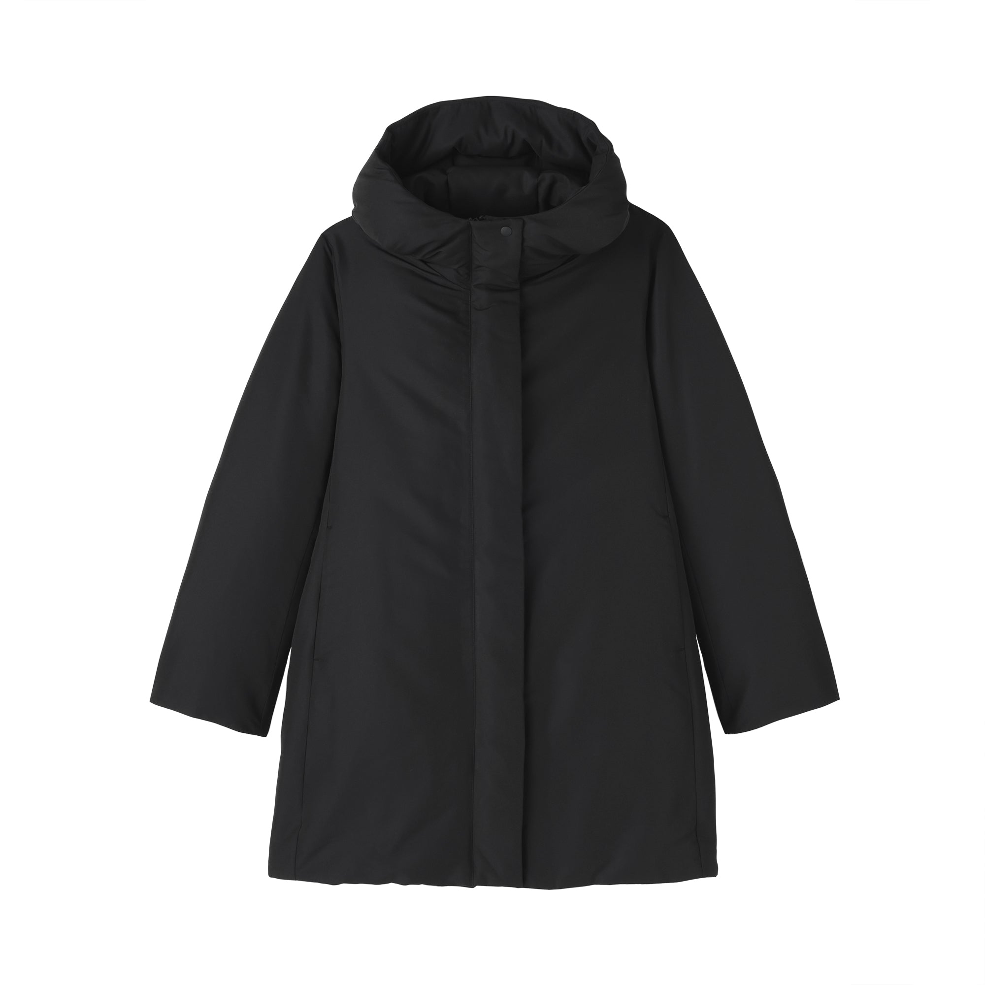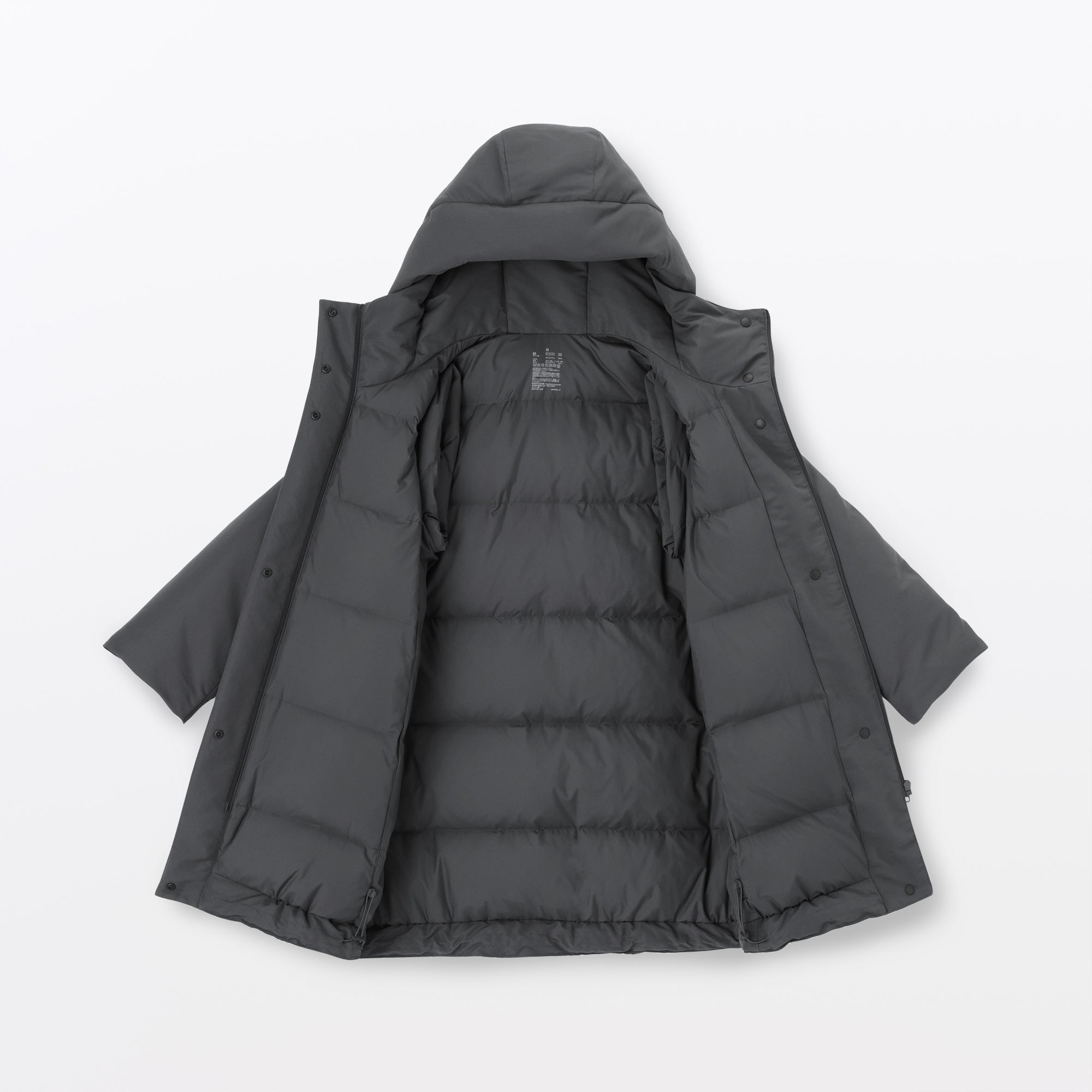 A fluffy women’s water-repellent down coat with fill power 750 down. Its mid-length design is easy to move in while also keeping you warm and cozy in the winter. This coat features a non-quilted outer fabric. giving it a more neat and polished look. Designed to protect you from the elements. with a front placket to hide the neck and elasticized cuffs to keep warmth inside. The pockets are lined with soft fleece to keep your hands warm.