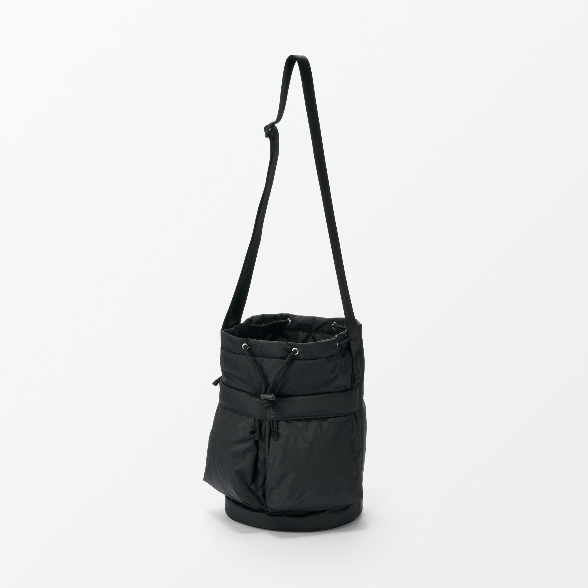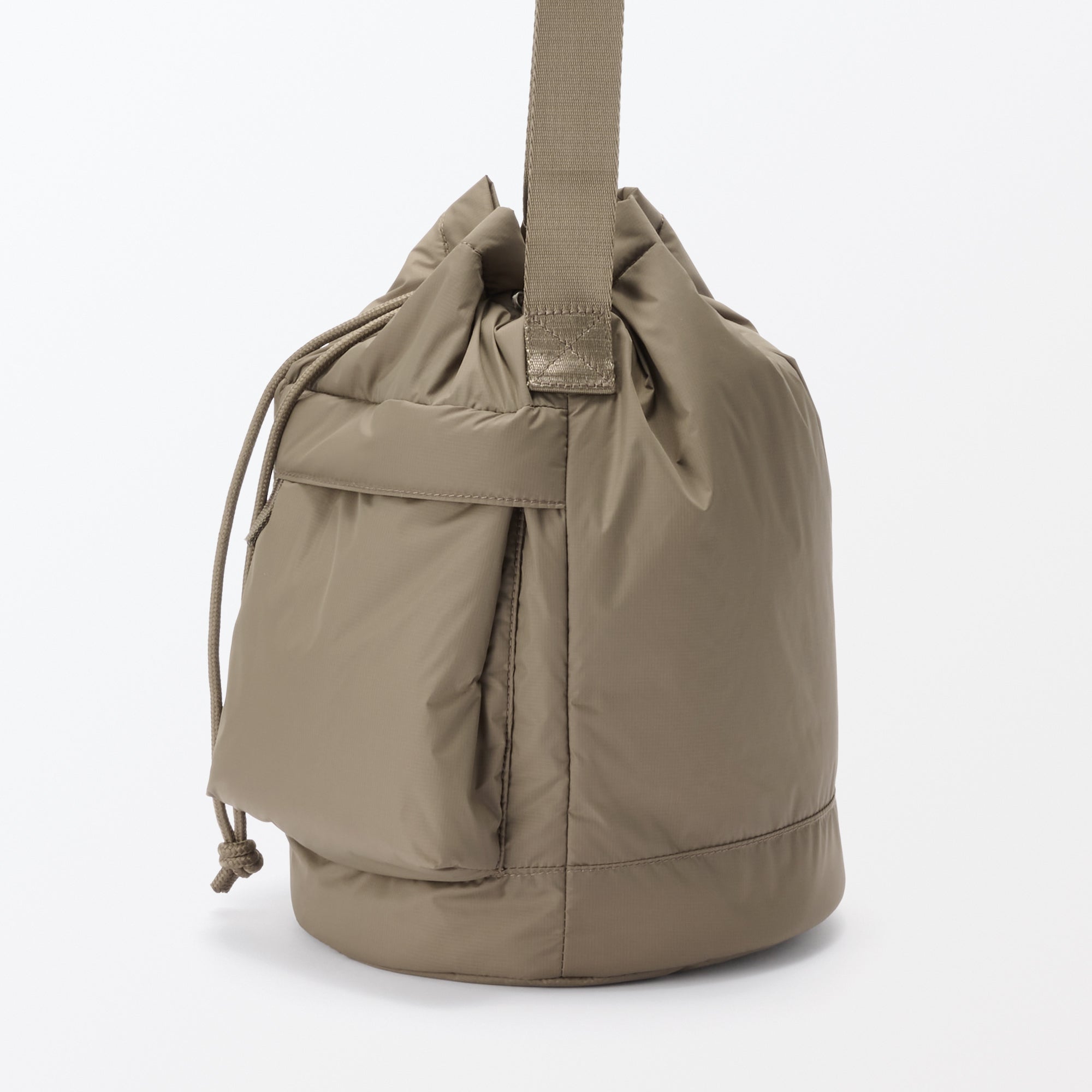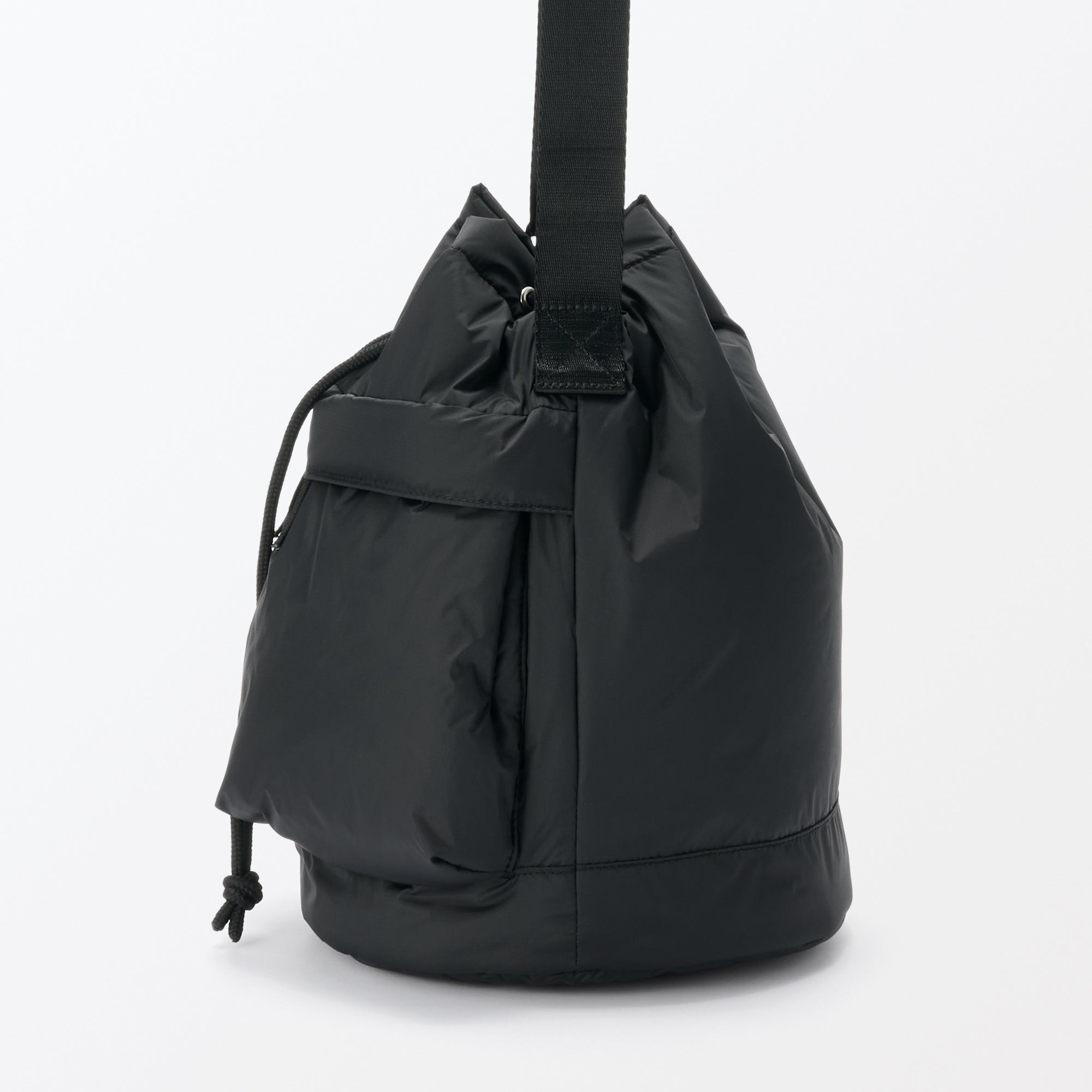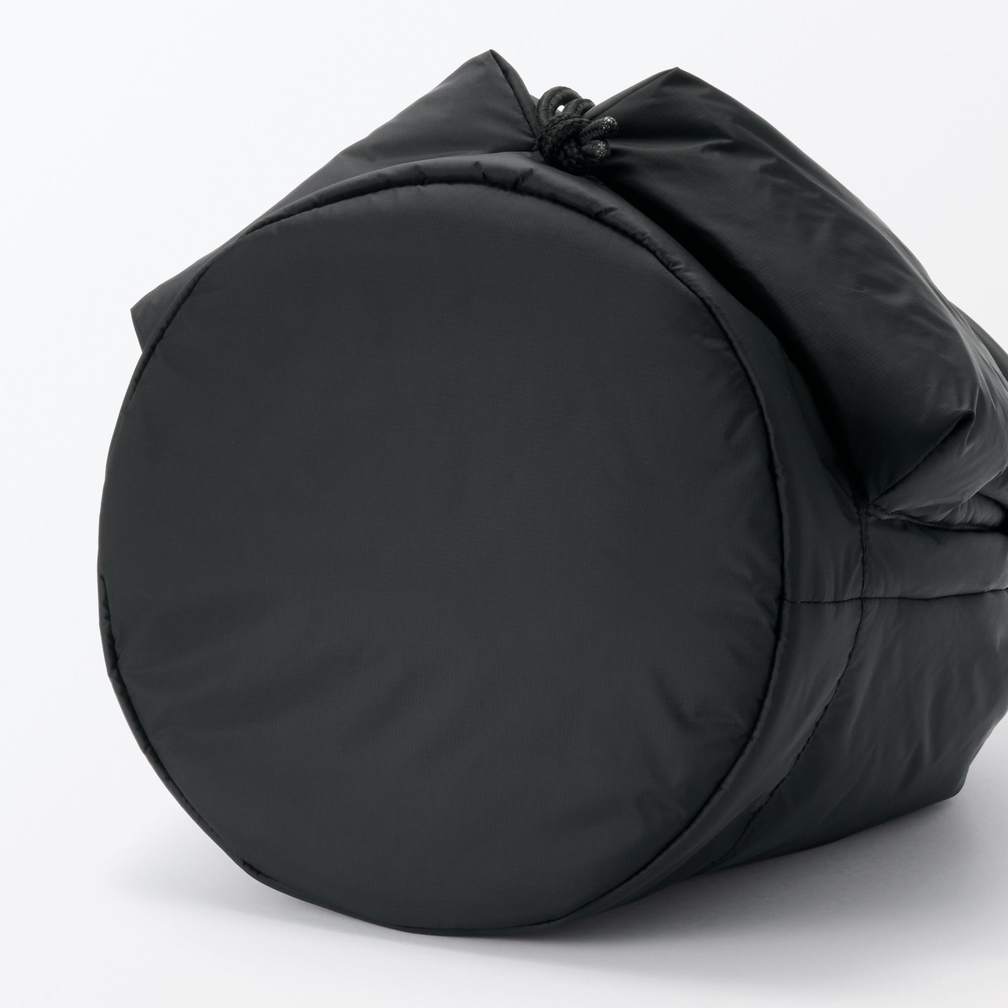 This adjustable drawstring bucket bag features a water-repellent padded material to keep your belongings safe and dry even on rainy days. Its cylindrical design gives you plenty of room to hold everything you need for the day. and there are also two zippered pockets on the outside and one inside for extra storage.