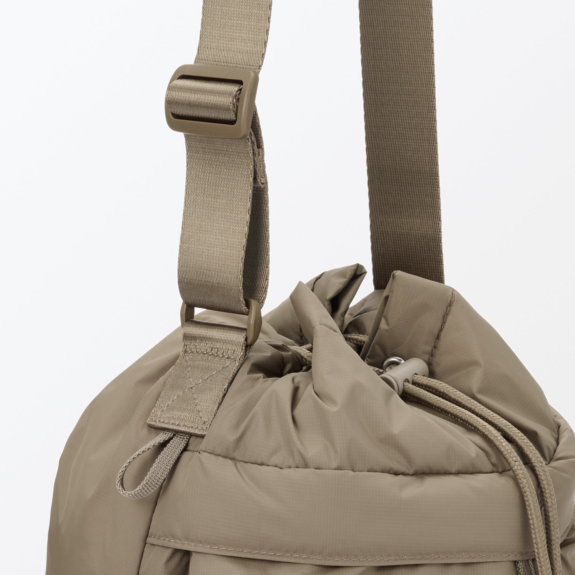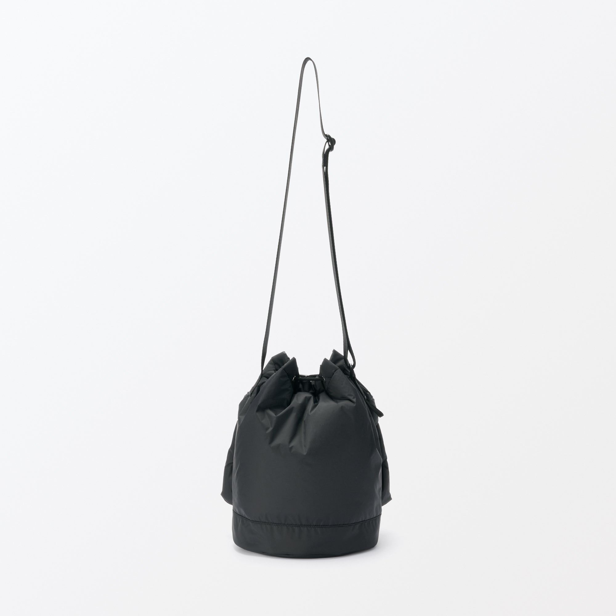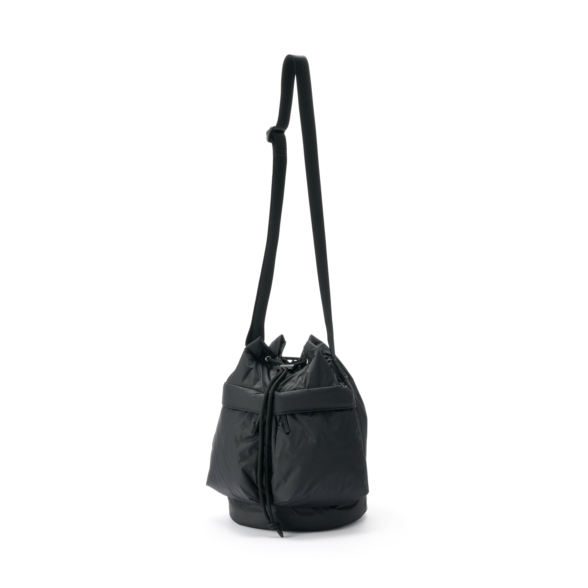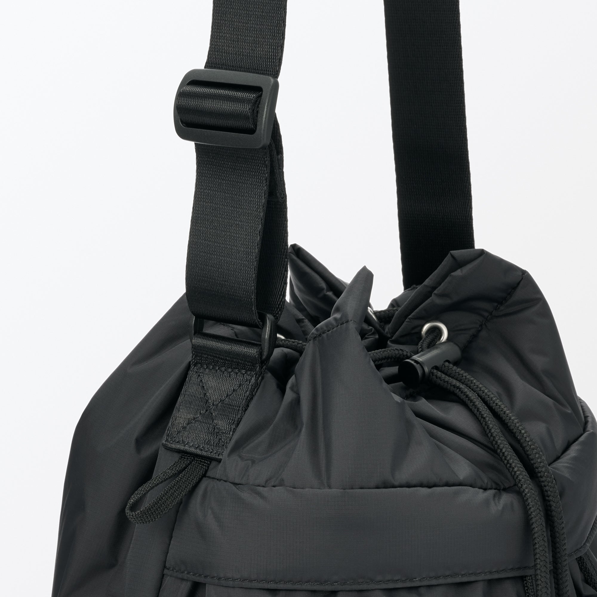 This adjustable drawstring bucket bag features a water-repellent padded material to keep your belongings safe and dry even on rainy days. Its cylindrical design gives you plenty of room to hold everything you need for the day. and there are also two zippered pockets on the outside and one inside for extra storage.