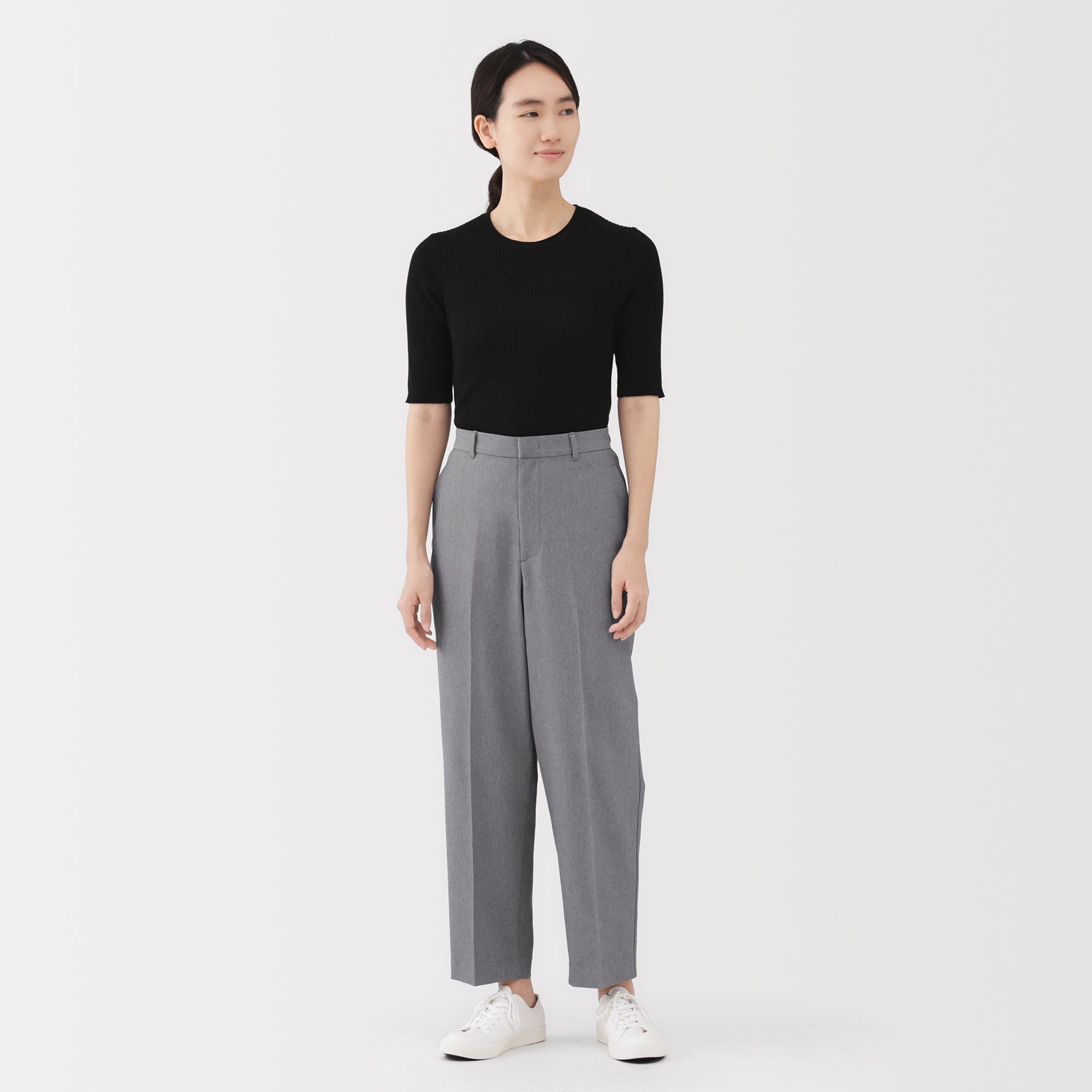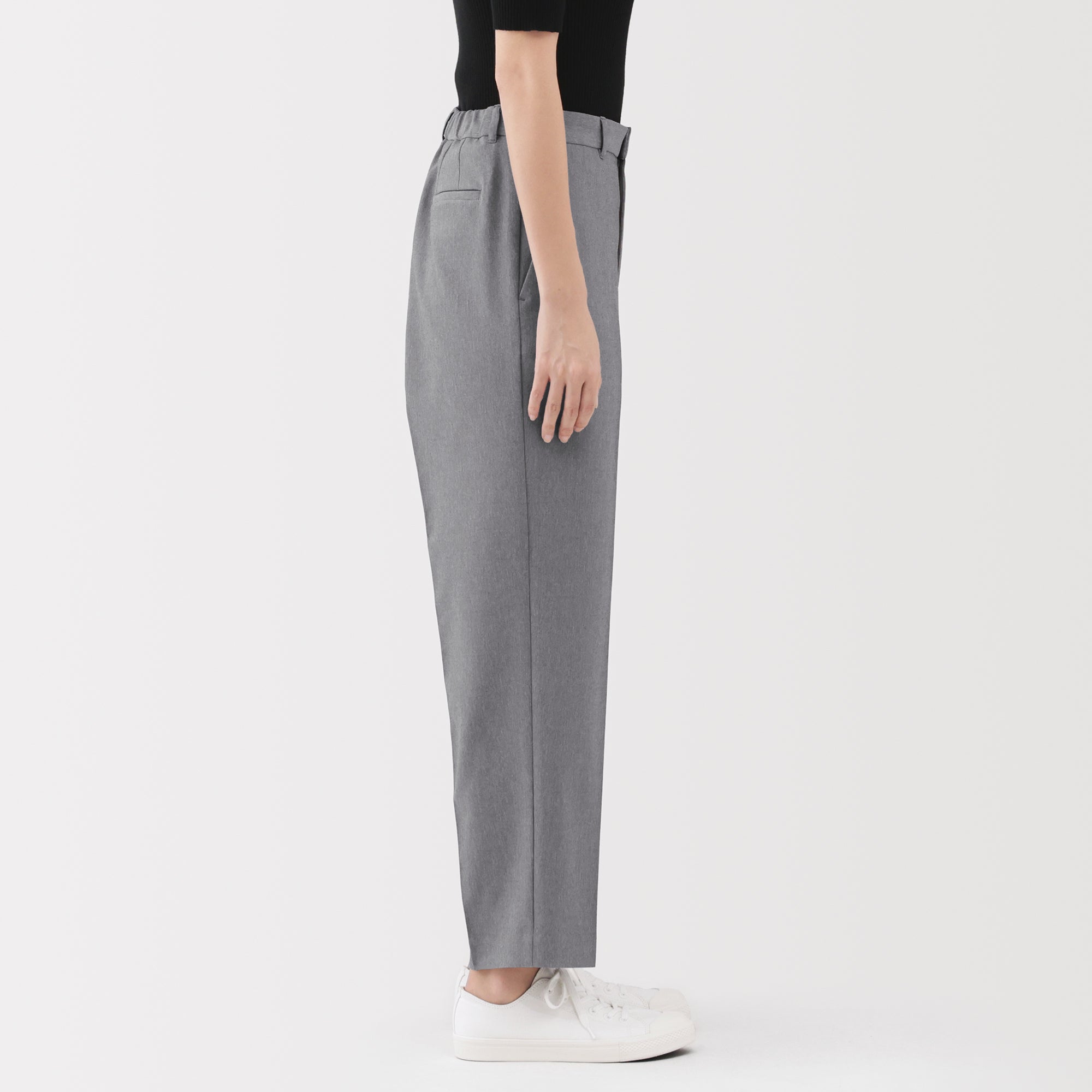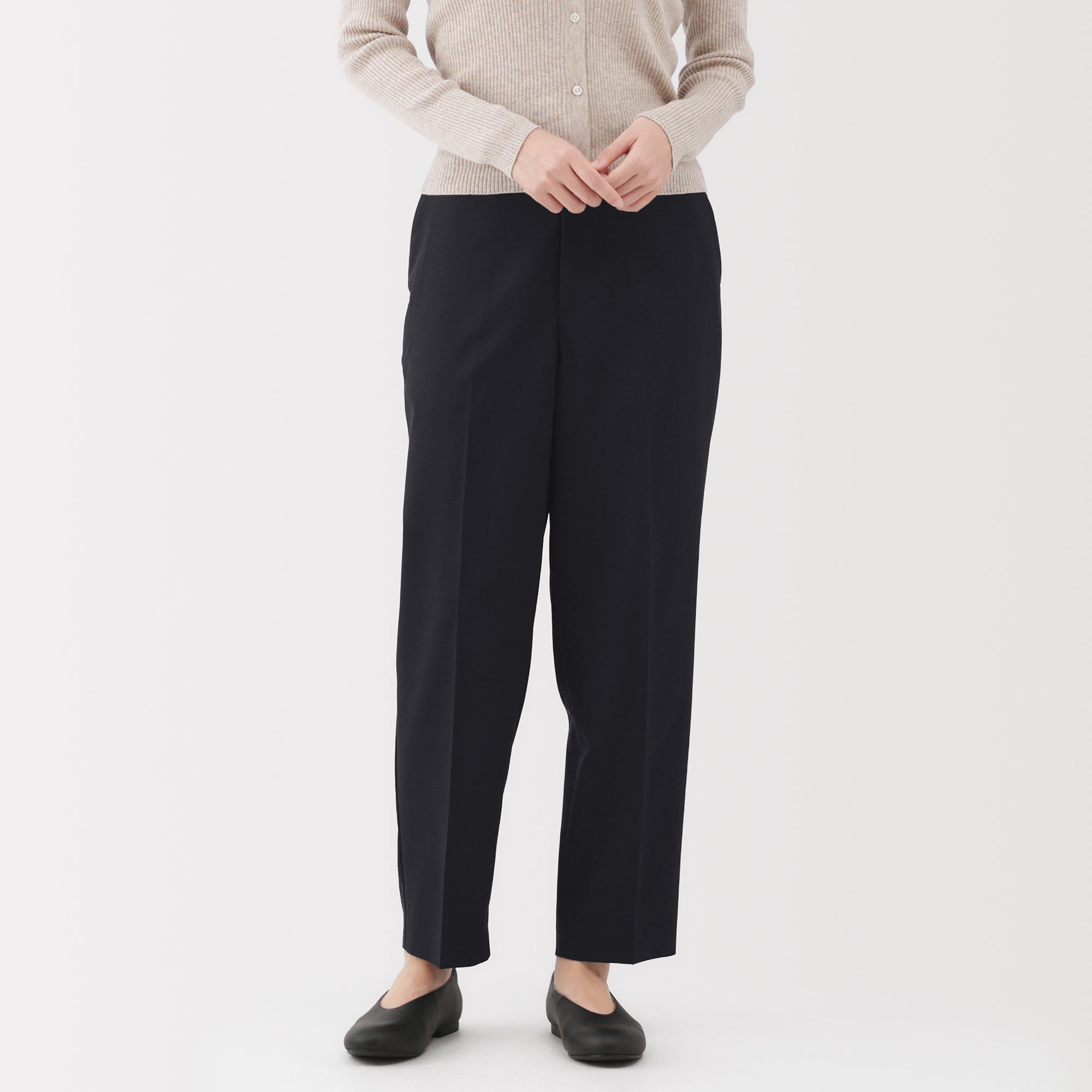 Women’s water repellent stretch tapered pants made using recycled polyester. designed with a loose tapered silhouette that goes well with both business and casual outfits. The stretchy fabric has been treated with a water-repellent finish so it can be worn comfortably even on rainy days.