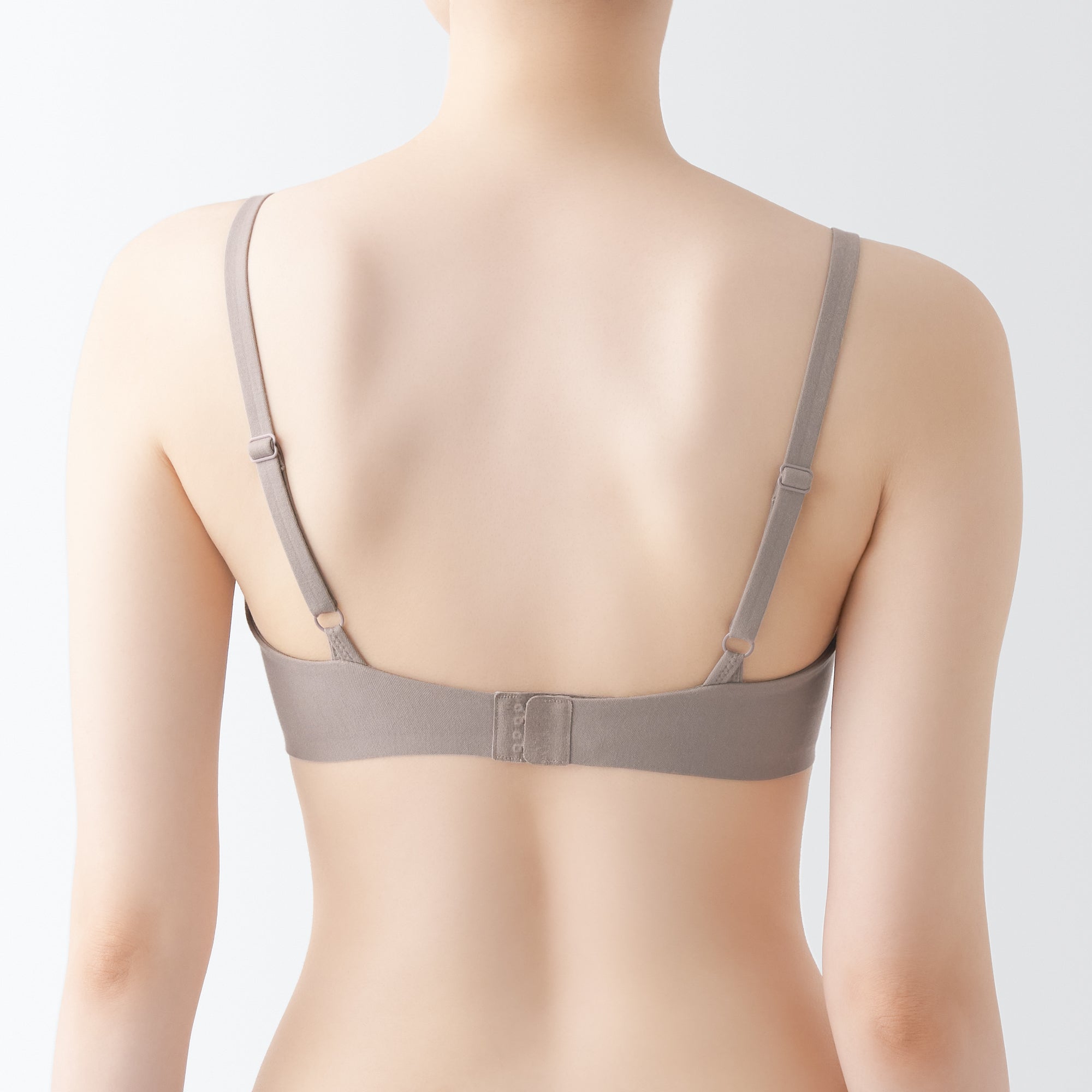 Features a less-tightening triangle cup and reduced seams on the band to improve comfort while strengthening the support.