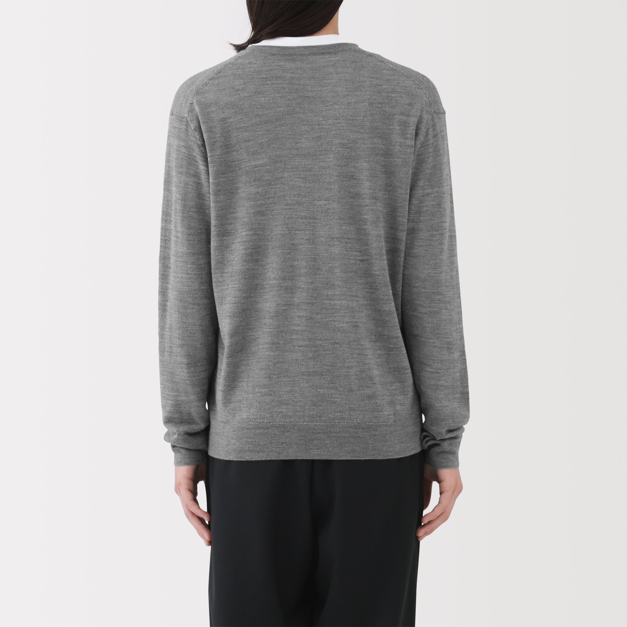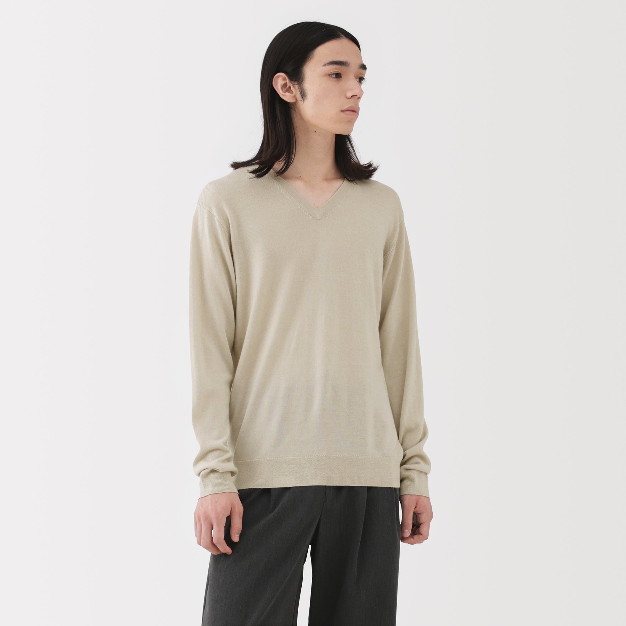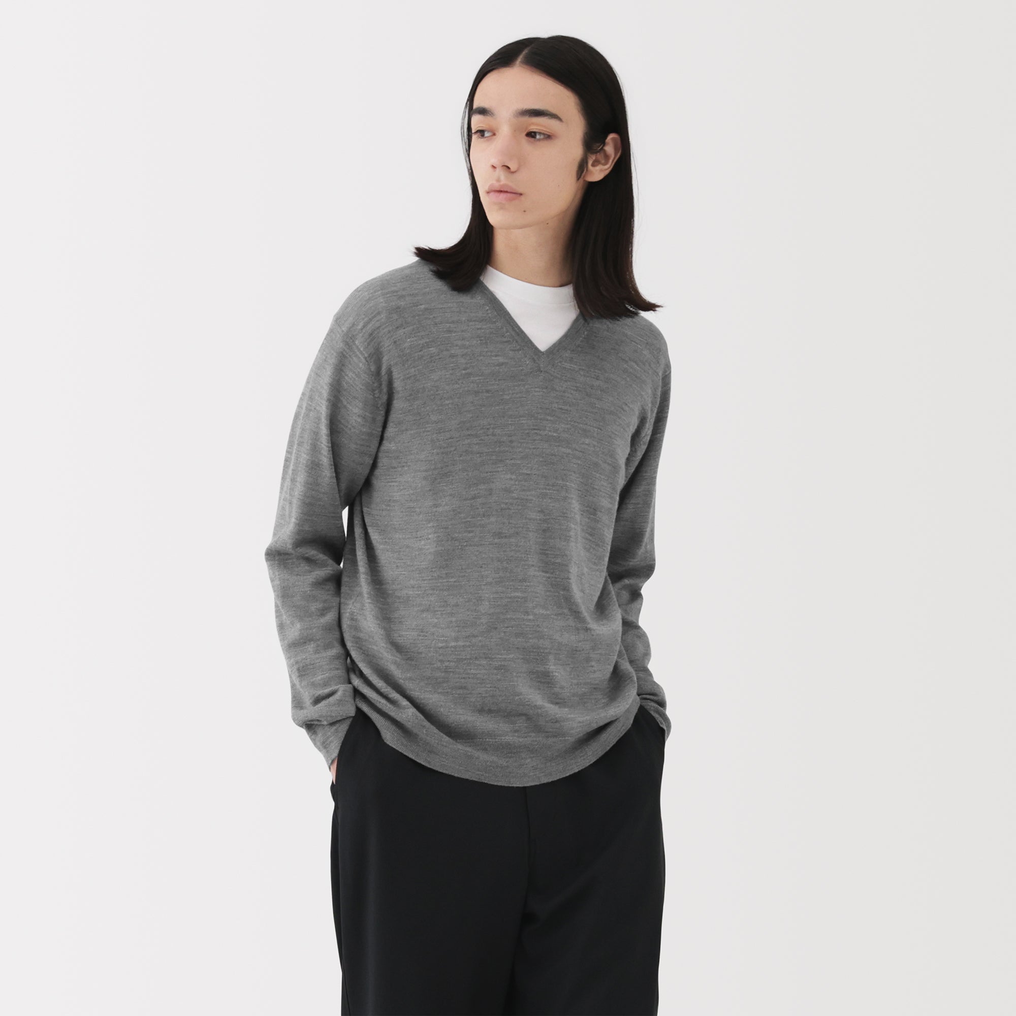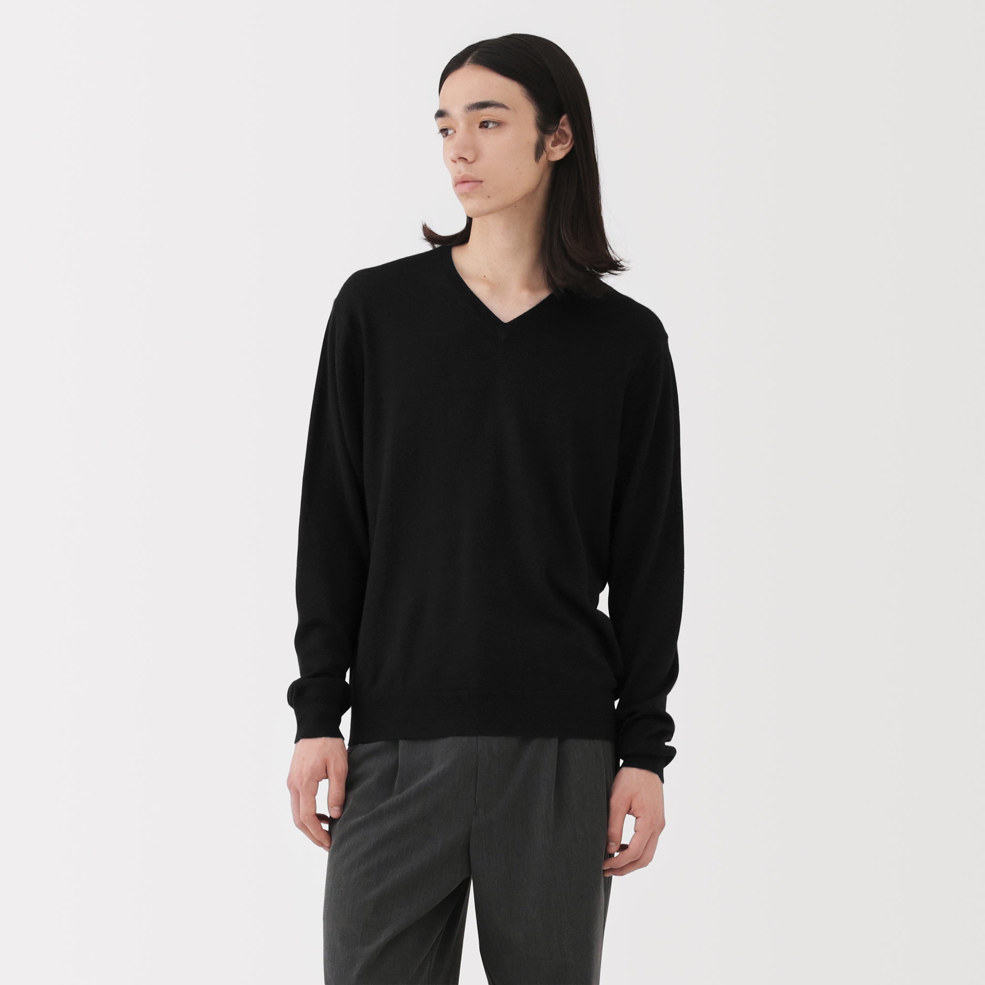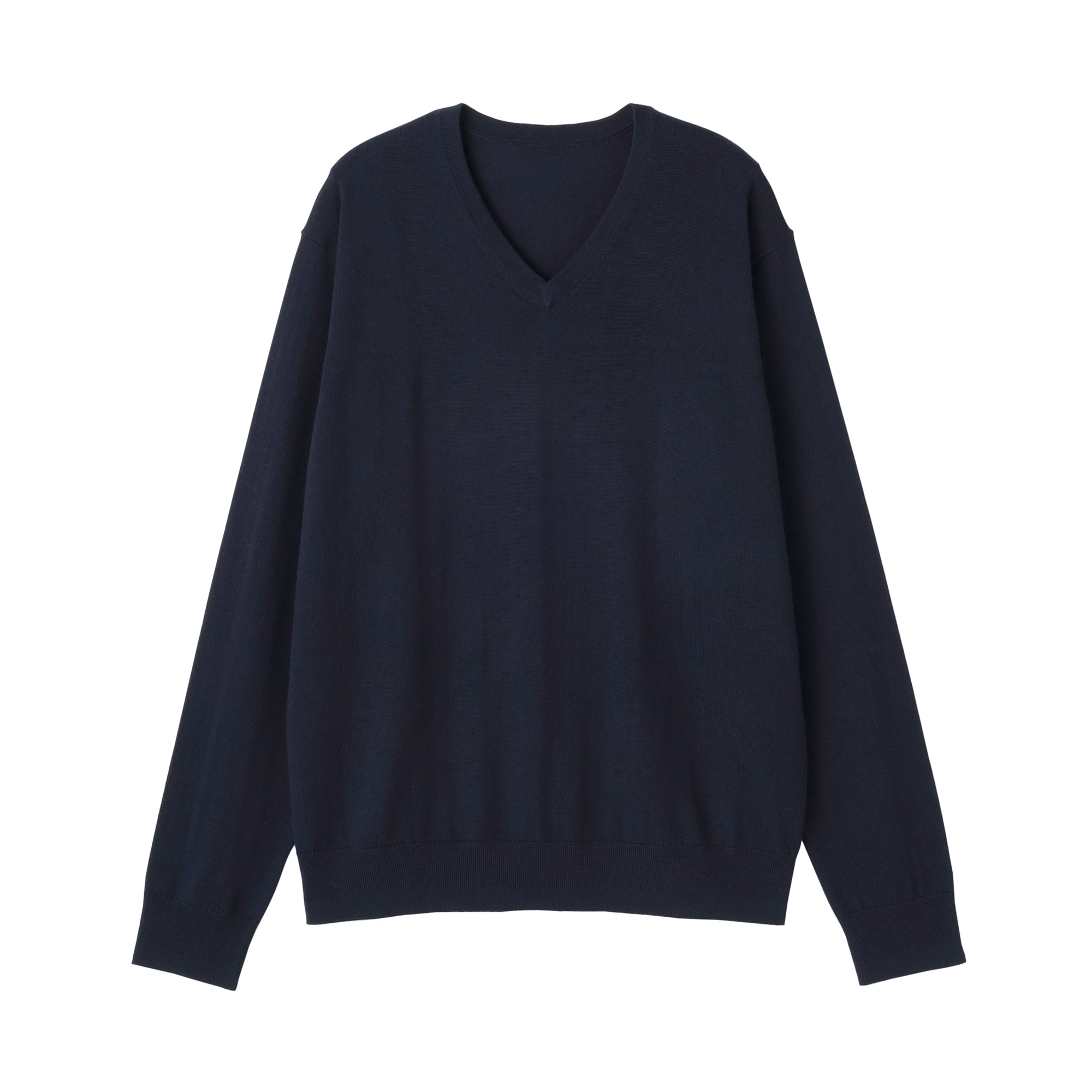 This men’s V-neck sweater is soft and cozy. made from fine. durable high-gauge wool thread that is smooth on the skin. The thin wool material ensures warmth for versatile styling on its own or as a layering piece on chilly days. It also features a shrink-proof finish. making it easily washable at home.