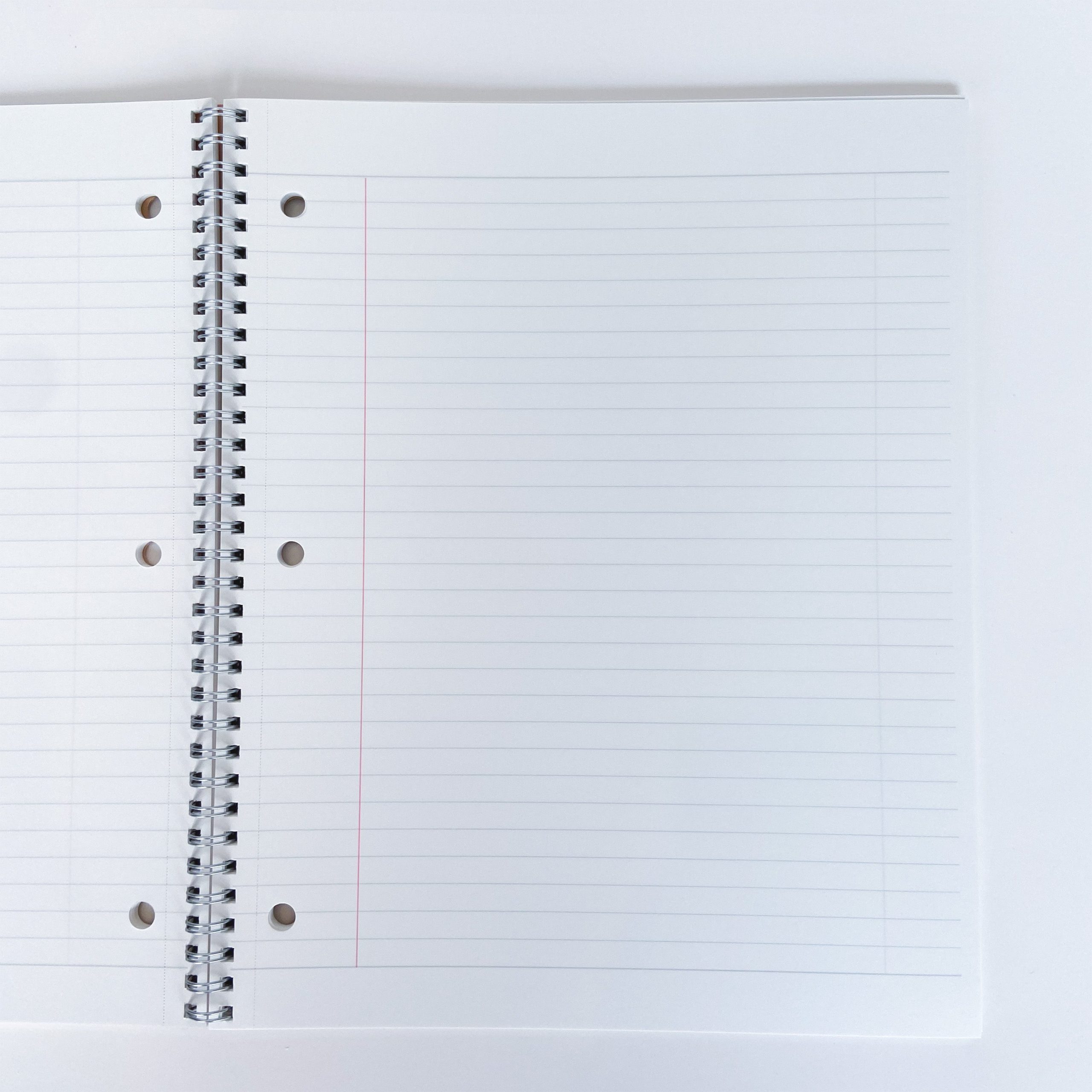 A simple. line ruled double ring notebook. The rings allow you to flip the cover over completely and write from any orientation. Each page in this notebook is perforated to easily store the sheet to the binder.
