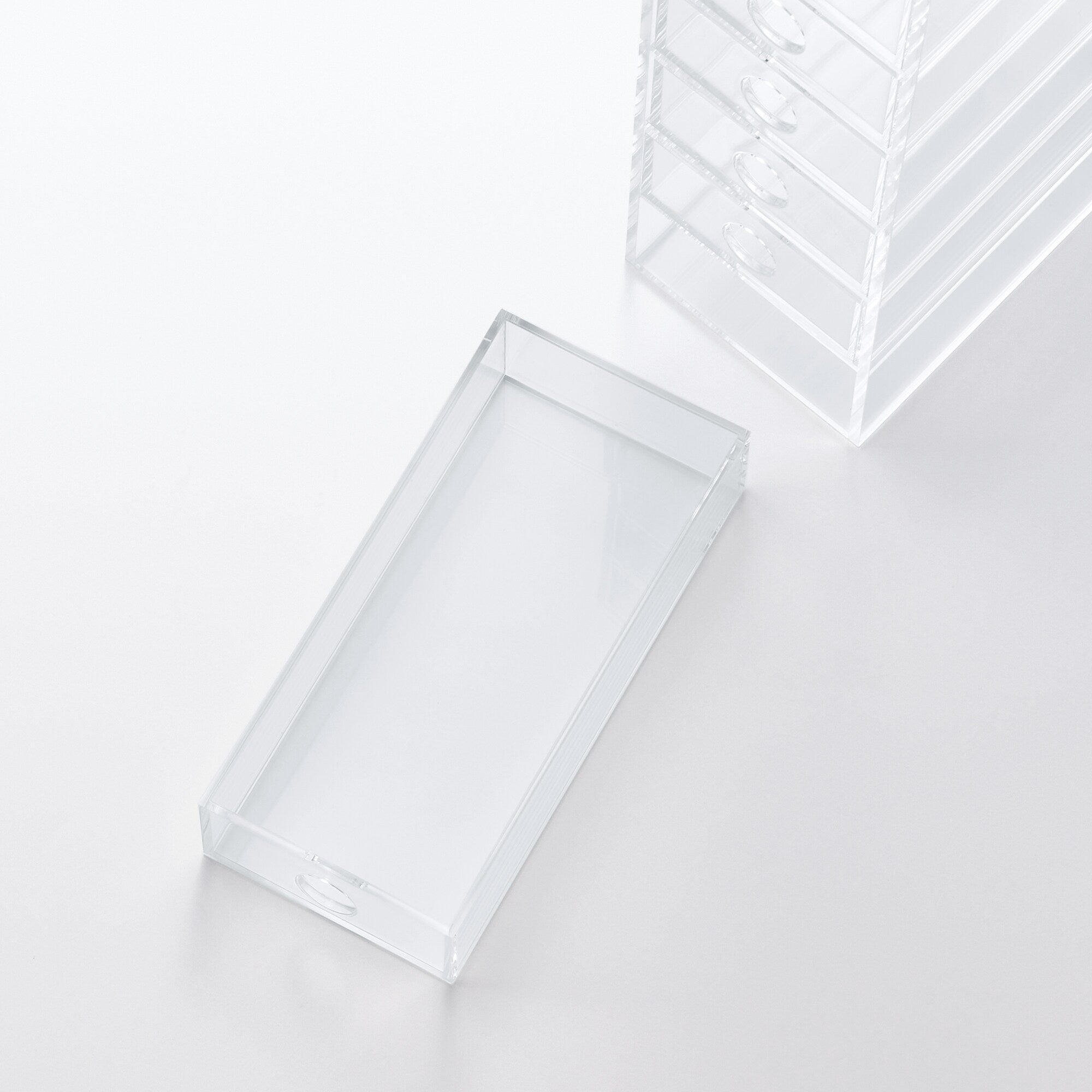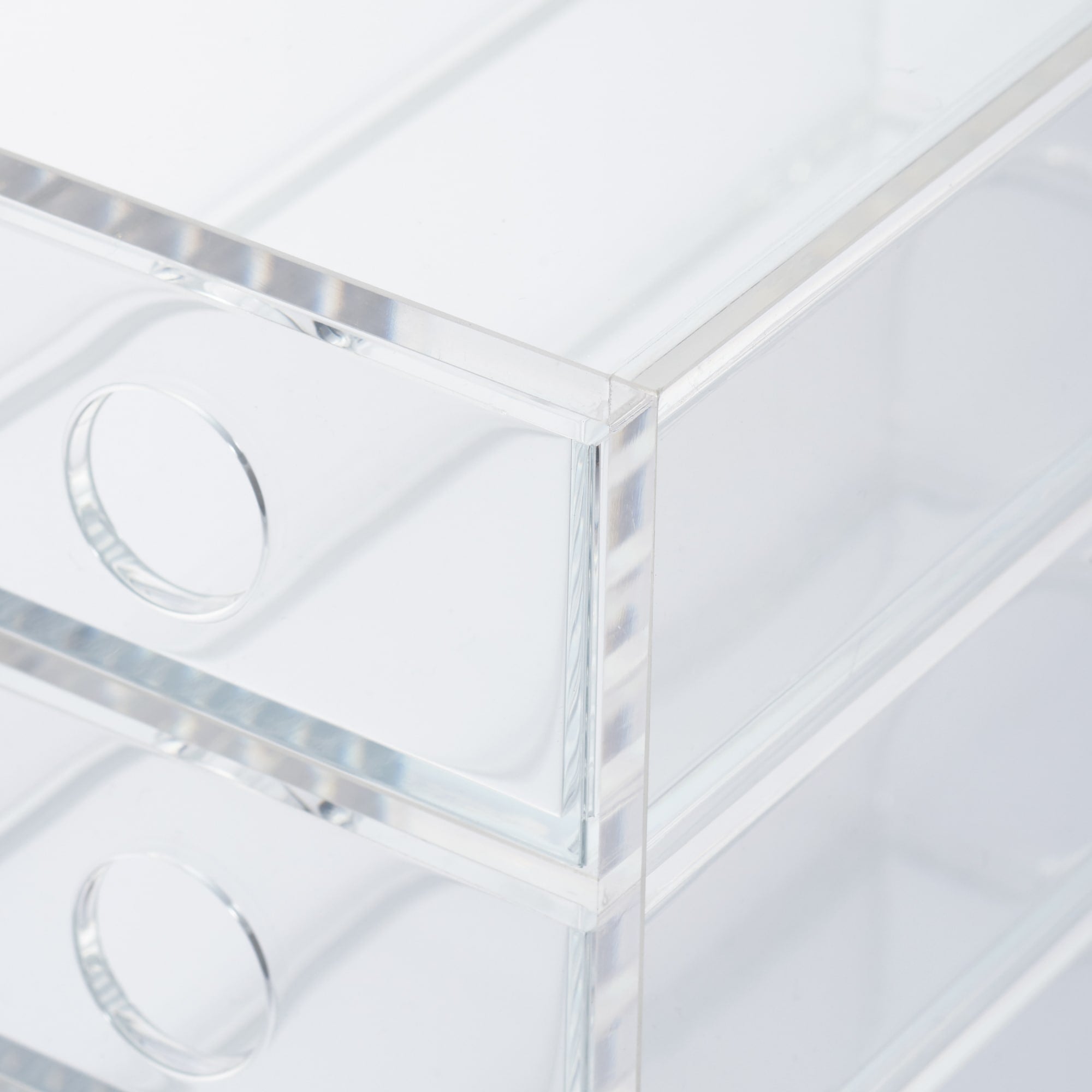 A storage case that allows you to see the inner contents. making the most out of the transparent nature of the acrylic material. The 3 Drawer and 6 Drawer units are the same height so it is easy to display them together.